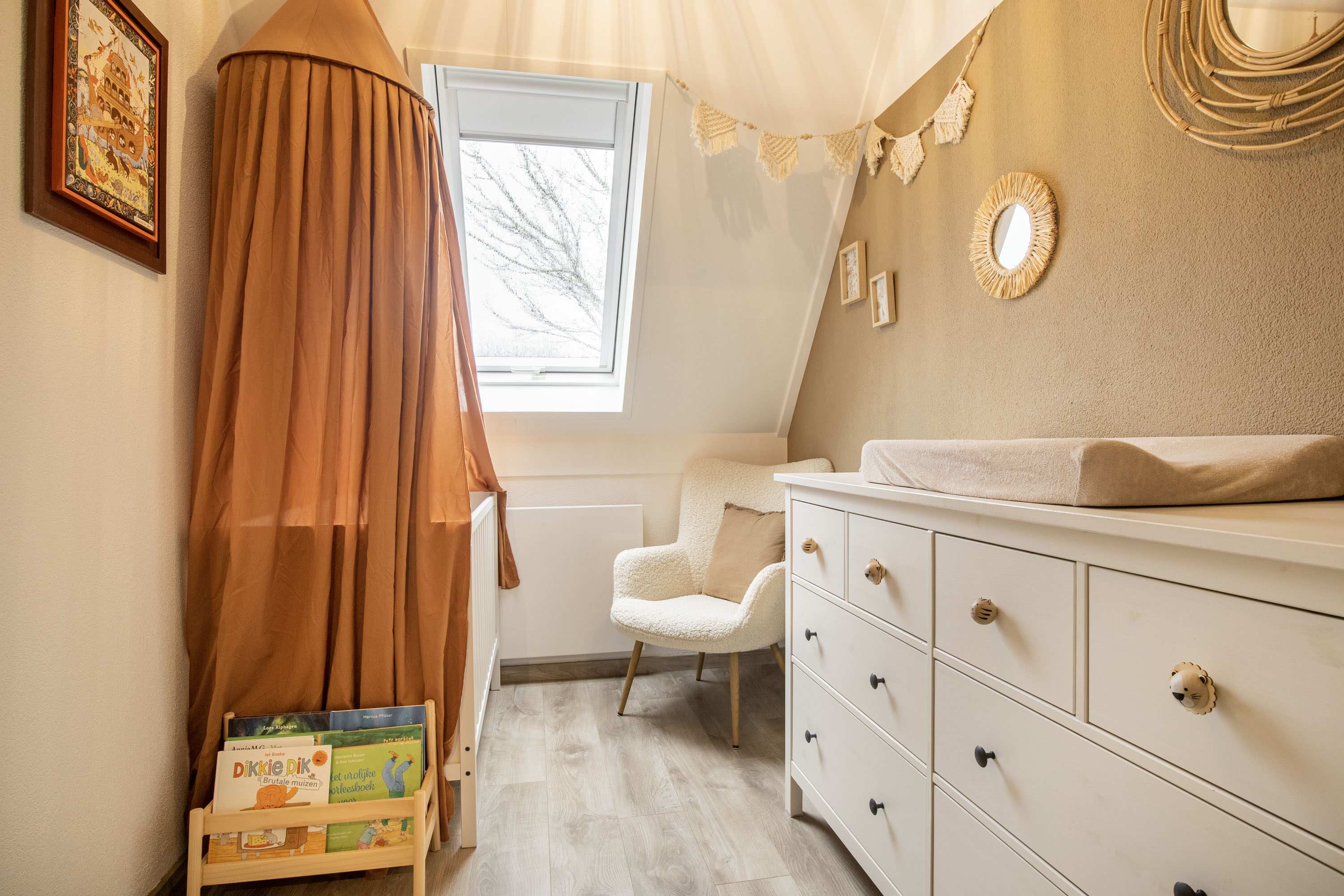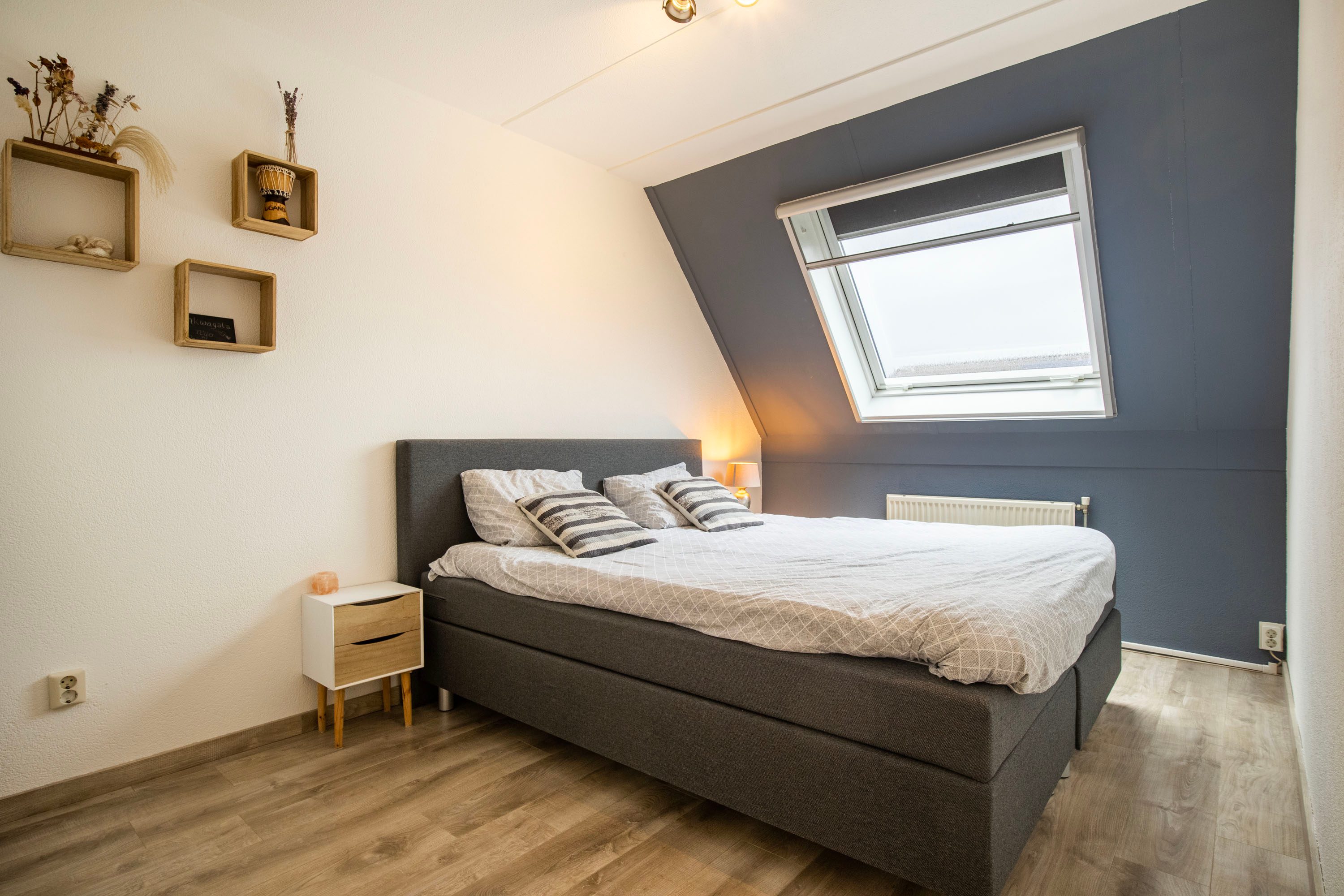 Op de overloop vind je toegang tot drie slaapkamers, de badkamer en de trapopgang naar de tweede verdieping. Aan de achterzijde van de woning tref je twee ruime slaapkamers, beide voorzien van een dakraam. Aan de voorzijde bevindt zich de derde slaapkamer naast de badkamer. De badkamer is modern en luxe uitgevoerd, vrijwel volledig betegeld en beschikt over een inloopdouche, wastafelmeubel, toilet en designradiator.
