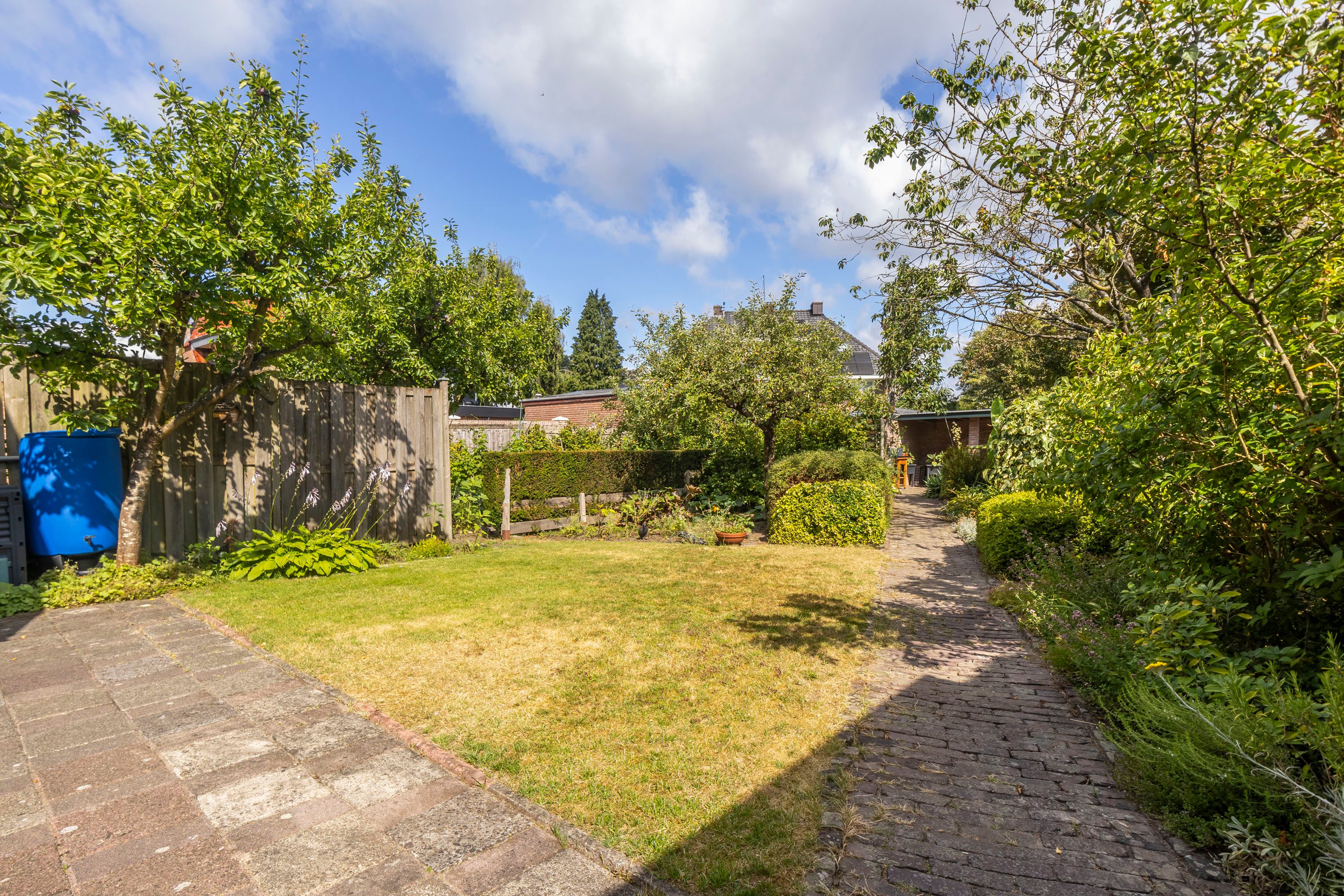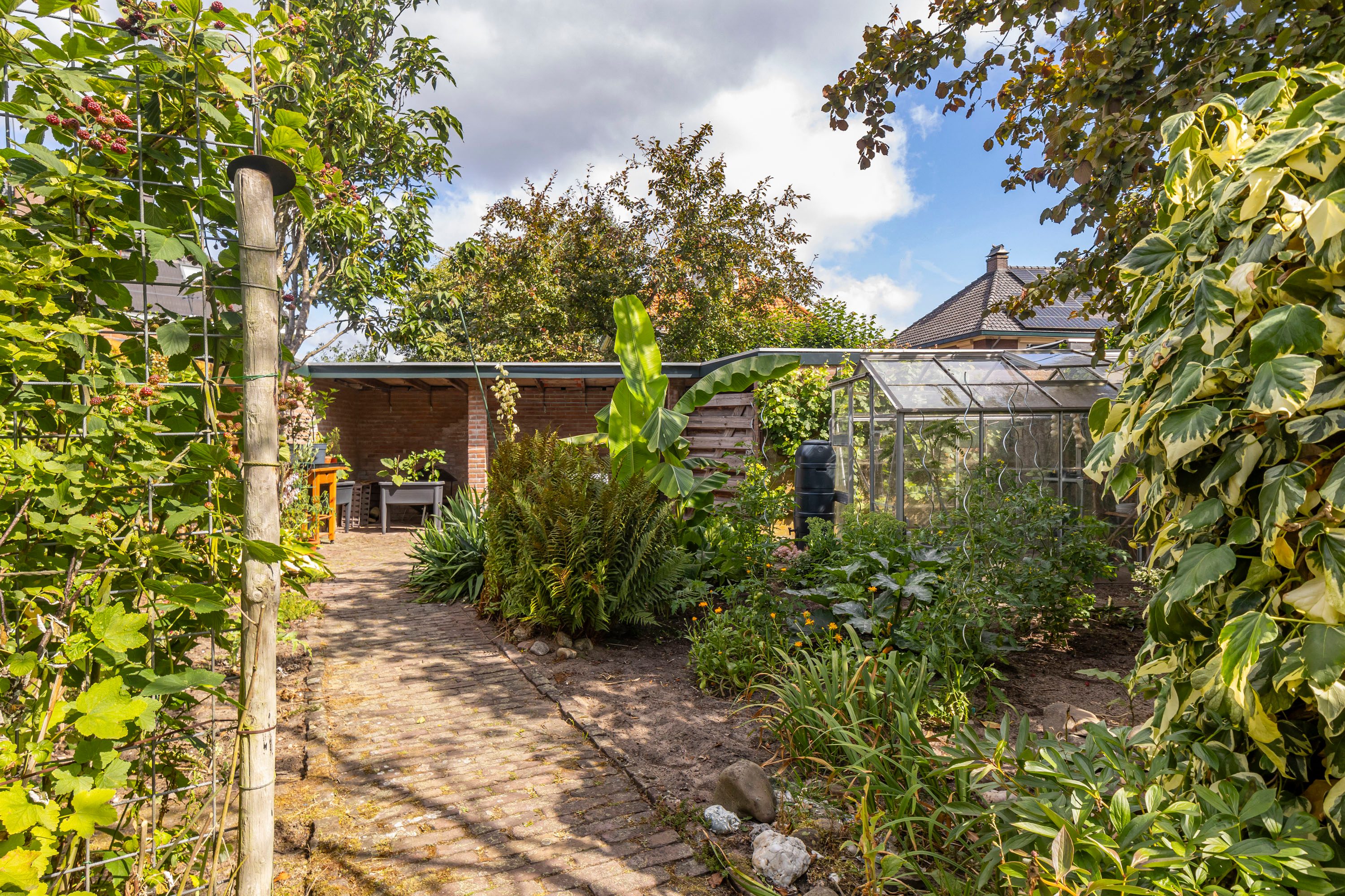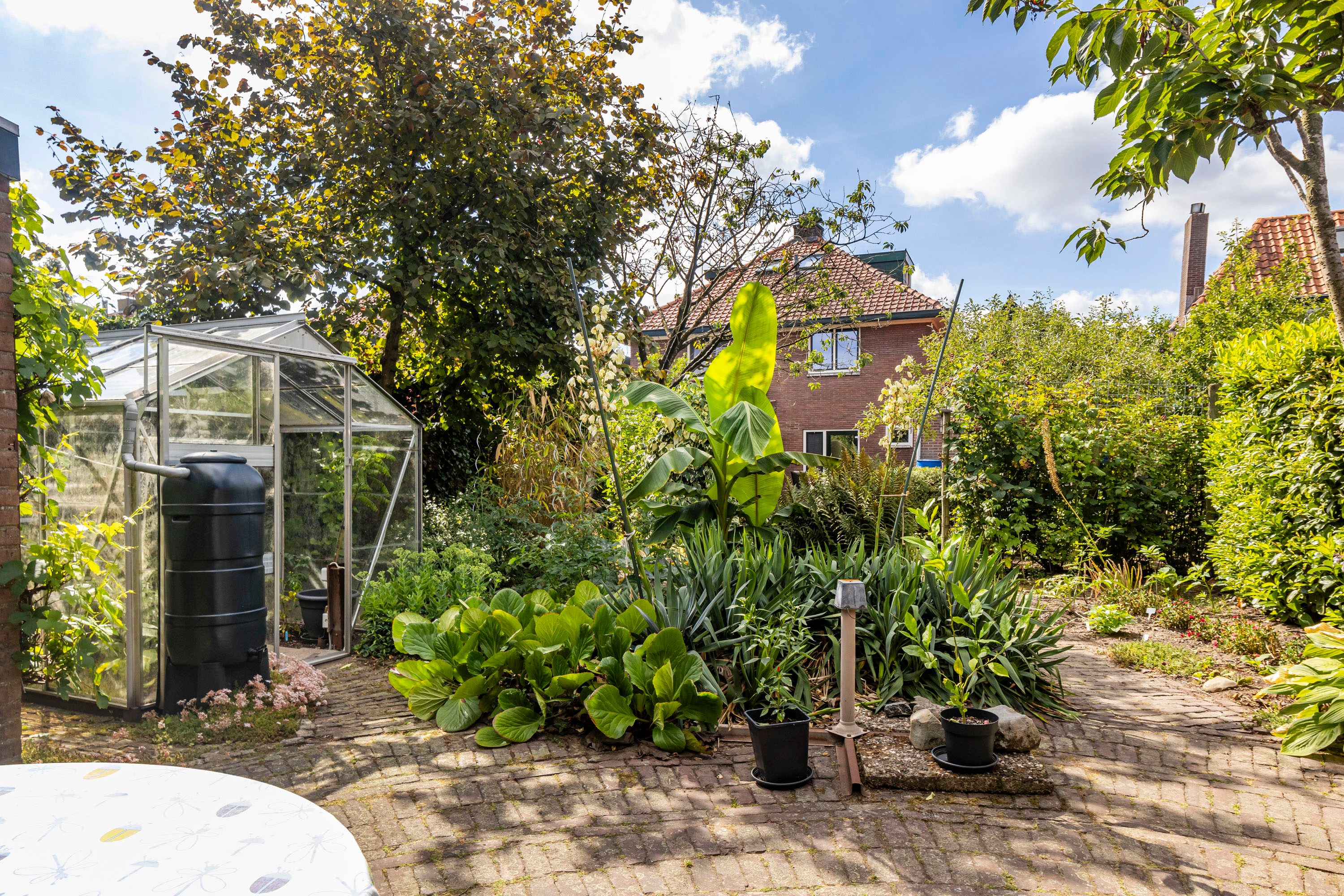 De diepe achtertuin ligt op het noorden, maar door de royale lengte is er volop zon te vinden. Een perfecte plek voor tuinliefhebbers of degenen die graag een eigen moestuin willen starten, waarvoor de aanwezige hobbykas ideaal is. De tuin beschikt over een stenen berging én een gezellige overkapping achterin — perfect voor lange zomeravonden.