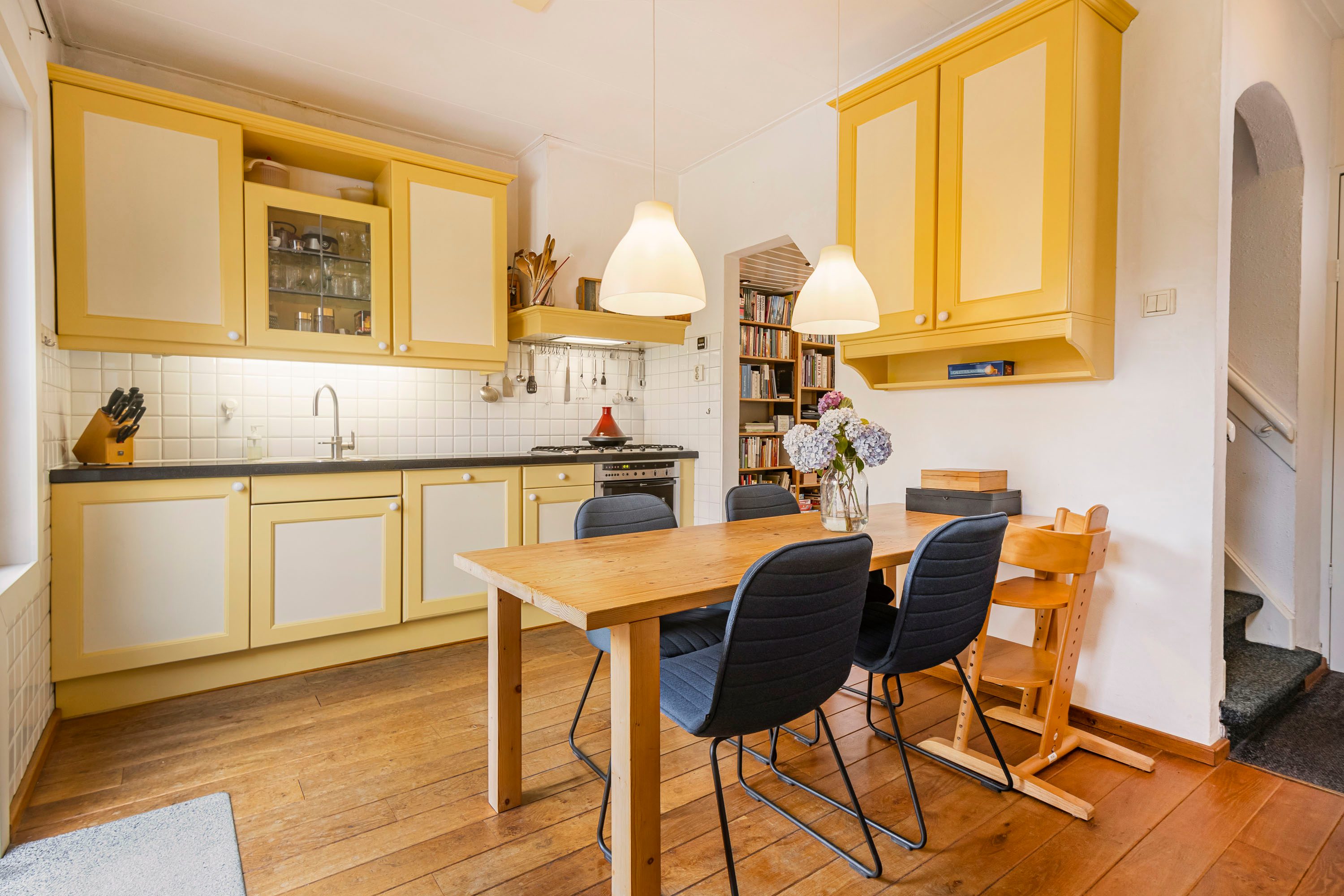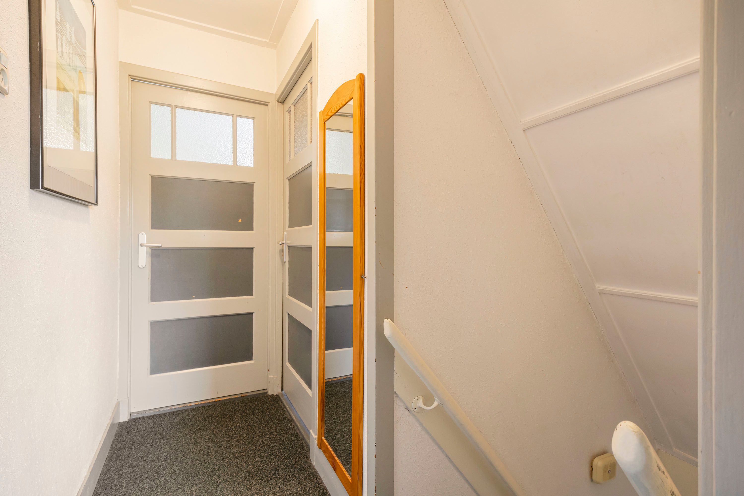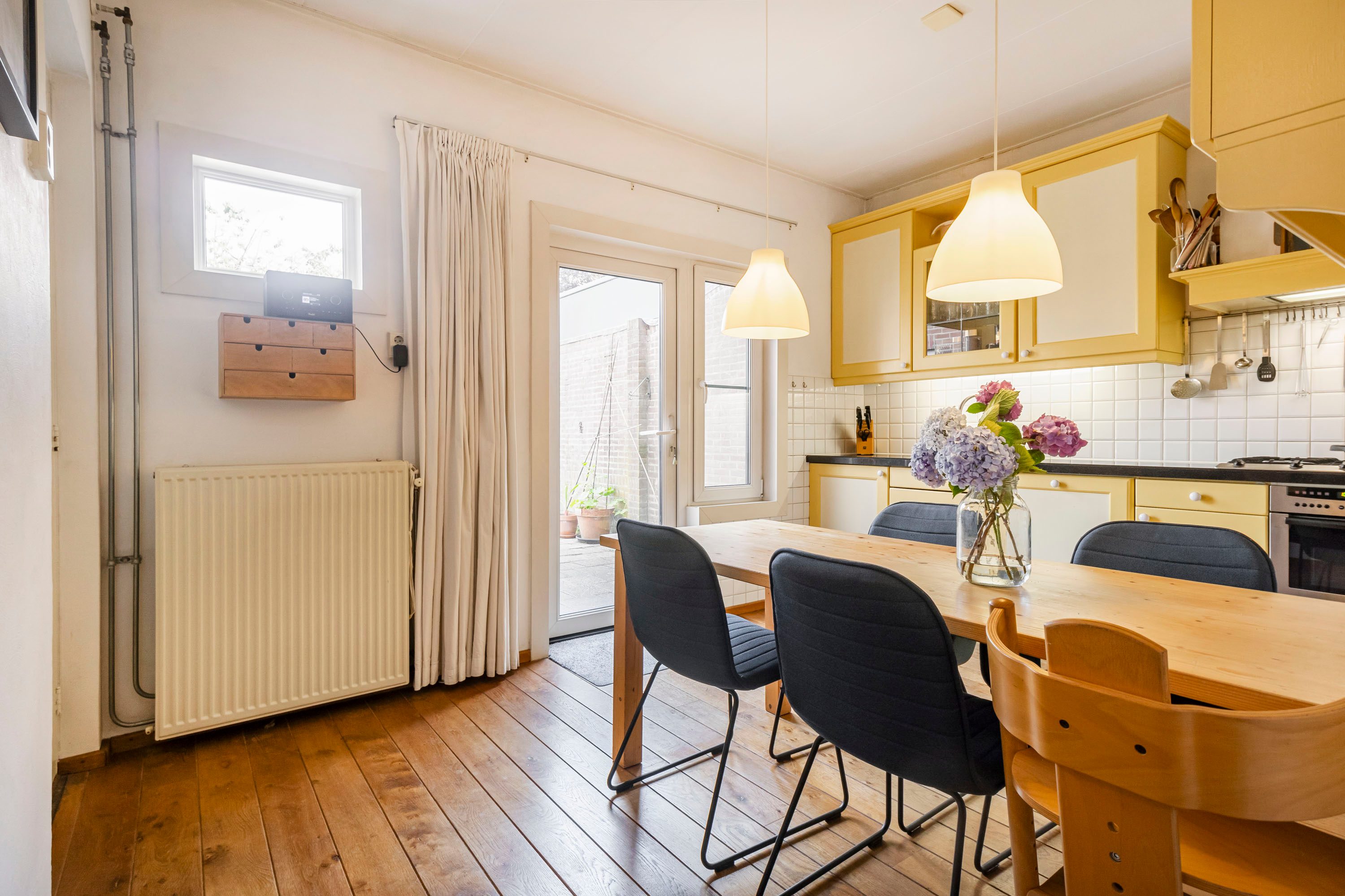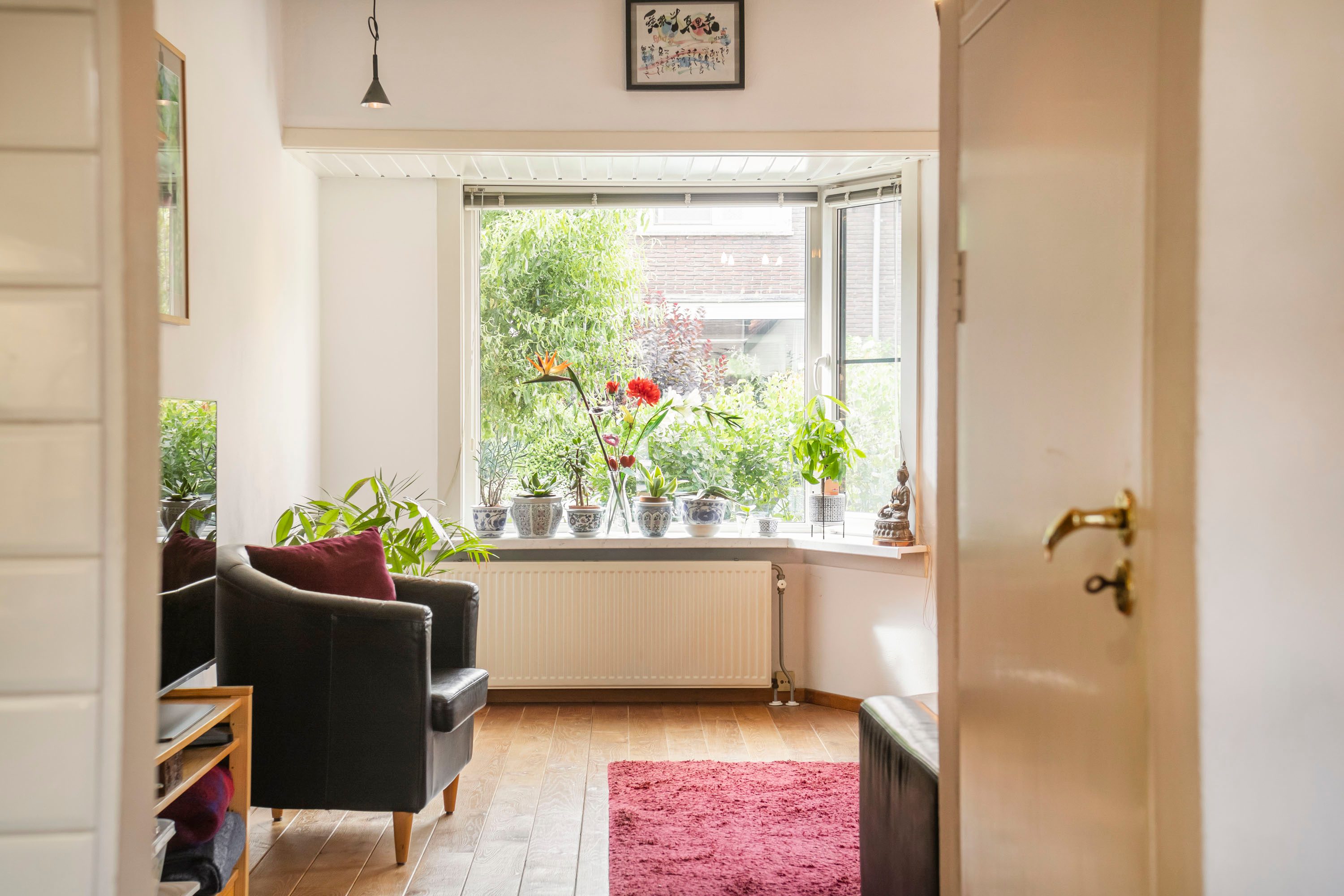 De lichte woonkamer aan de voorzijde is voorzien van een erker en biedt vrij zicht op de straat. Via een deur tussen de woonkamer en keuken heb je toegang tot de kelder. De keuken bevindt zich aan de achterzijde van de woning, met voldoende ruimte voor een gezellige eettafel. Aangrenzend vind je de moderne badkamer (vernieuwd in 2019) met een inloopdouche, wastafelmeubel en designradiator. Achter de keuken bevindt zich een tweede hal met het toilet (vernieuwd in 2019) en toegang tot de garage, waar tevens de aansluiting voor de wasmachine aanwezig is.