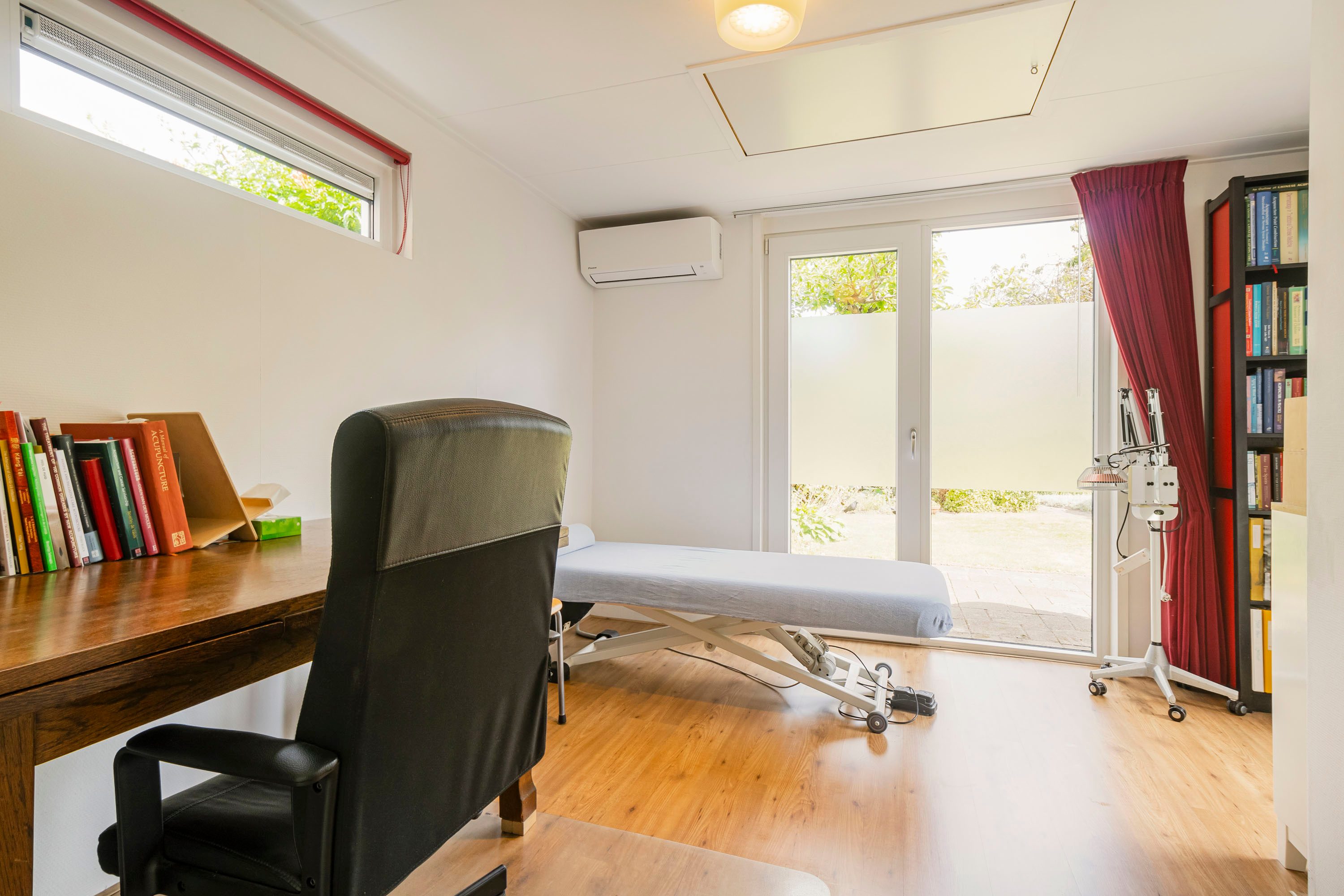Uniek aan deze woning is de kantoorruimte met airconditioning en vliering, bereikbaar via de garage of de tuin. Deze multifunctionele ruimte is uitstekend te gebruiken als kantoor, praktijk aan huis, hobbyruimte of extra slaap-/logeerkamer.