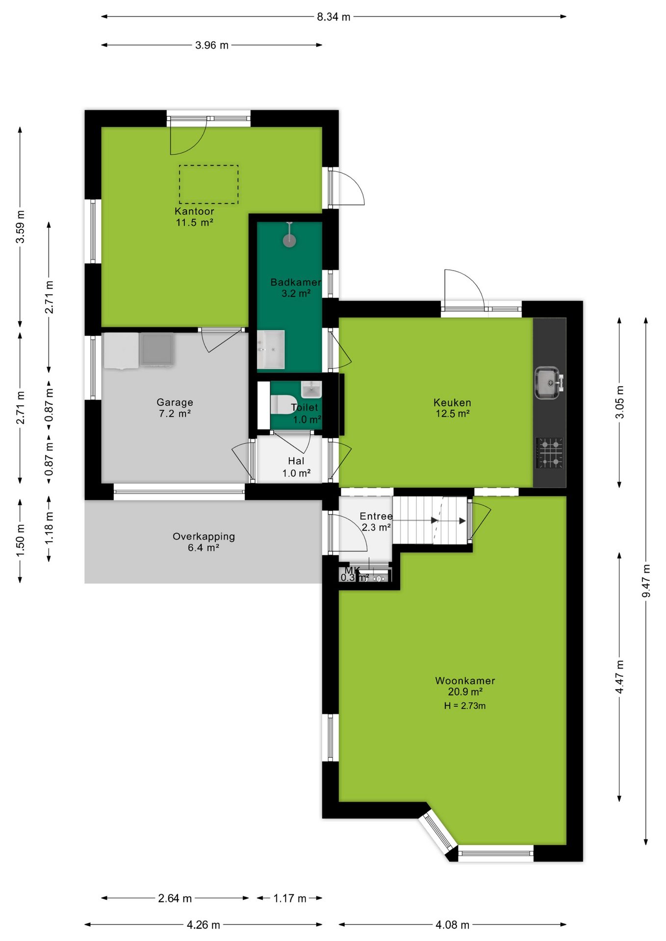 + Kantoorruimte op de begane grond (ook als slaap- of hobbykamer te gebruiken);
