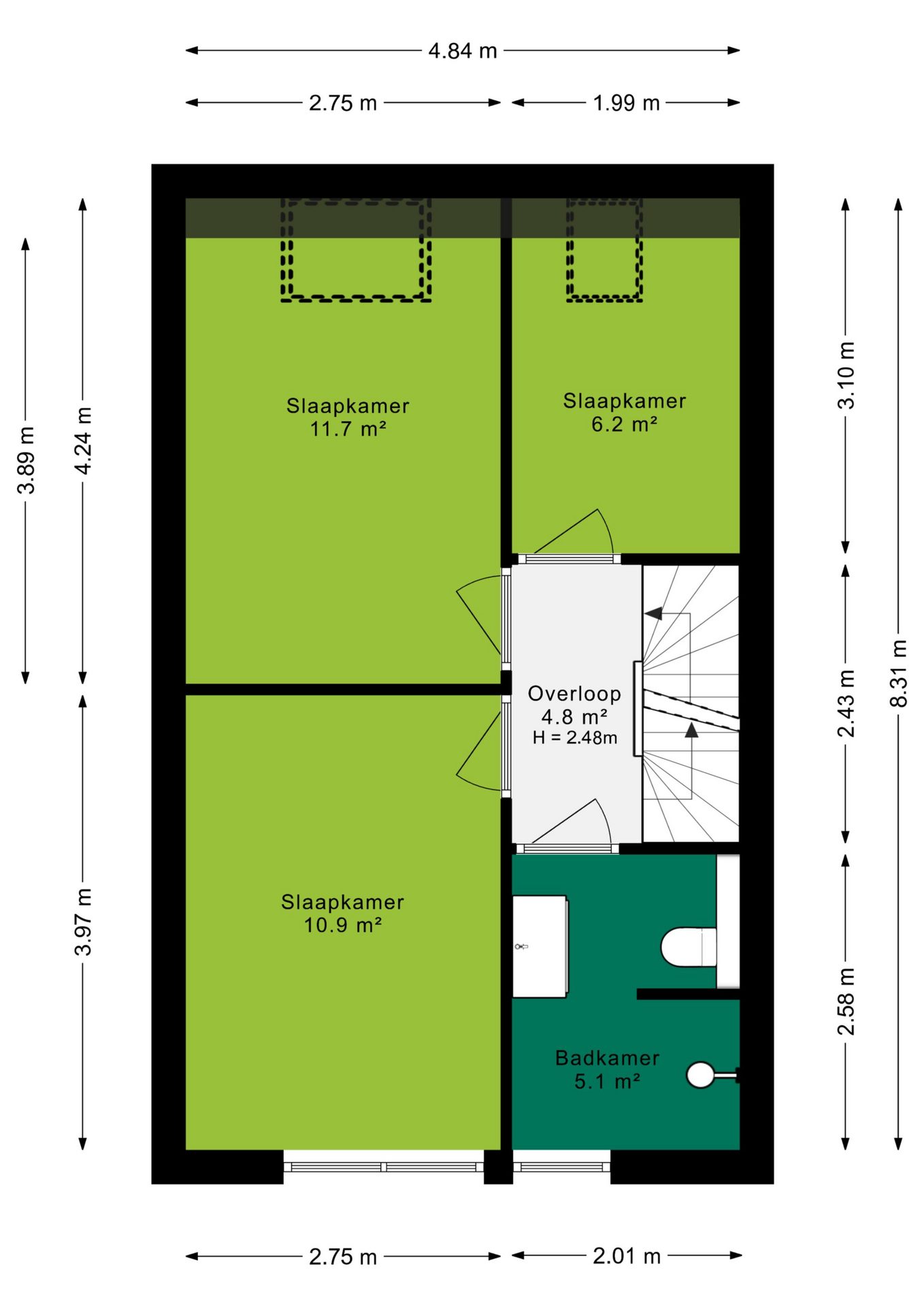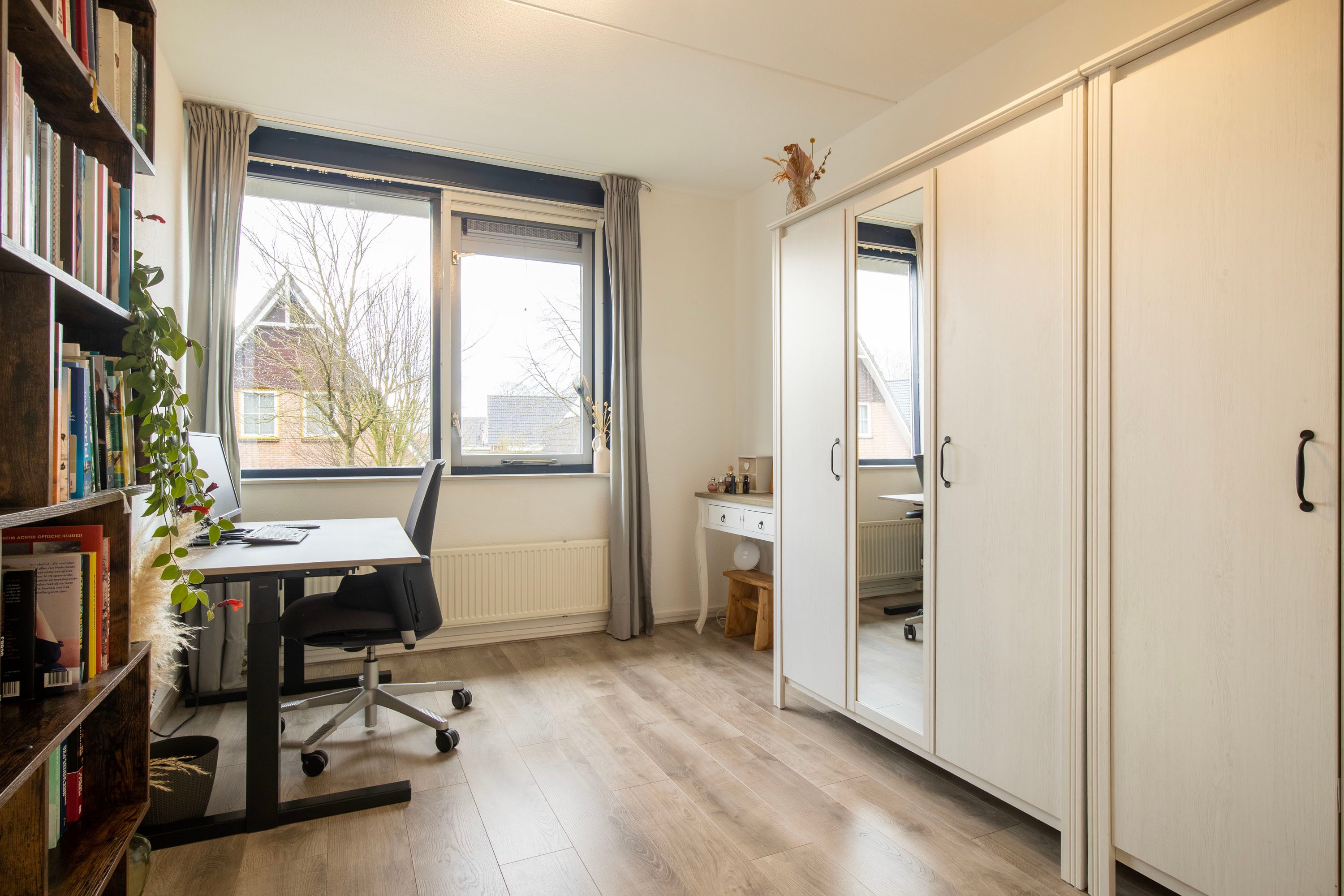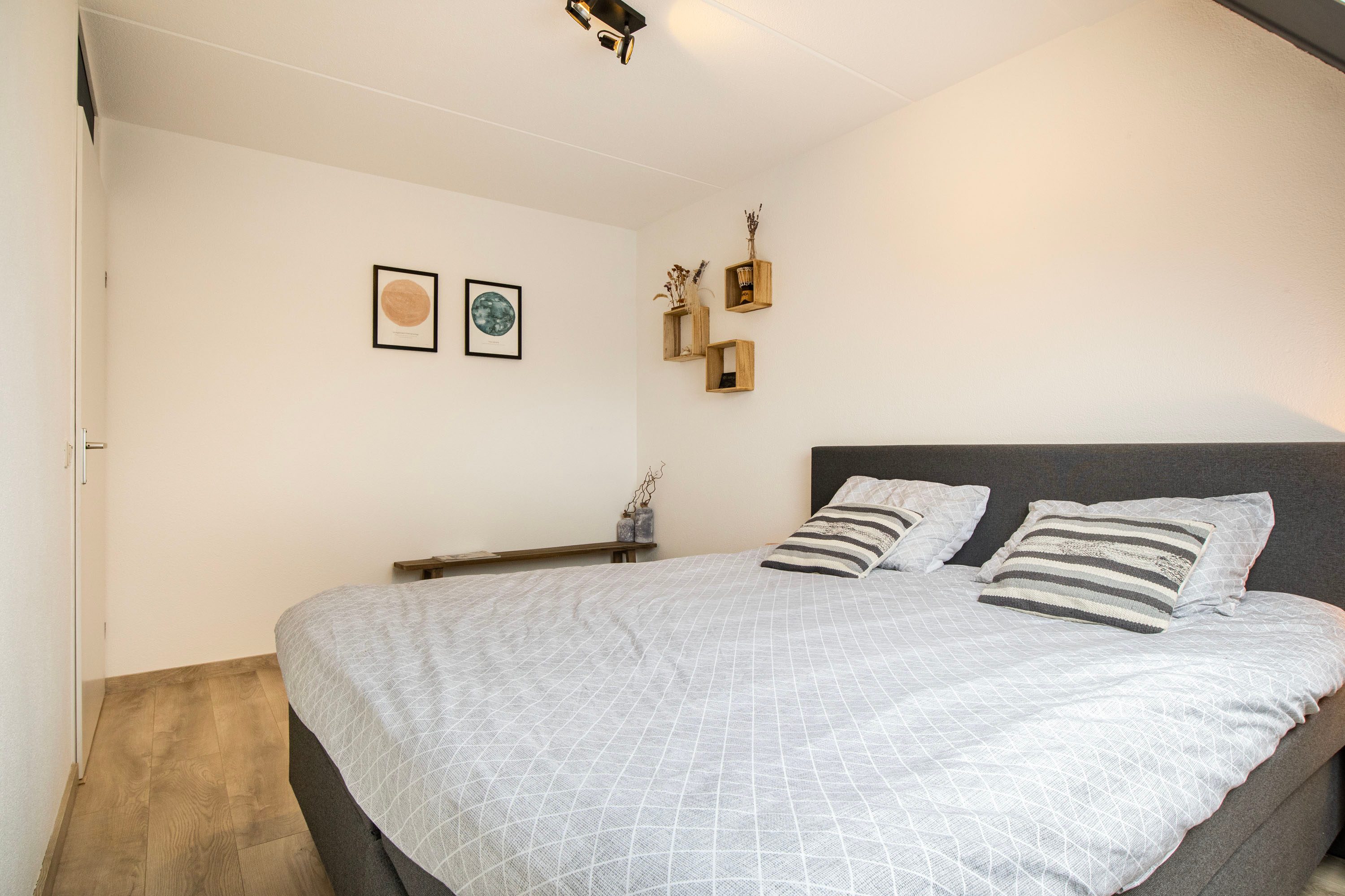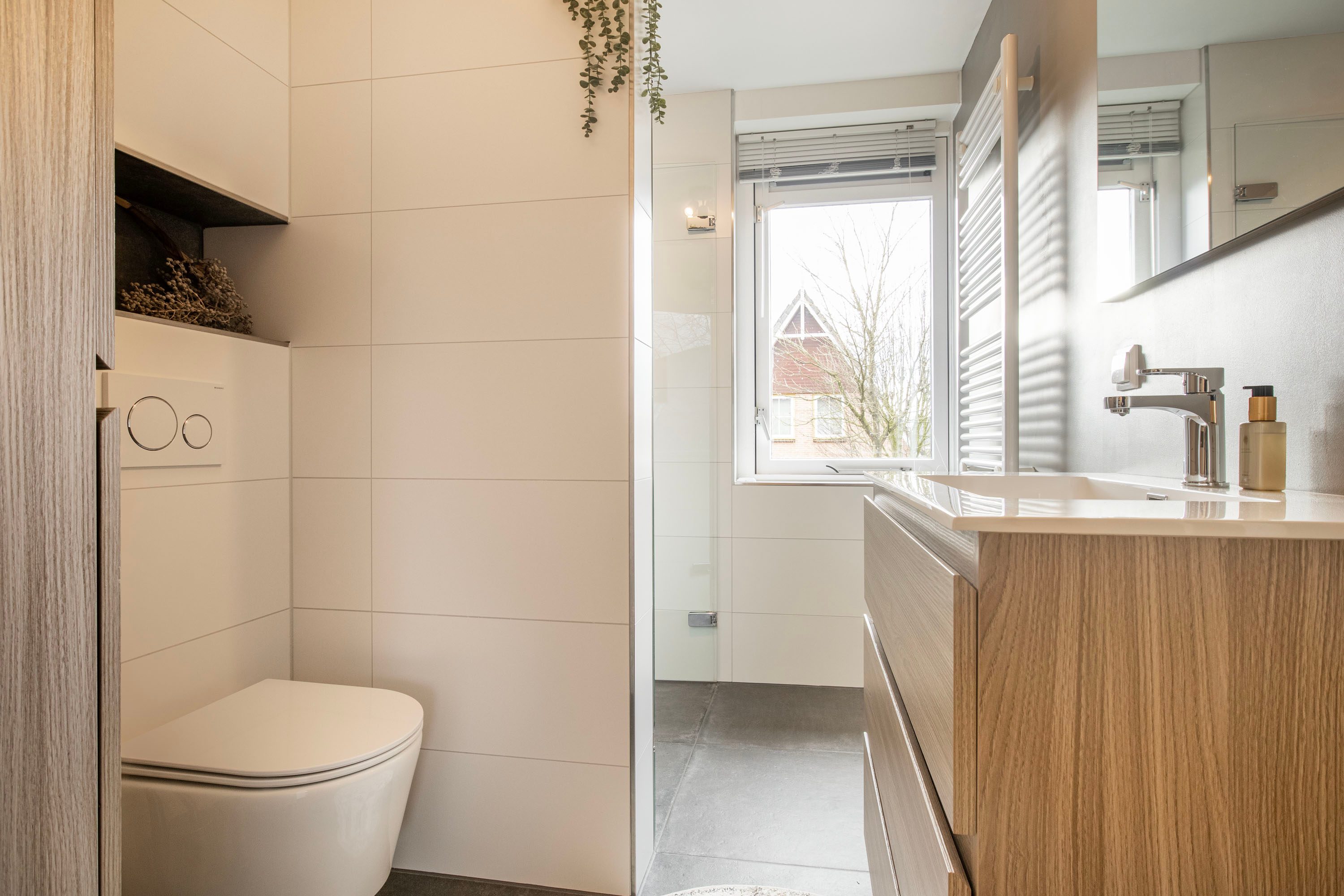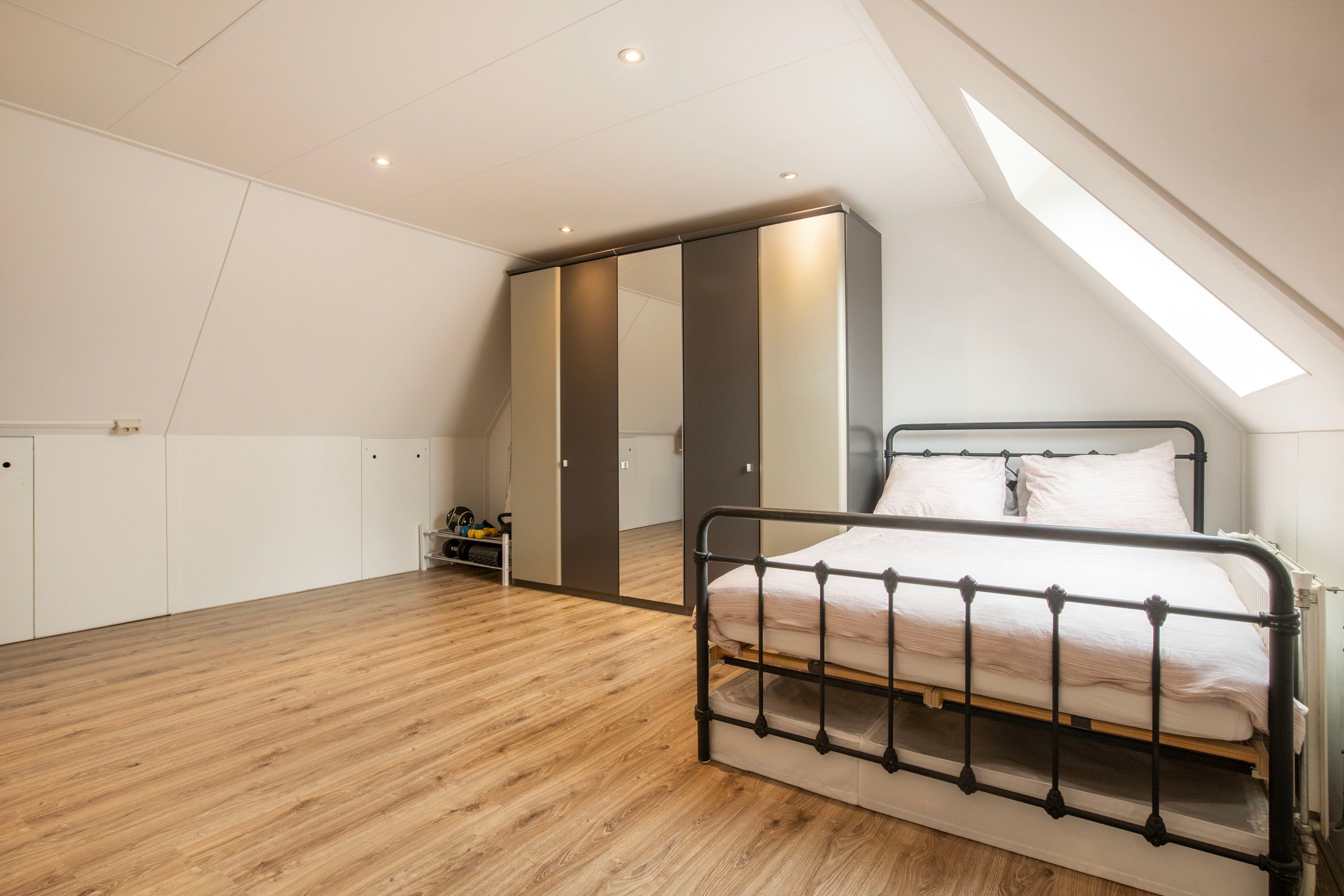 Op de overloop vind je toegang tot drie slaapkamers, de badkamer en de trapopgang naar de tweede verdieping. Aan de achterzijde van de woning tref je twee ruime slaapkamers, beide voorzien van een dakraam. Aan de voorzijde bevindt zich de derde slaapkamer naast de badkamer. De badkamer is modern en luxe uitgevoerd, vrijwel volledig betegeld en beschikt over een inloopdouche, wastafelmeubel, toilet en designradiator.