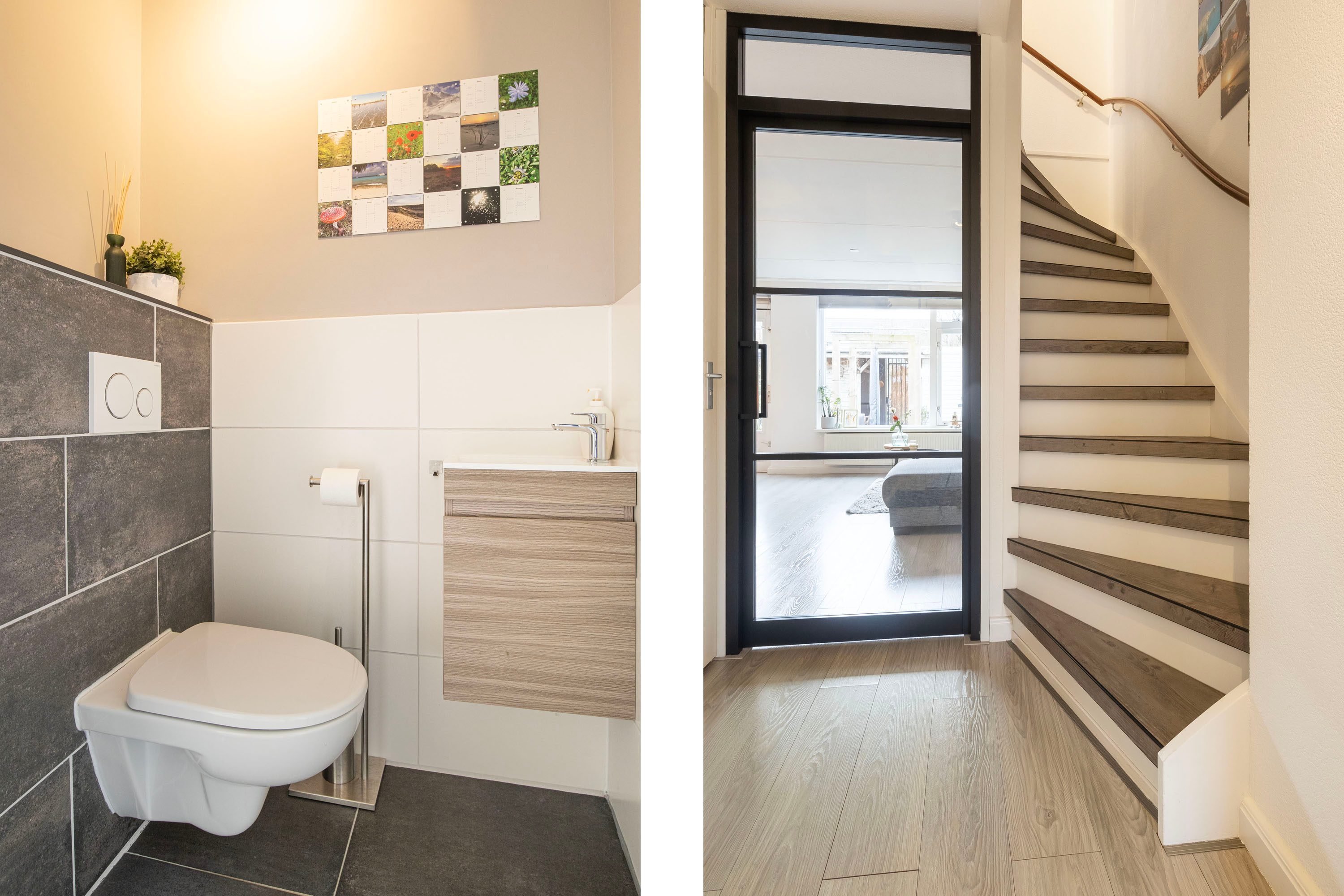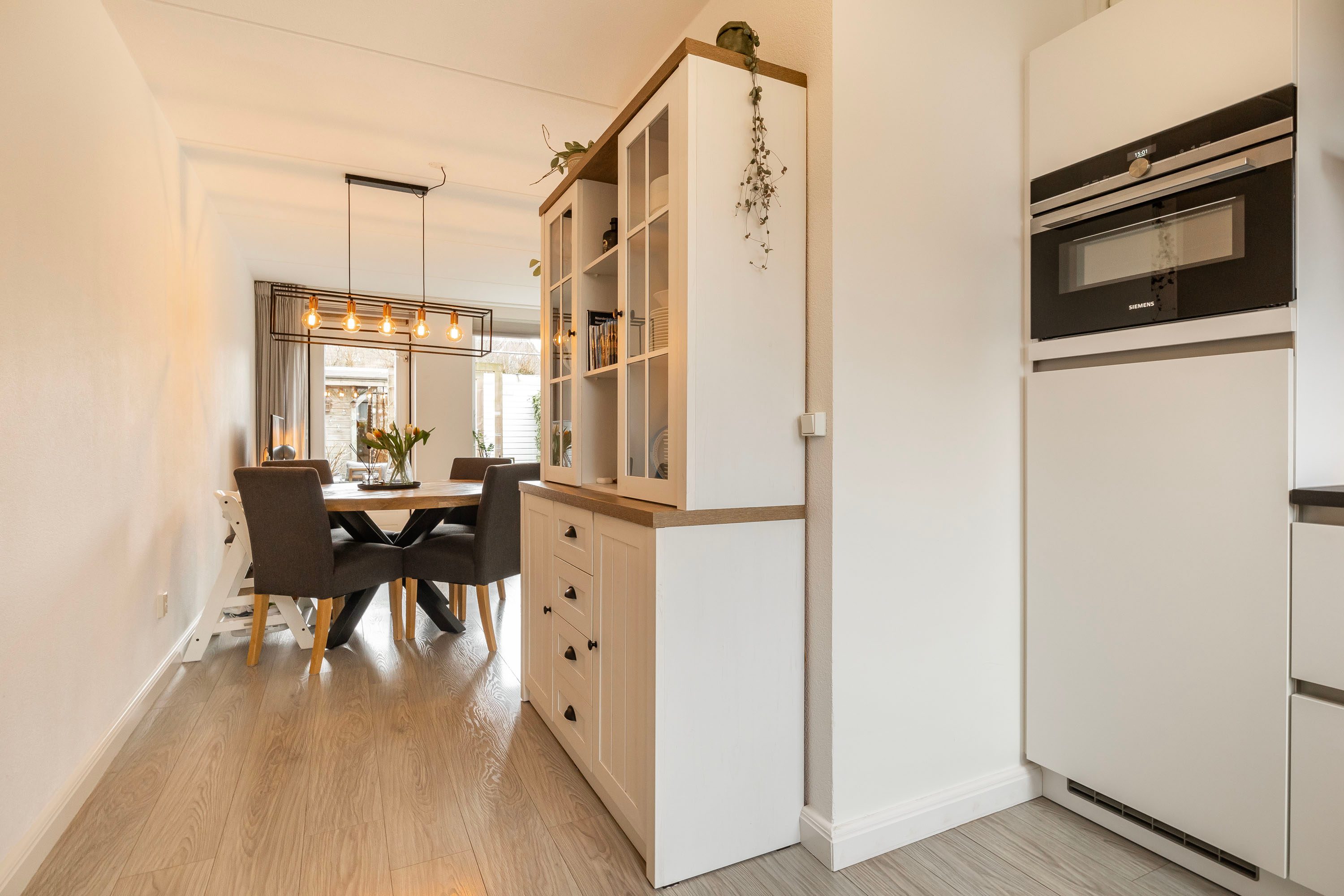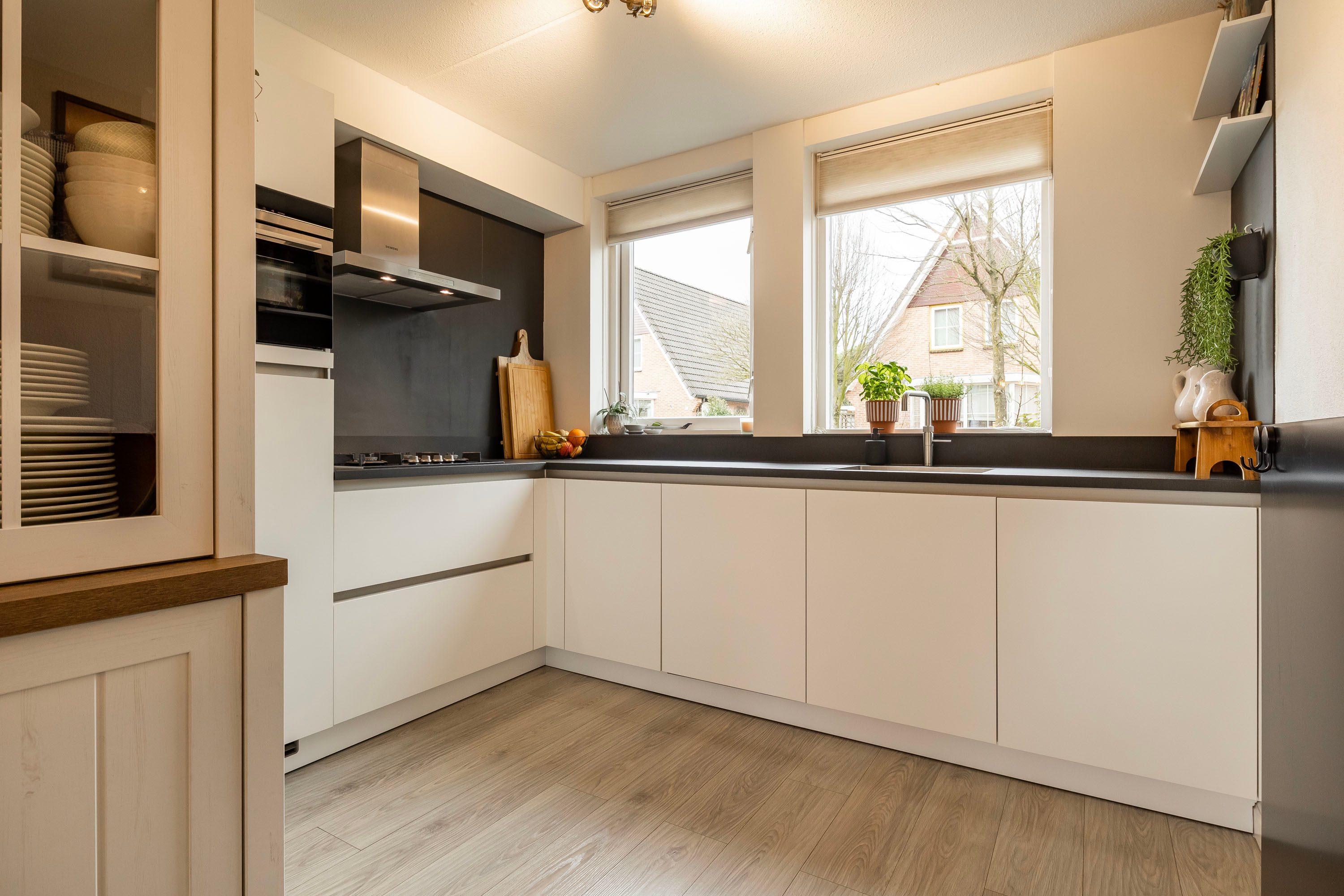 Bij binnenkomst vind je de meterkast en een toilet met fonteintje. De tuingerichte woonkamer biedt ruimte voor een gezellige zithoek en een eethoek. De grote ramen geven een fijn natuurlijk daglicht. De half open keuken bevindt zich aan de voorzijde van de woning. De keuken is uitgevoerd in lichte tinten en voorzien van een hardstenen werkblad. Daarnaast is de keuken uitgerust met diverse inbouwapparatuur, waaronder een vierpits gasfornuis, afzuigkap, oven, vaatwasser, koel-vriescombinatie en een Quooker.
