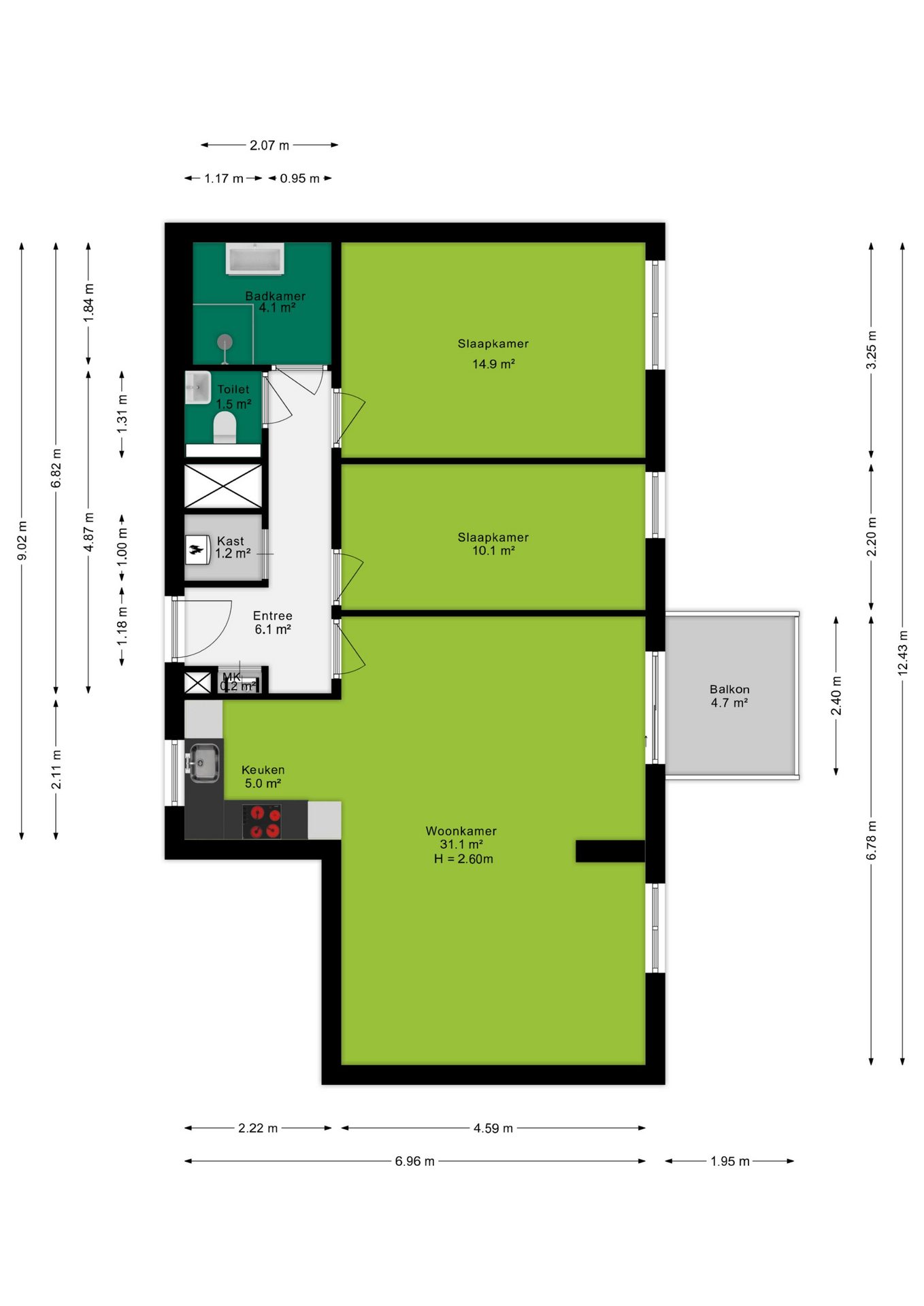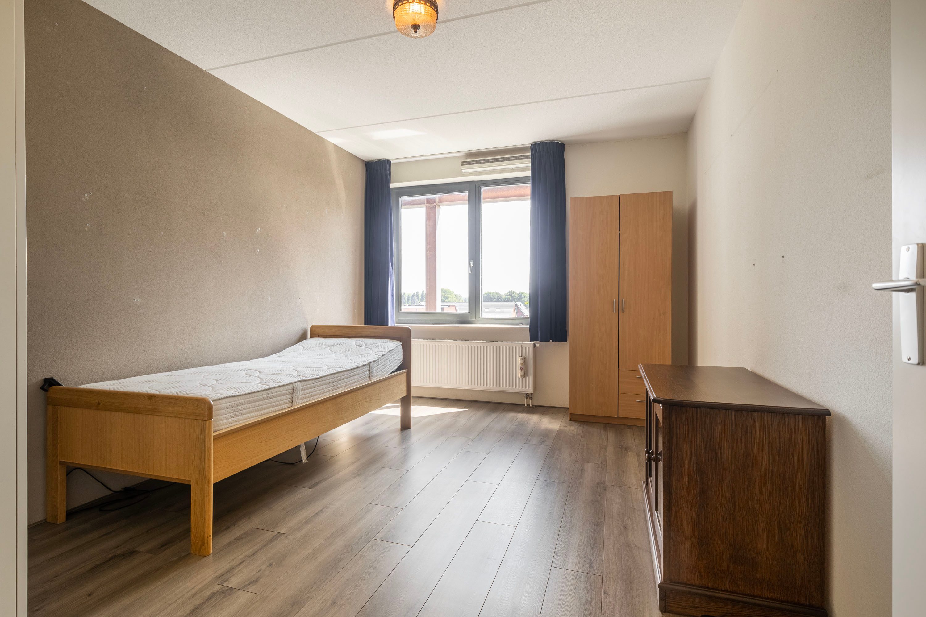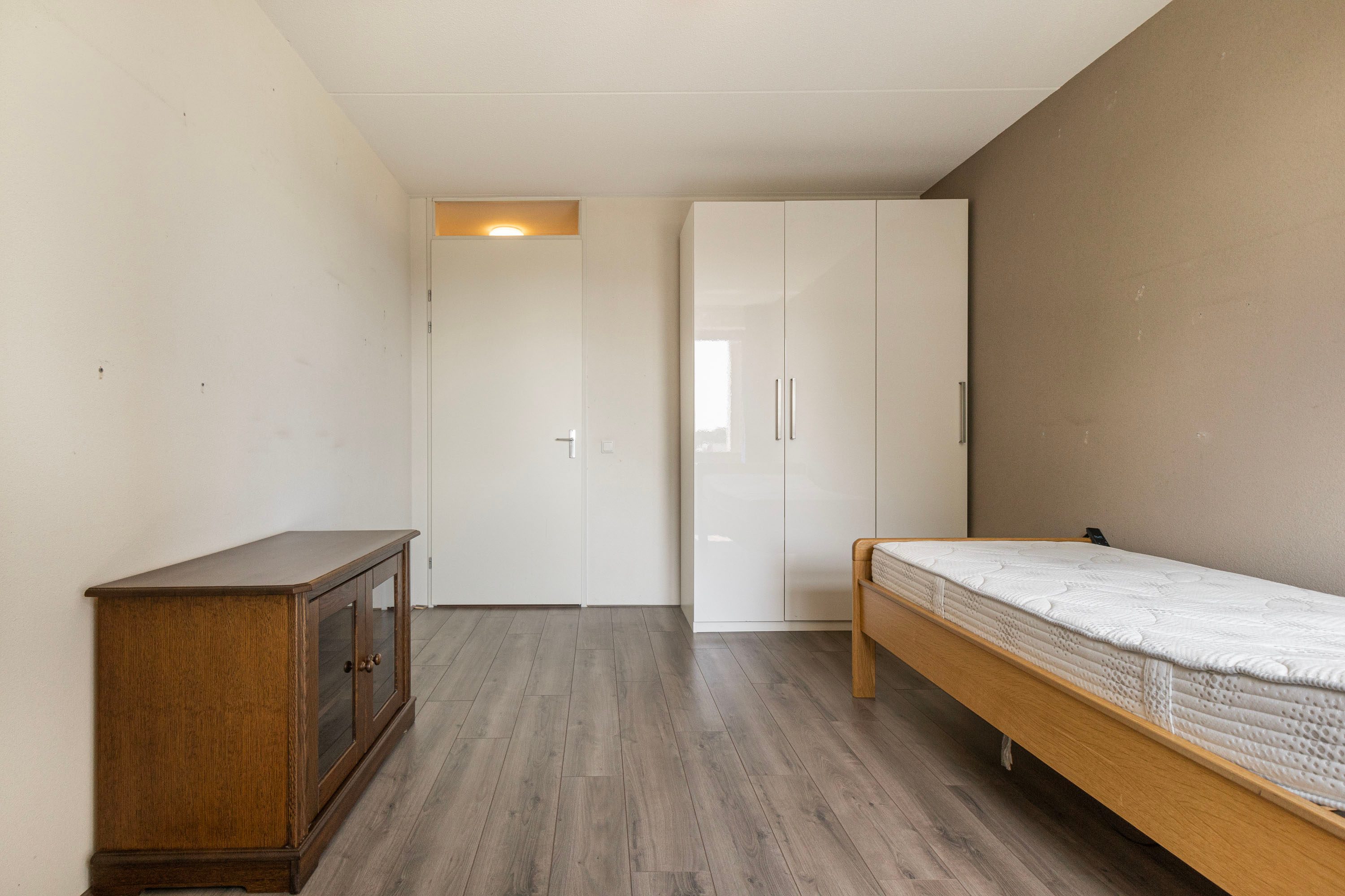 Terug in de hal kom je in de gang die toegang geeft tot alle ruimtes van het appartement. Hier vind je o.a. twee fijne slaapkamers van respectievelijk ca. 15m² en 10m².