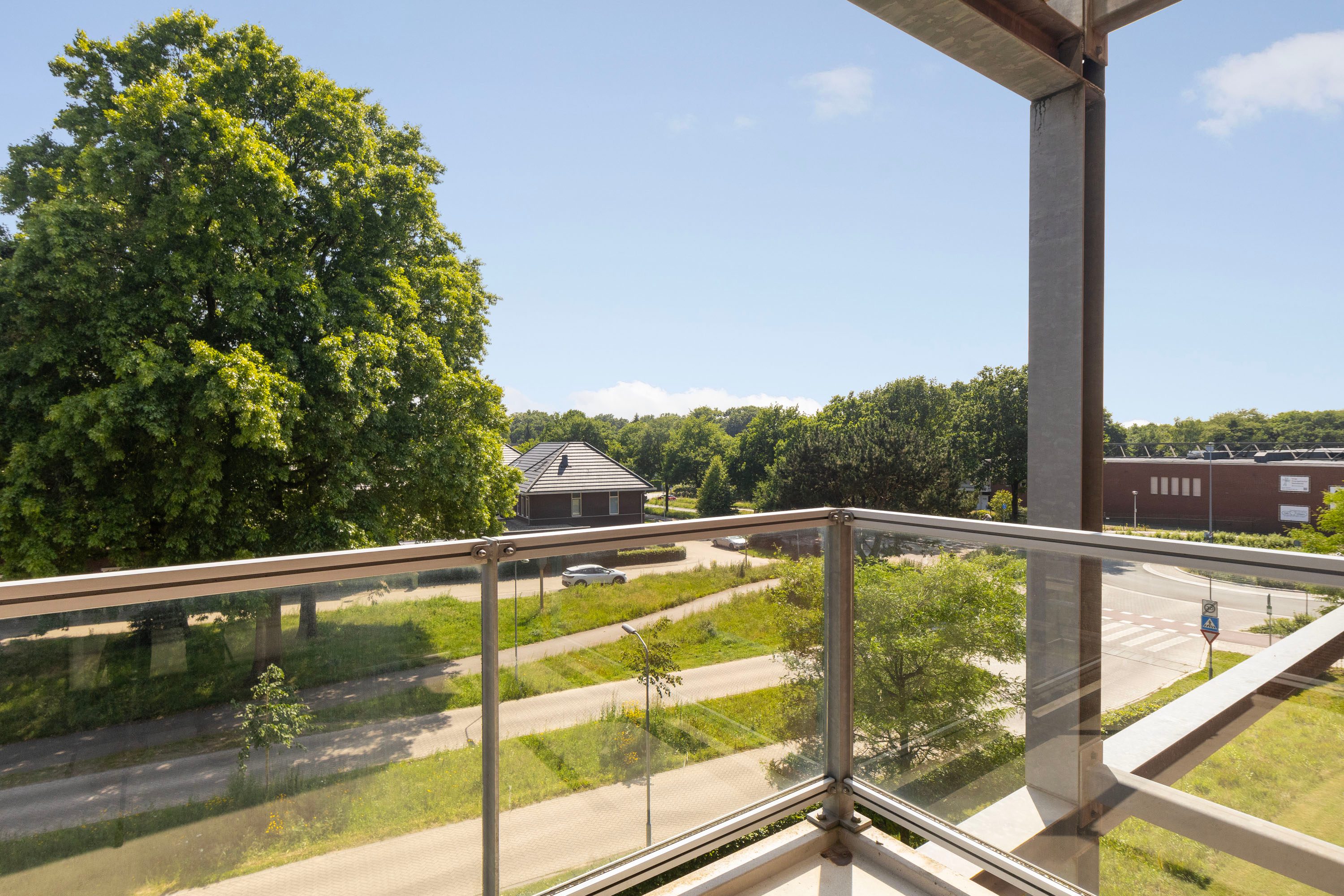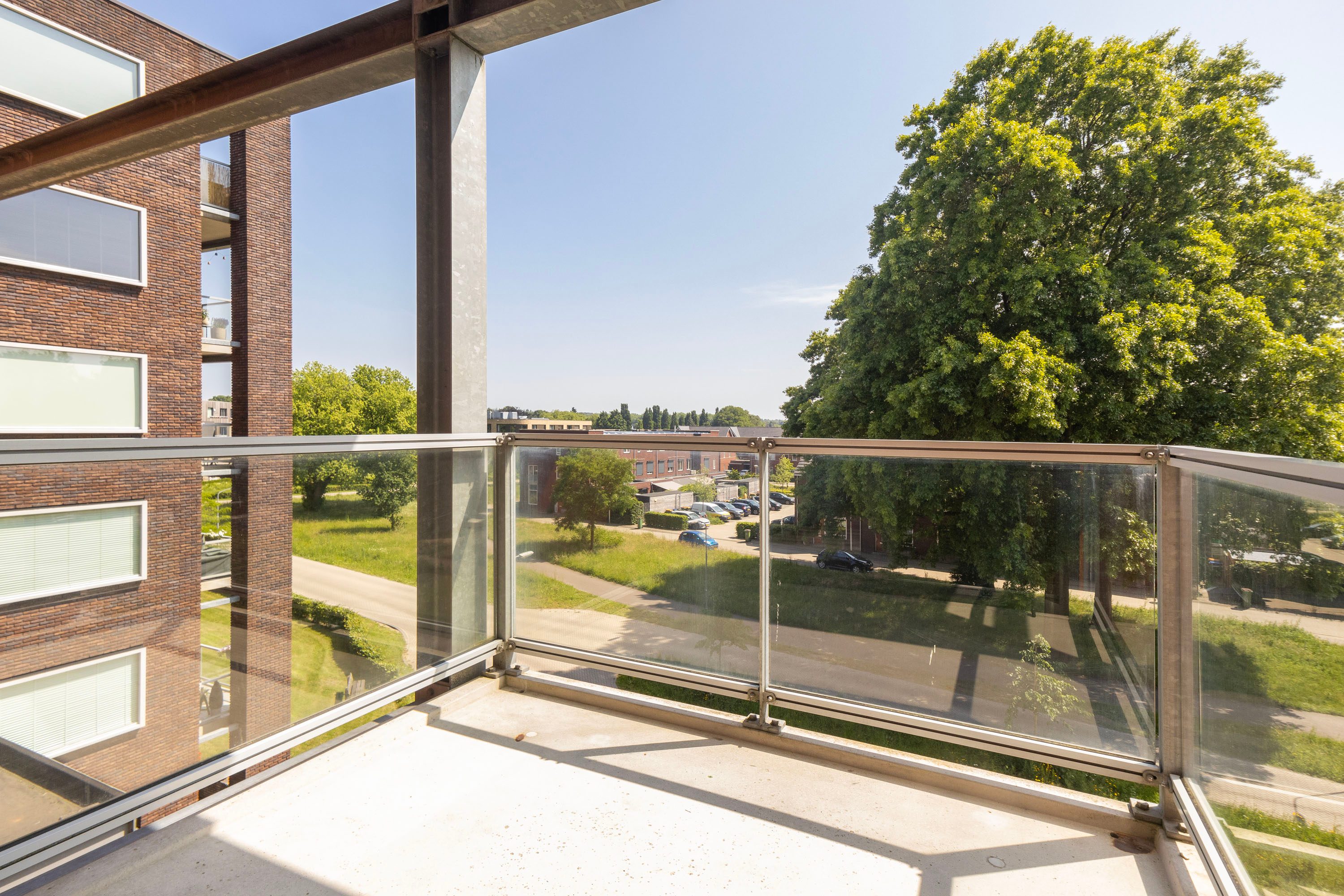 Direct vanuit de woonkamer loop je het zonnige balkon op, ideaal gelegen op het zuiden. Een heerlijke plek waar je de hele dag kunt genieten.