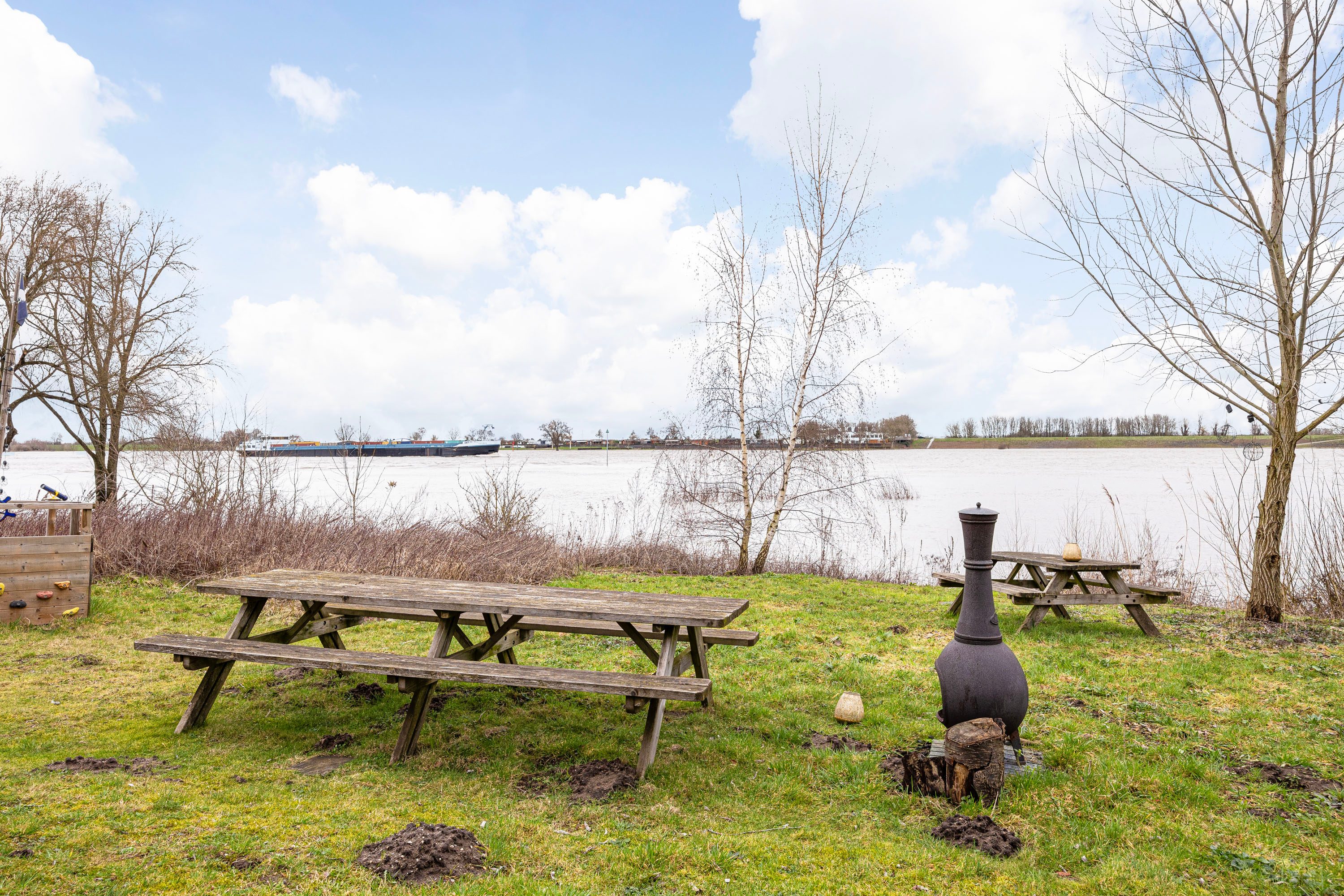 Aan de noordzijde ligt een prachtige gezamenlijke tuin direct aan het water. Deze groene, open plek vormt een heerlijke verlenging van het buitenleven, met picknicktafels, een vaste barbecue en volop ruimte om te genieten van rust en uitzicht. Dankzij het kleine strandje is dit dé plek voor ontspannen zomerdagen, een spontane borrel of een gezellige barbecue. Een bijzondere meerwaarde die perfect past bij de unieke ligging.