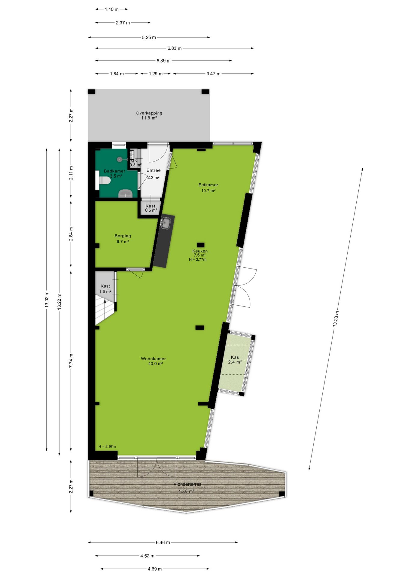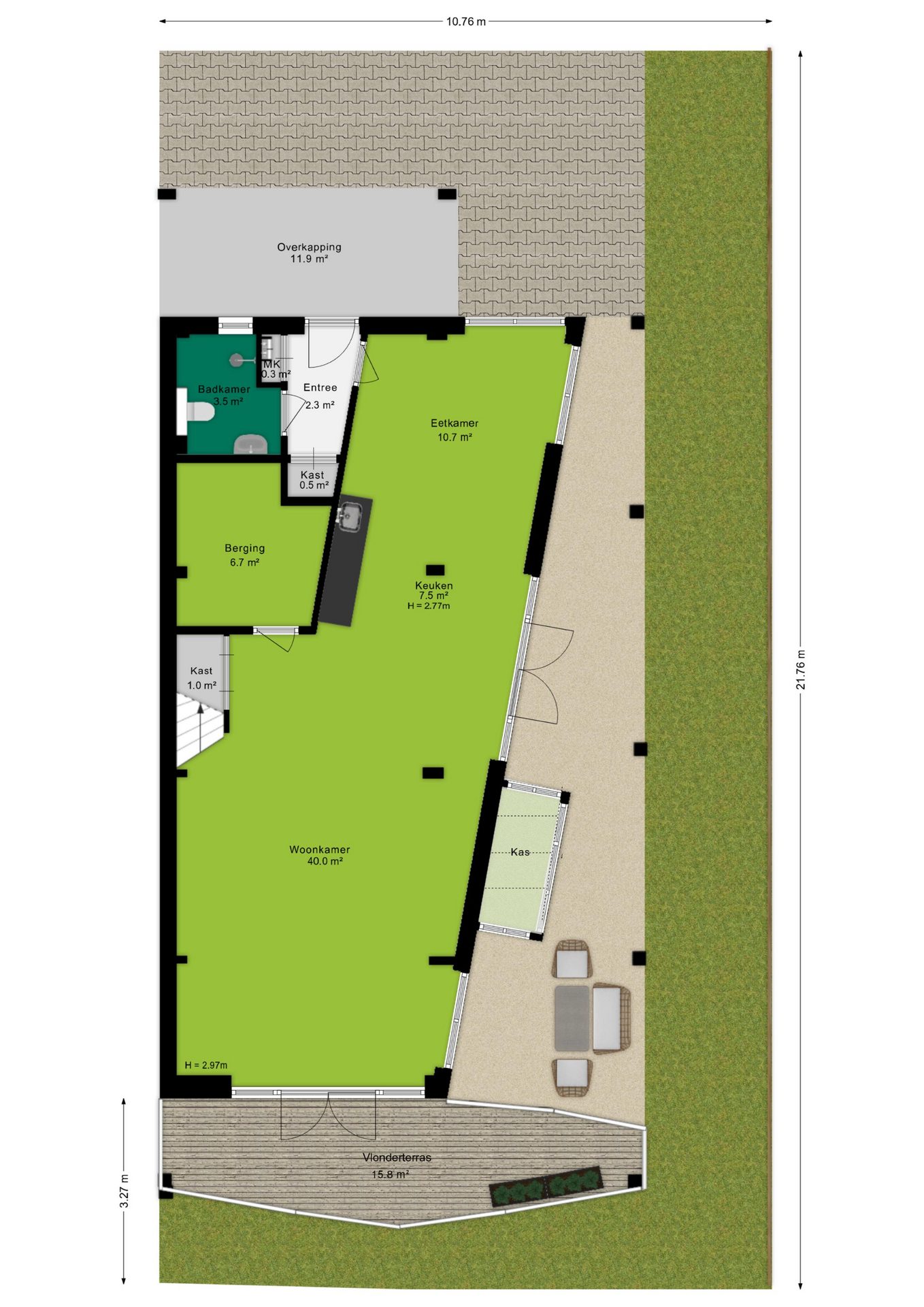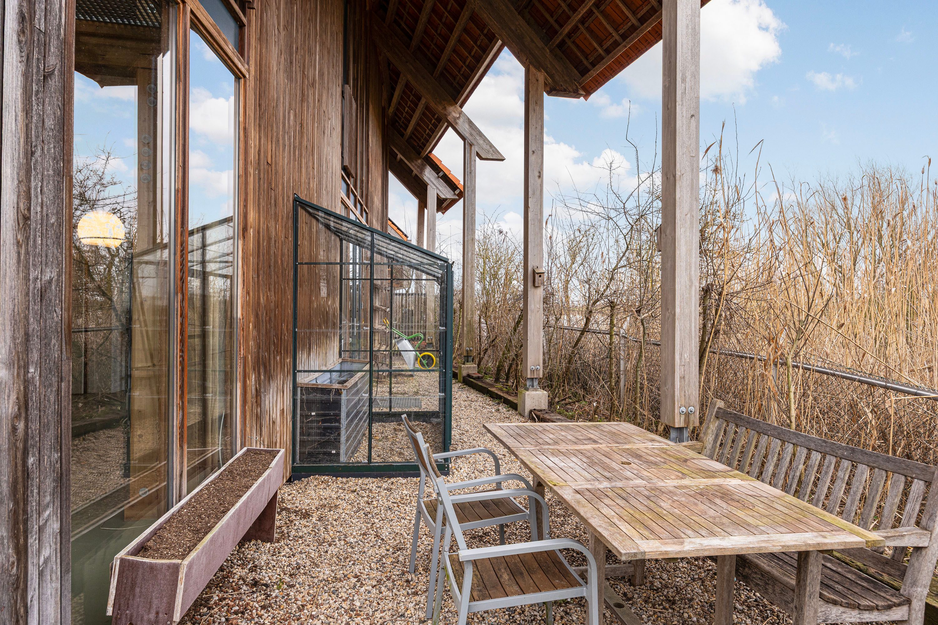 Wat een fantastische plek om te wonen! Zodra de omgeving in het voorjaar tot bloei komt, ontvouwt zich een prachtig groen en kleurrijk geheel. De siergrassen, hagen en fruitbomen zorgen dan voor een levendige en sfeervolle omgeving, waar altijd wel een fijne zitplek te vinden is. Of je nu kiest voor een zonnig plekje of juist voor de verkoelende schaduw, het vlonderterras nodigt uit om volop van het buitenleven te genieten. Daarnaast is er aan de oostzijde een grote muurkas, perfect voor het kweken van groenten, kruiden of bijzondere planten. Een waardevolle toevoeging voor iedereen die graag met groen bezig is.