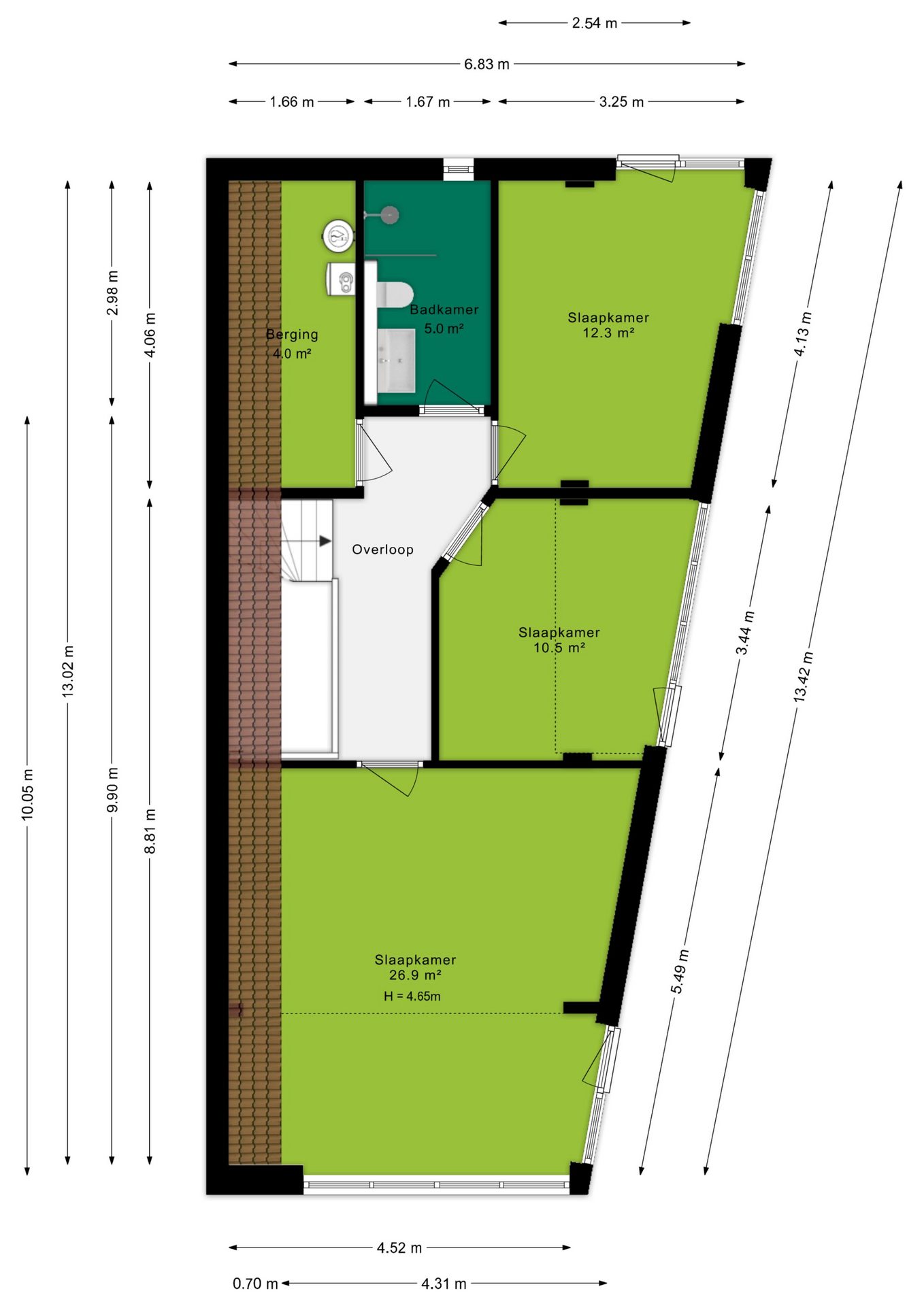 - Slaapkamer, tweede badkamer en praktische berg-/wasruimte op de bovenverdieping