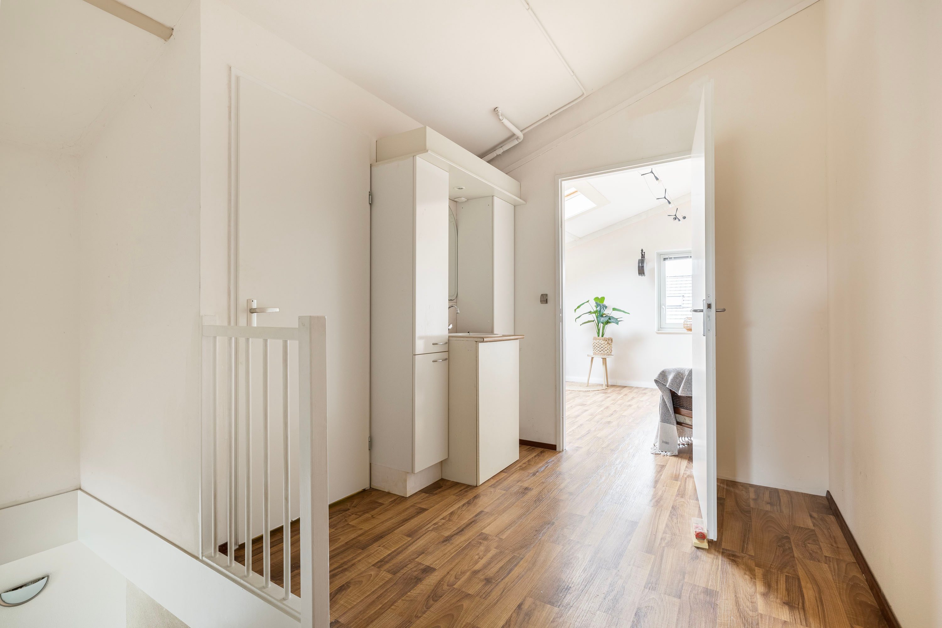 Via een vaste trap kom je op een ruime voorzolder, waar toegang is tot een bergkast met opstelling voor de wasmachine, droger en de WTW-unit en 2 ruime slaapkamers. De slaapkamer aan de voorzijde heeft een extra dakraam wat zorgt voor een prettige lichtinval en ventilatiemogelijkheden.