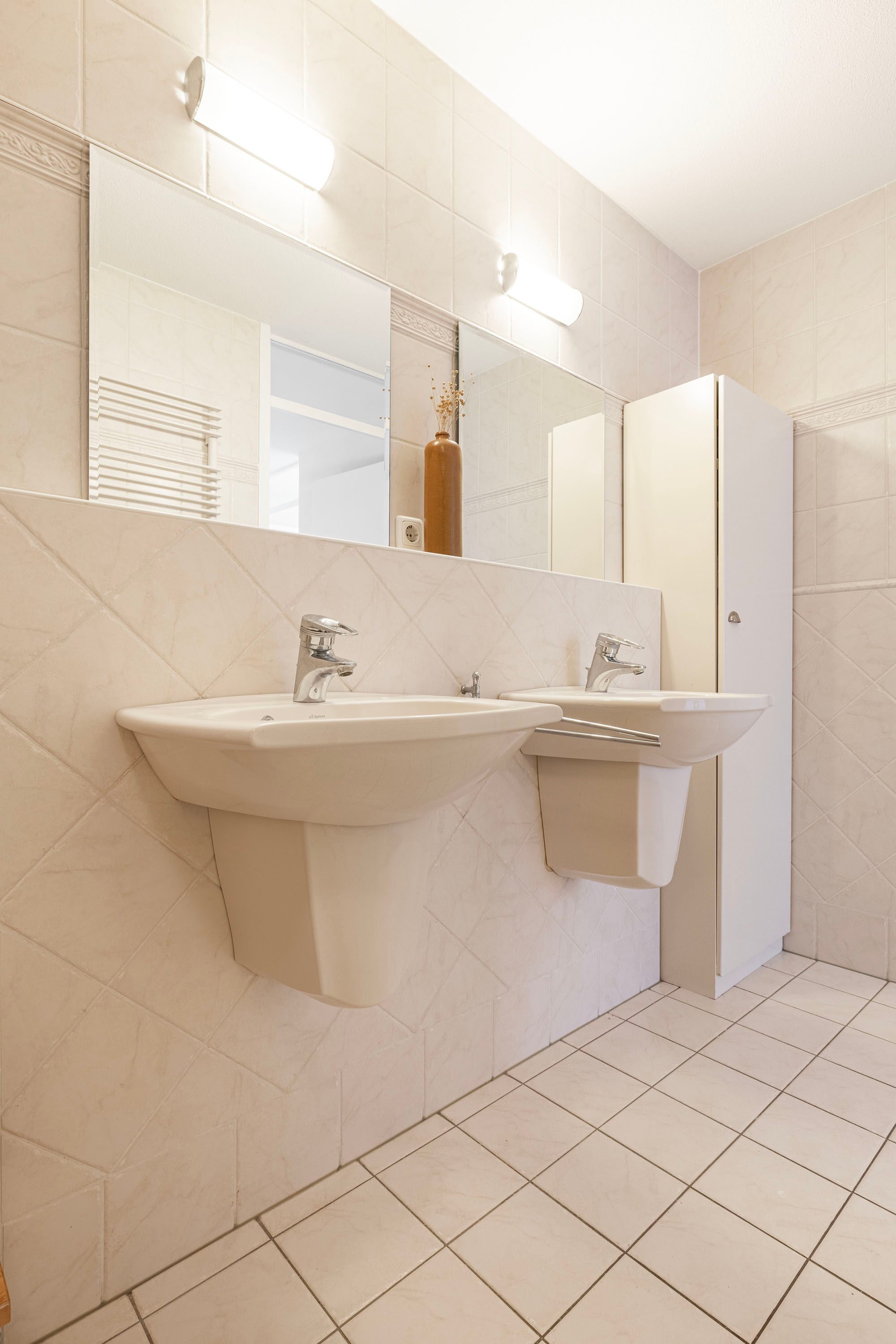 + Dubbele wastafel en een wandmeubel;