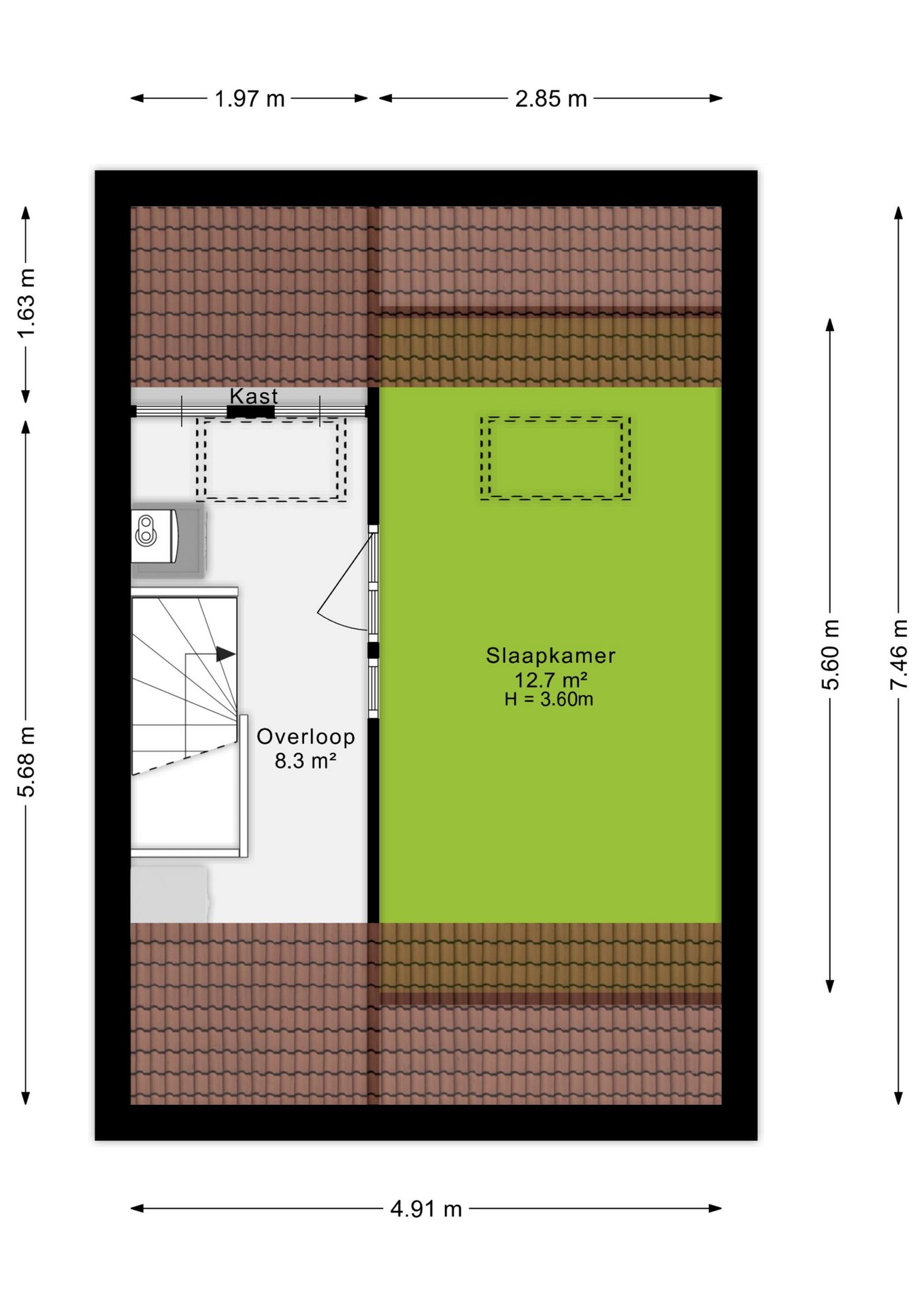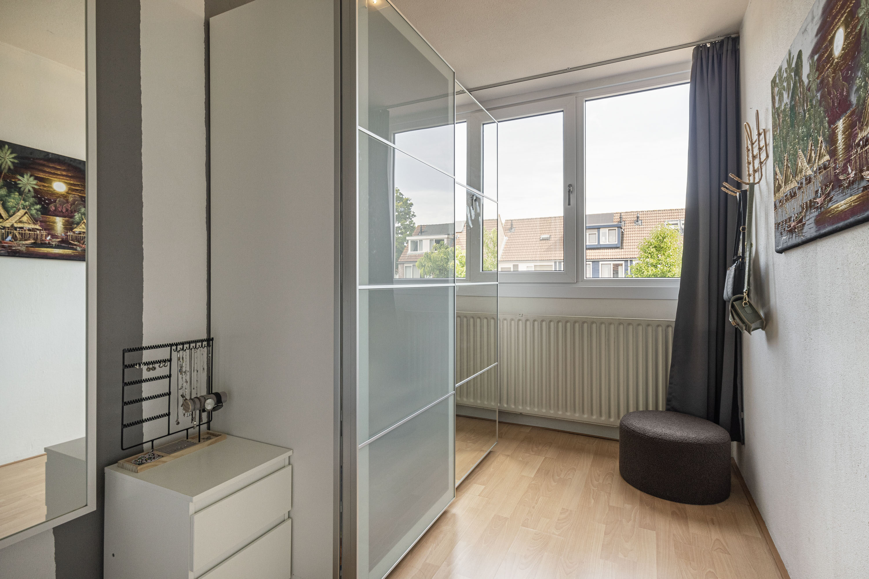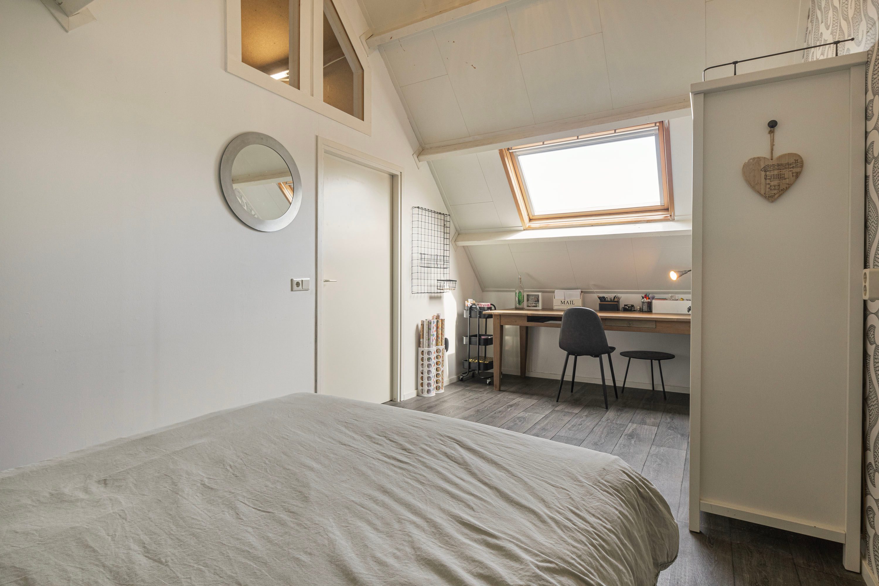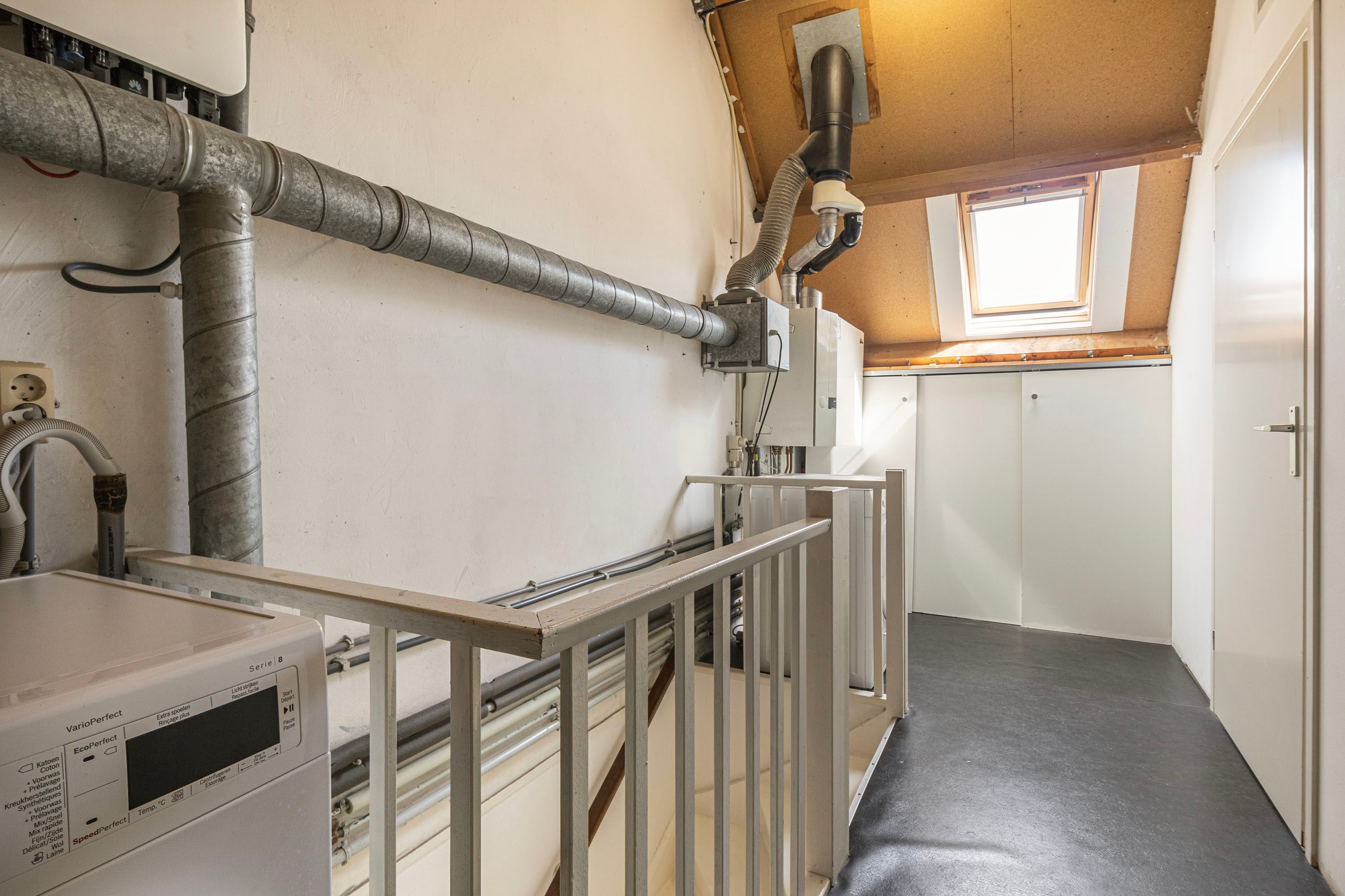 Via een vaste houten trap bereik je de 2e verdieping welke je toegang geeft tot een ruime overloop met plek voor de wasmachine, droger en cv-installatie en de 4e slaapkamer. Deze slaapkamer is met circa 12,7 m² van wederom een zeer prettig formaat en wordt door middel van een dakraam voorzien van de gewenste natuurlijke ventilatie en daglicht.