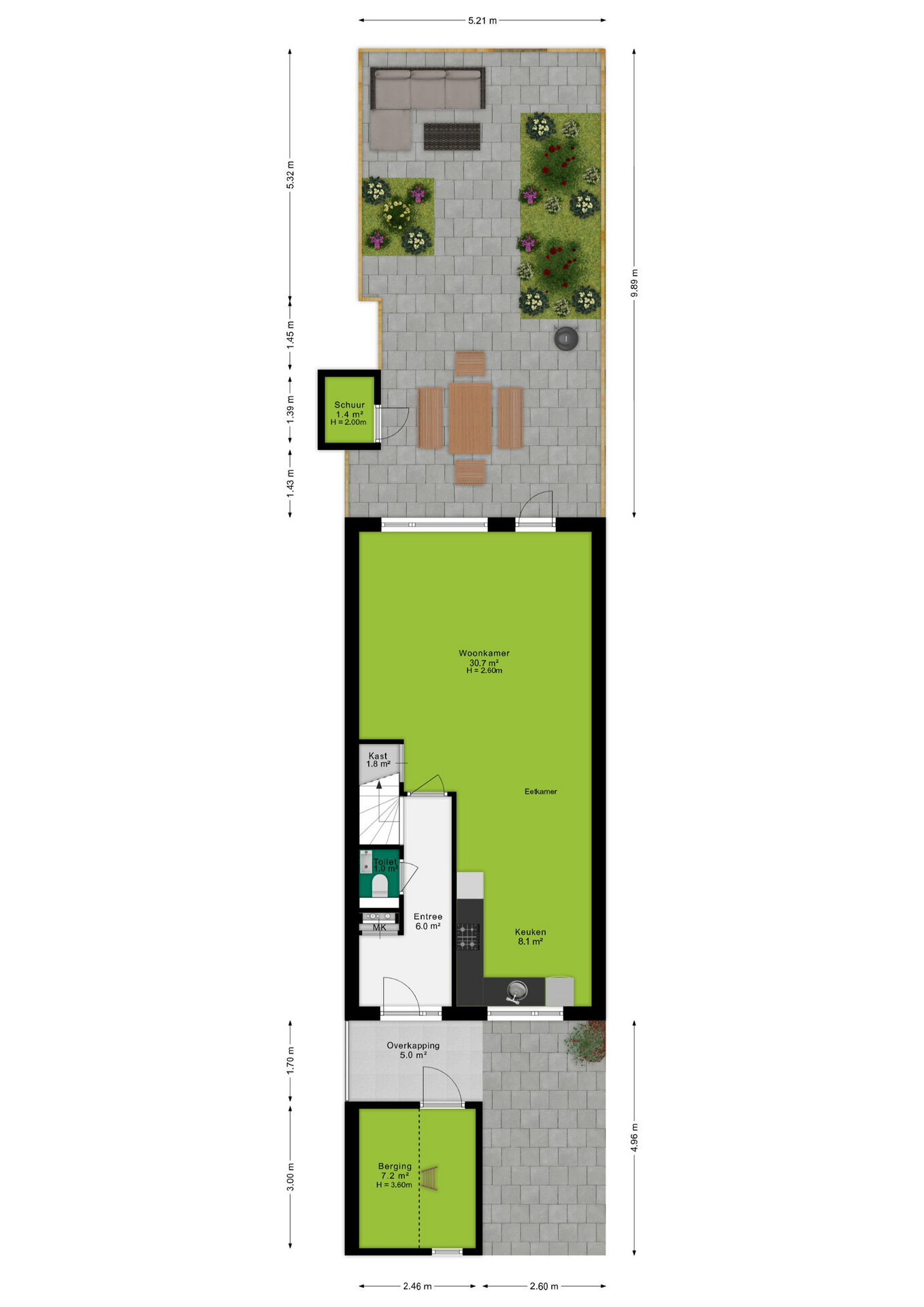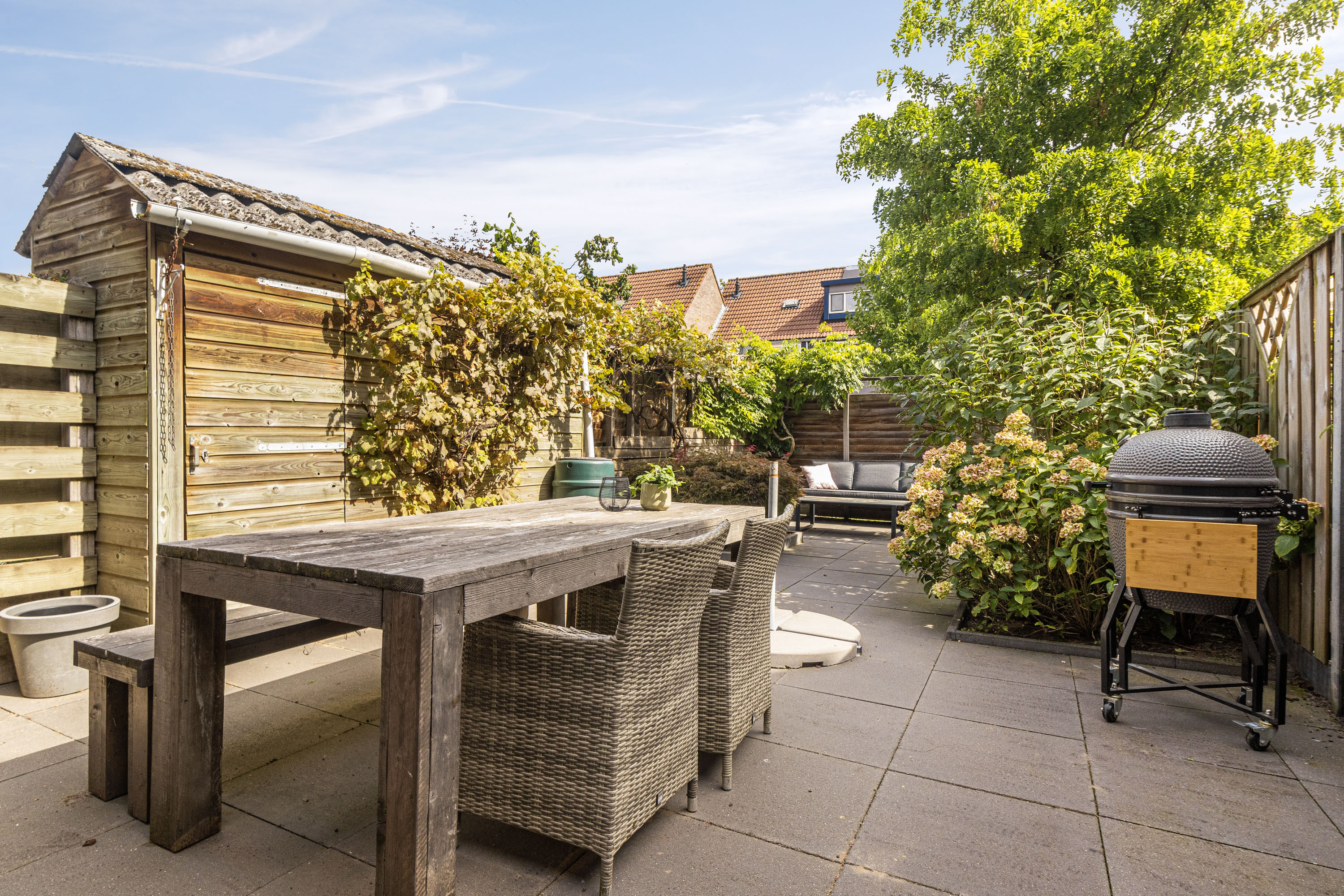 De achtertuin op het oosten biedt ochtend- en vroege middagzon en is ruim genoeg voor groene vingers én gezellig borrelen. De achtertuin beschikt tevens ook over een handige achterom. Aan de voorzijde vind je de vrijstaande stenen berging met vliering: extra bergruimte binnen handbereik.