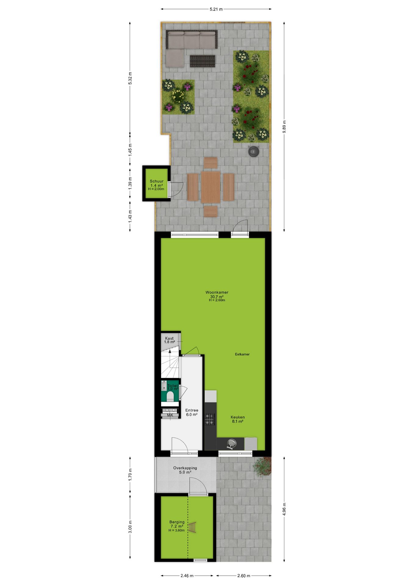 - Achtertuin op het oosten;