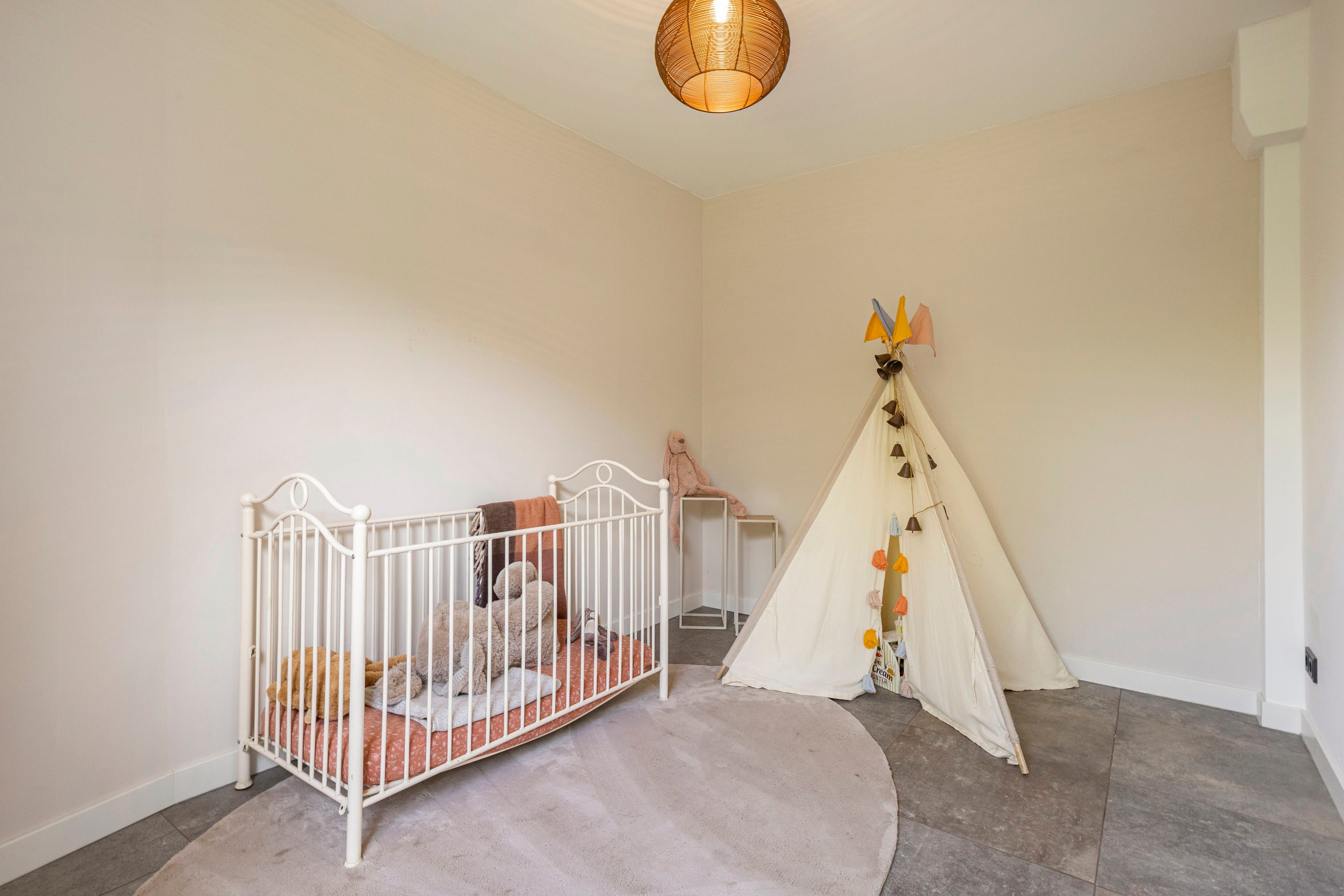 De eerste verdieping is bereikbaar via de stalen trap. Hier bevindt zich een 4e slaapkamer en bergruimte. Deze verdieping wordt tevens gekoeld en/of verwarmd door een airconditioning.