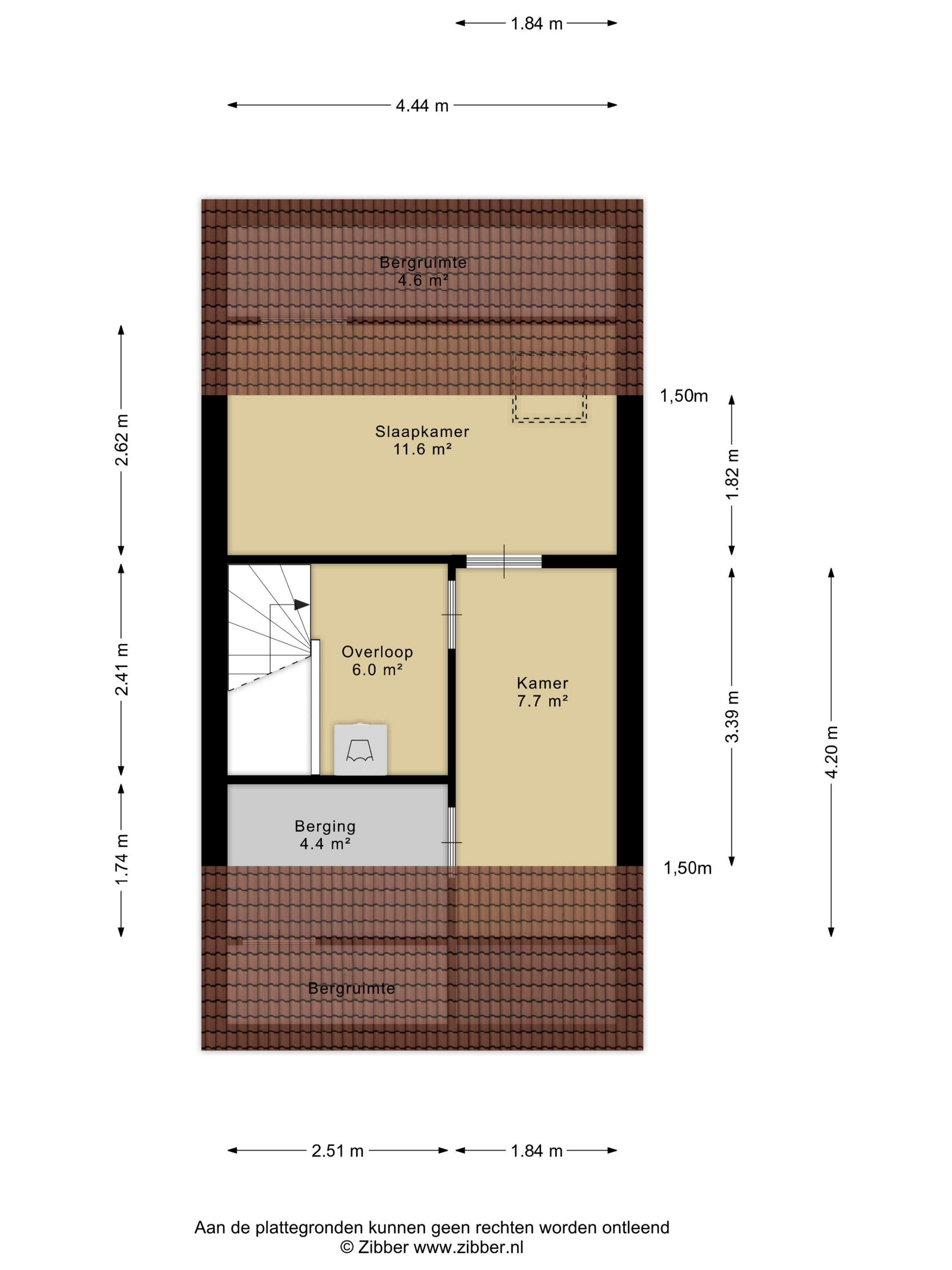 Op deze verdieping is er via de overloop toegang naar de vierde slaapkamer. De slaapkamer aan de achterzijde is over de volle breedte van de woning gelegen. Aan de voorzijde van de woning zijn een berging en extra bergkamer gelegen. Op de overloop bevindt zich de aansluiting voor de wasmachine. Ook deze verdieping is voorzien van een laminaatvloer.