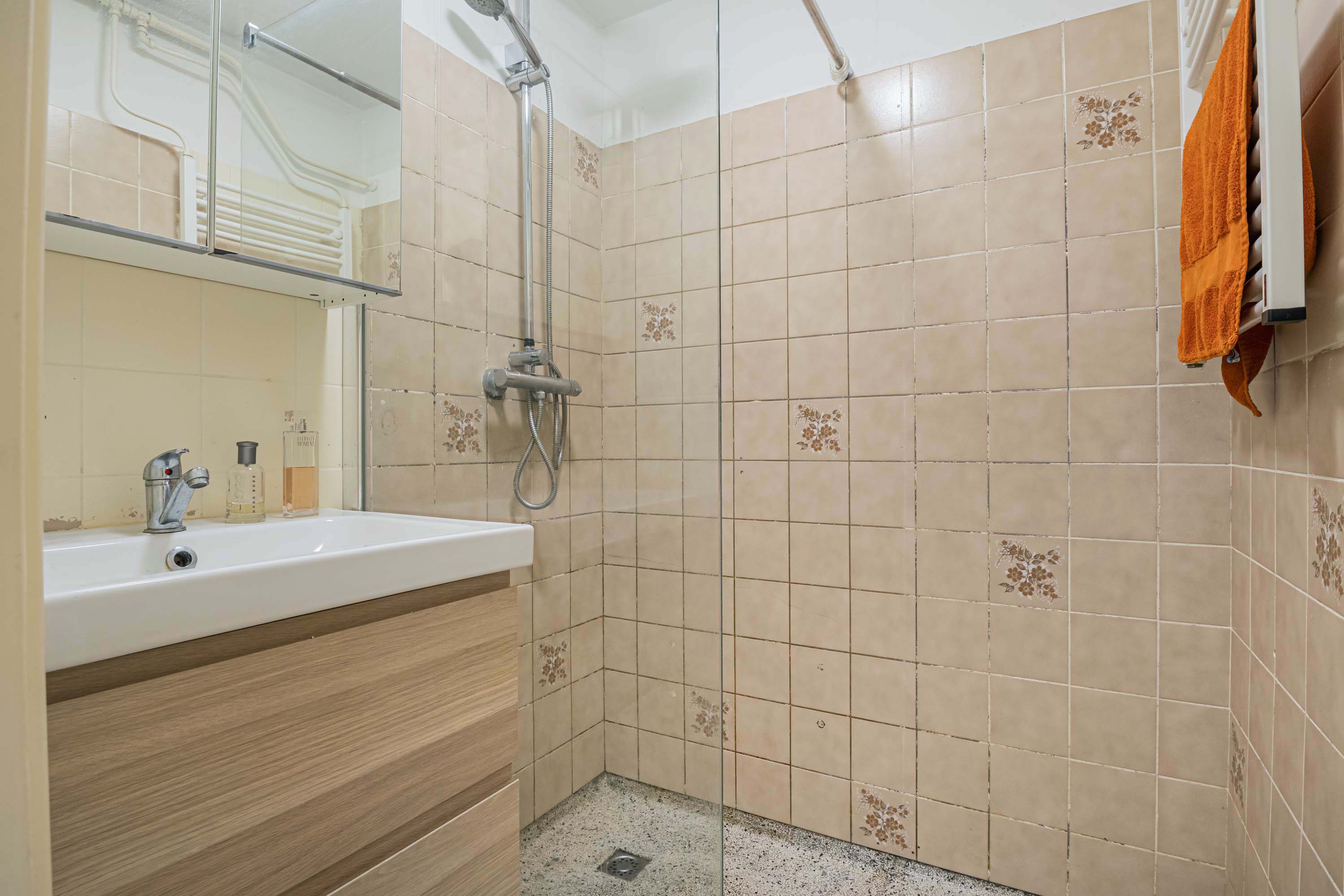 Via de gang bereik je ook het aparte toilet en de badkamer. De badkamer is ingericht en voorzien van een wastafel met meubel, een designradiator en een inloopdouche.