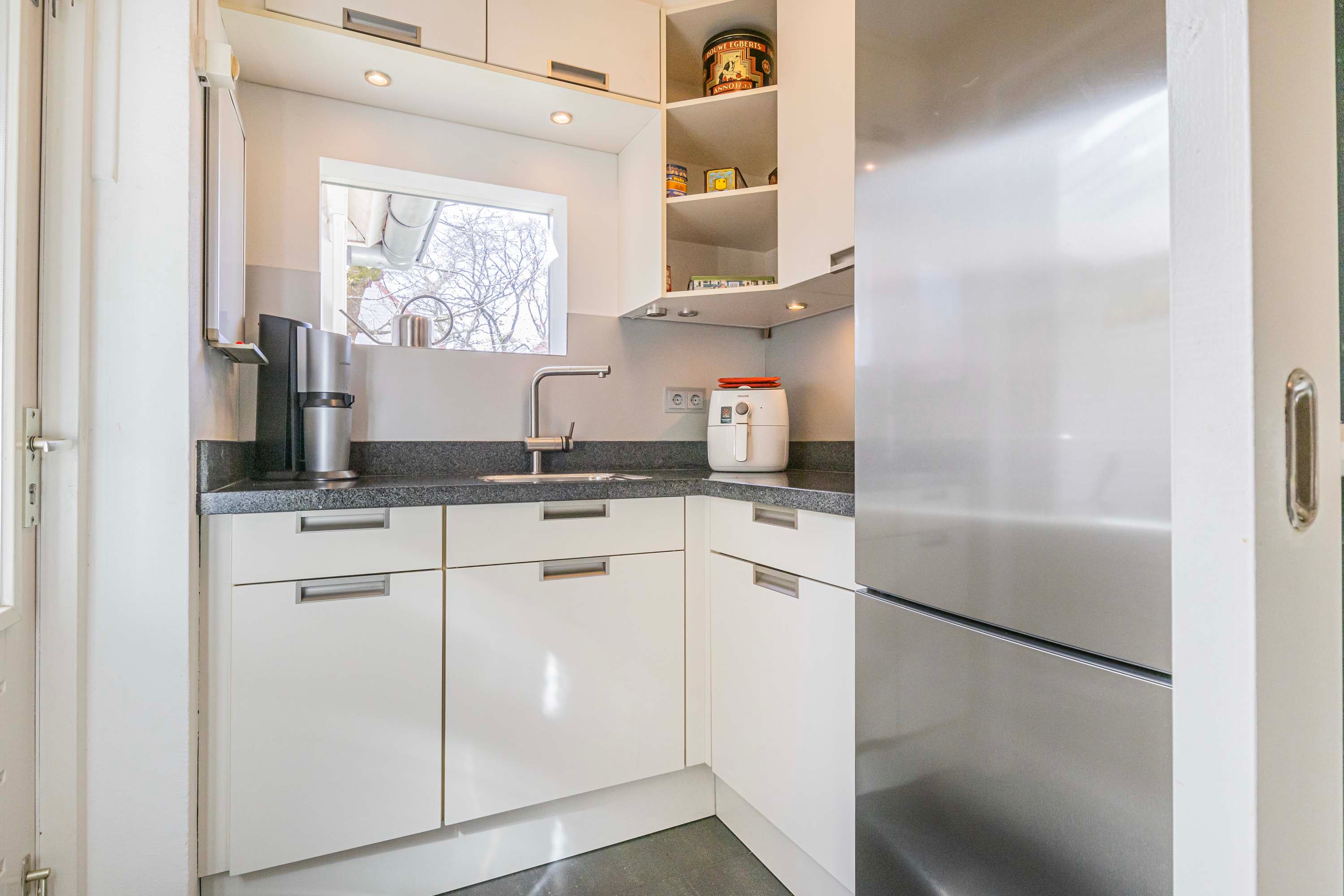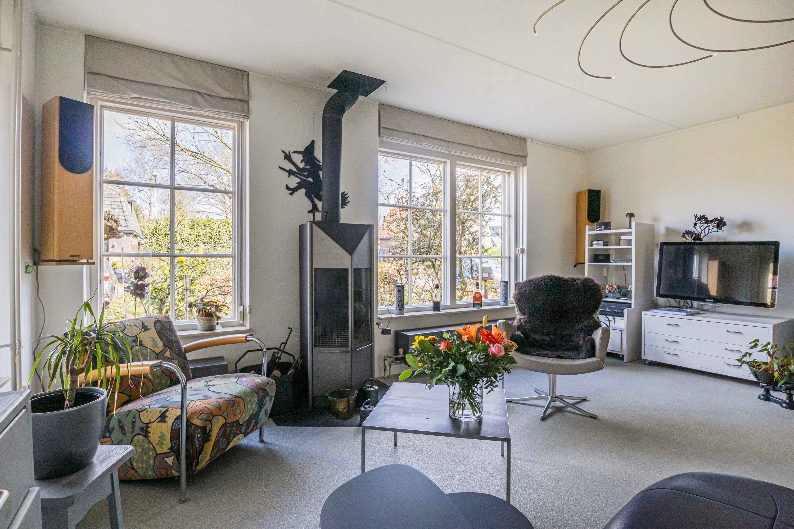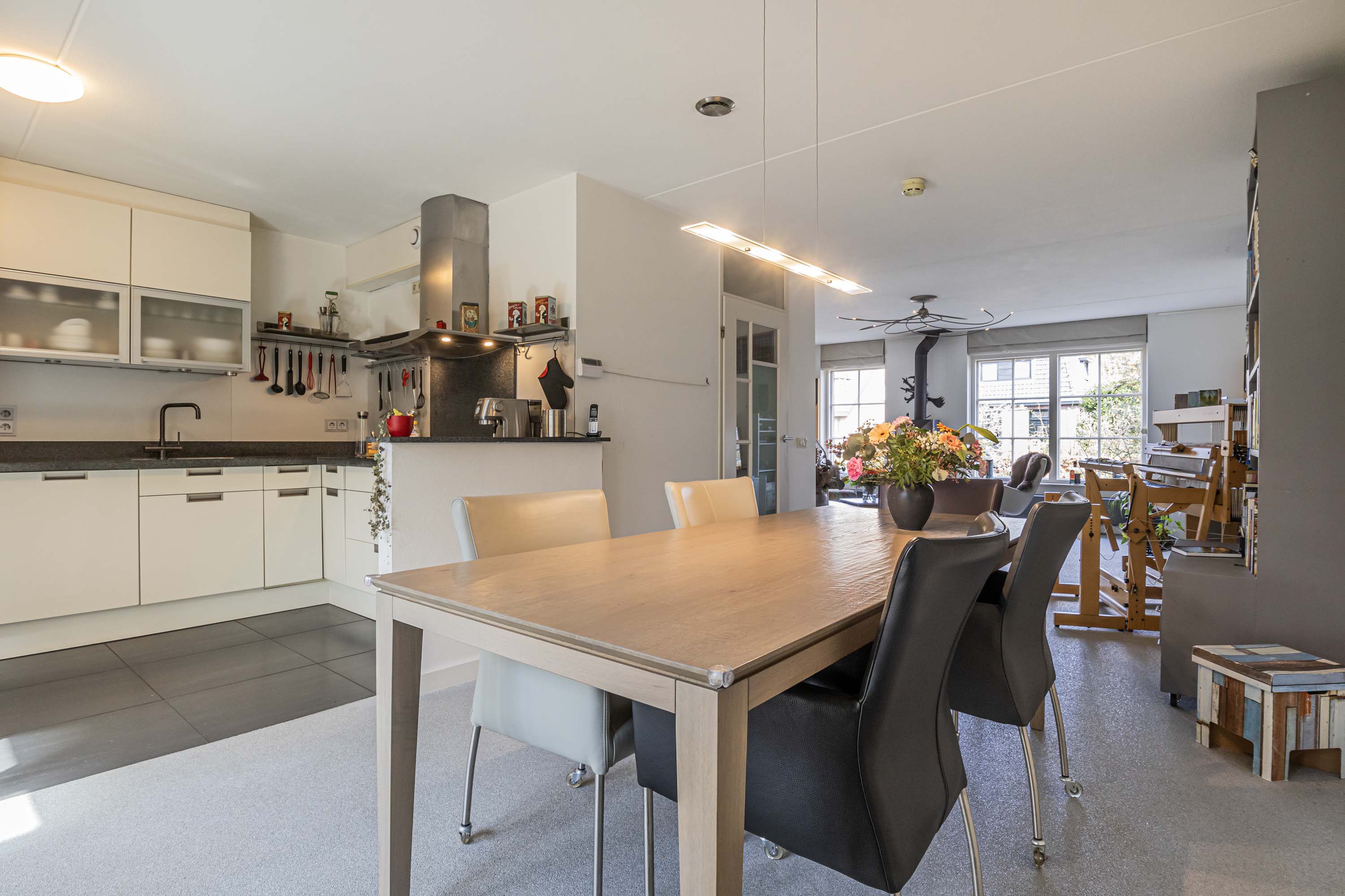 Direct via de entree heb je toegang tot een praktische opbergkast, een toilet, een ruime berging en de hal. Vanuit de hal loop je zo de woonkamer in. De woonkamer is een open ruimte die naadloos overgaat in de eetkamer. Deze verbinding zorgt voor een gevoel van ruimte en gezelligheid, waarbij natuurlijk licht een warme en uitnodigende sfeer creërt. Dankzij de open keuken sta je in verbinding met degene aan de keukentafel.