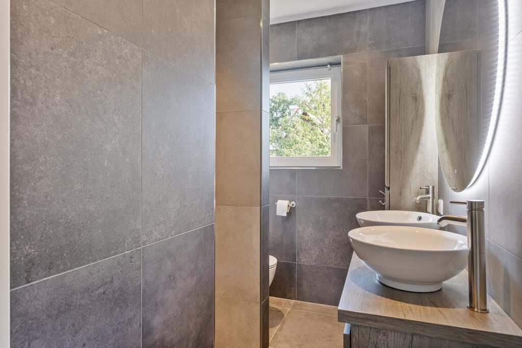 + Moderne strak afgewerkte keuken met diverse inbouwapparatuur;