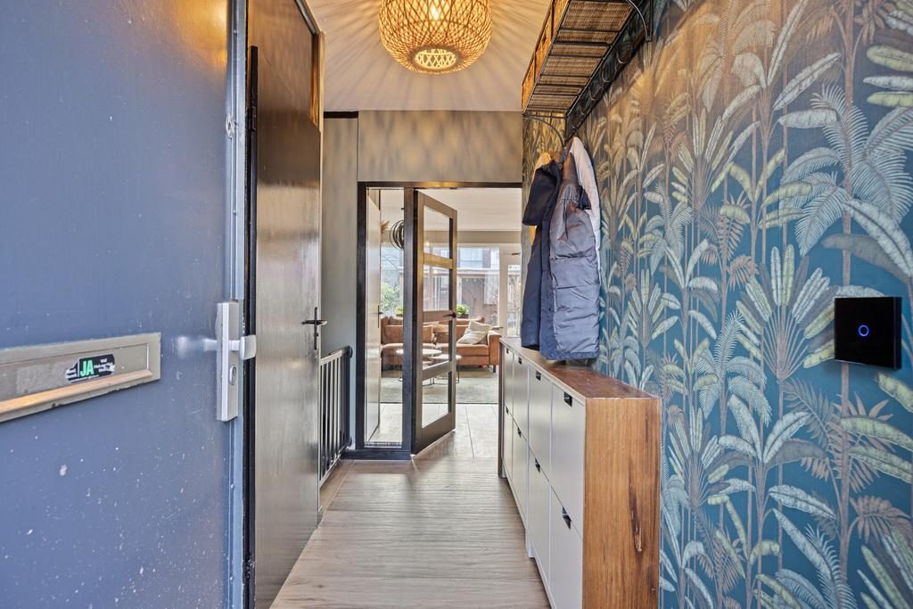 Bij aankomst zie je direct de praktische parkeerplaats voor het huis en de toegang tot de berging, die zowel van buitenaf als vanuit de hal bereikbaar is. Deze berging, voorzien van een handige bergvliering, is bekleed met duurzaam Douglashout en biedt volop ruimte voor fietsen en opslag.