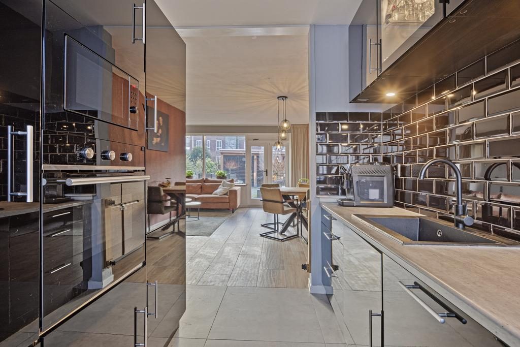 Aan de voorzijde van de woning bevindt zich een moderne, zwarte inbouwkeuken (2022) met alle gemakken: een keramische kookplaat, afzuigkap, koelkast, vriezer, vaatwasser, oven en magnetron. Deze keuken combineert functionaliteit met een strakke, eigentijdse uitstraling.