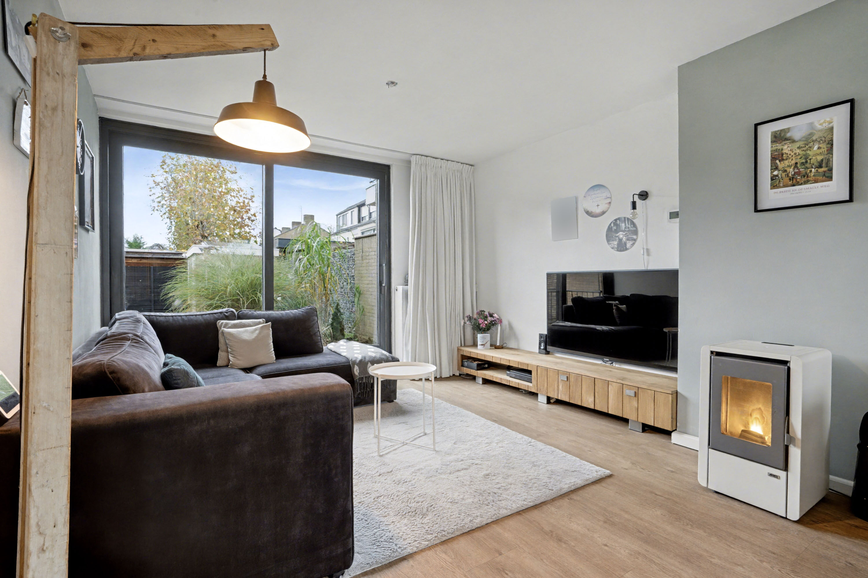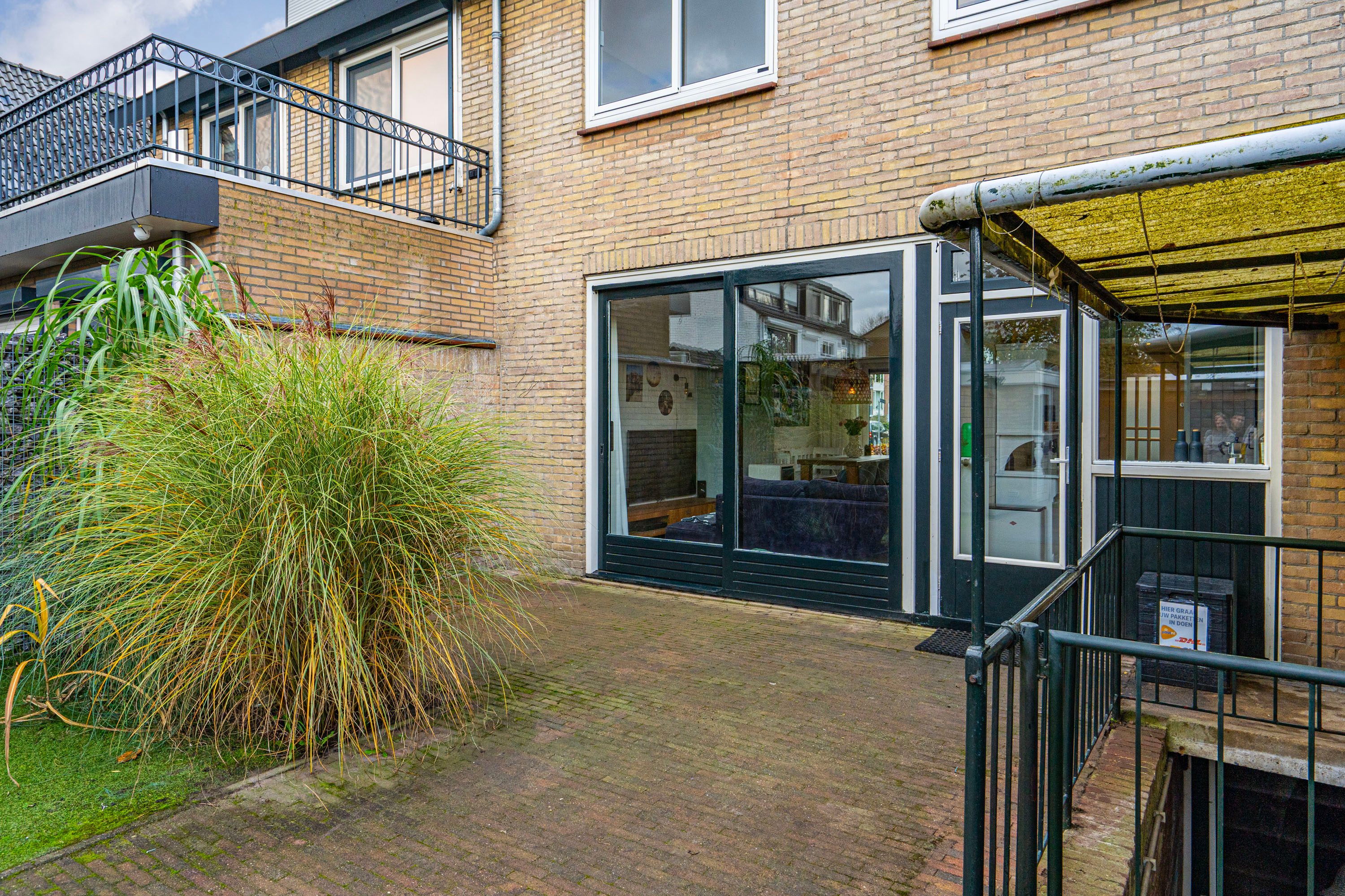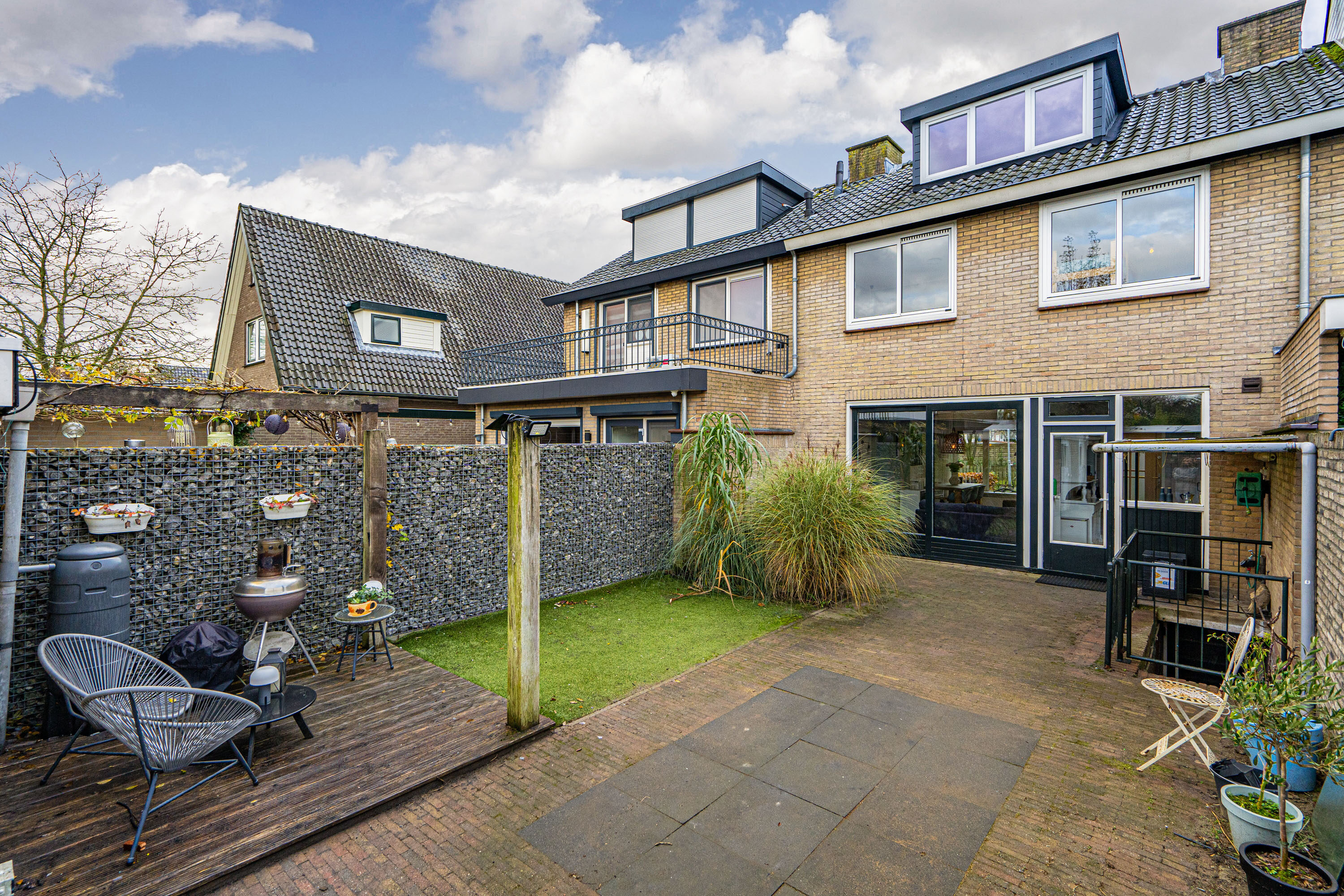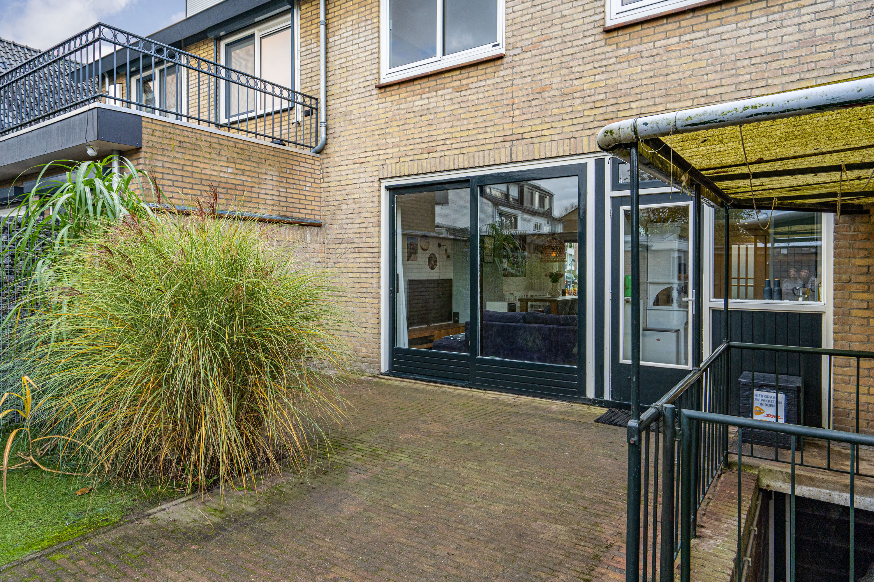 Via de schuifpui in de woonkamer en de keuken is de ruime achtertuin op het noorden bereikbaar. De tuin biedt voldoende ruimte voor meerdere zitjes en is ideaal om van het buitenleven te genieten. Achterin bevindt zich een stenen berging van ca. 8 m², praktisch voor extra opbergruimte of het stallen van fietsen, met twee toegangsdeuren. De tuin is daarnaast via een achterom bereikbaar, en via een trap in de tuin is ook het souterrain toegankelijk. De op het zuiden gelegen voortuin ligt iets terug van de straat, wat zorgt voor extra privacy, terwijl het zonnescherm het mogelijk maakt om ook op warme dagen comfortabel in de woonkamer te zitten.