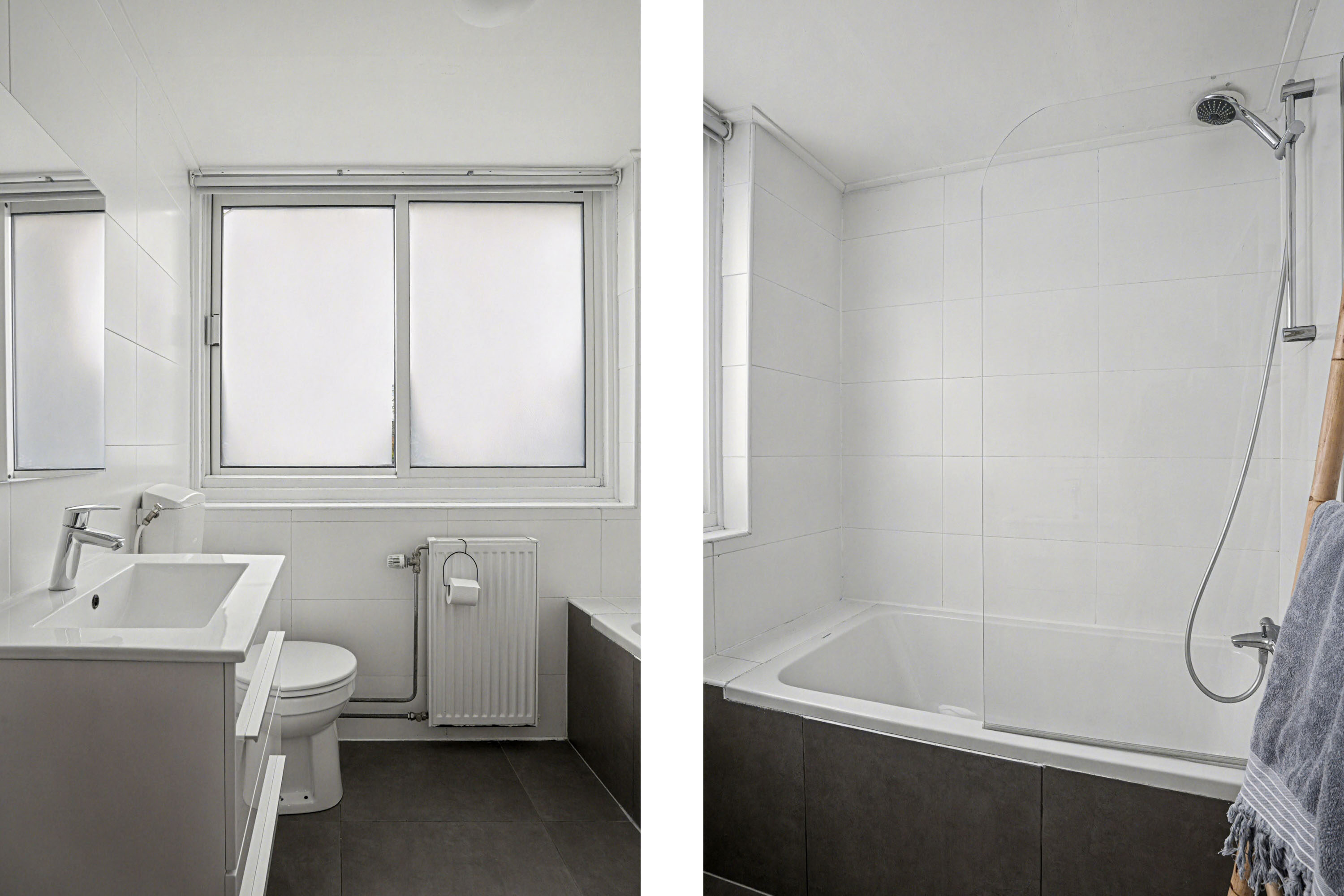 Via de trap in de hal bereik je de overloop van de eerste verdieping, die toegang biedt tot drie slaapkamers (ca. 8 m², 12 m² en 7 m²) en de badkamer. De twee grootste slaapkamers zijn voorzien van praktische inbouwkasten met schuifdeuren, waardoor er extra opbergruimte ontstaat. Alle kamers zijn flexibel in te richten, bijvoorbeeld als slaapkamer, werkkamer, hobbyruimte of zelfs inloopkast. De moderne nette badkamer beschikt over een badkamermeubel, toilet en een ligbad met douche: perfect om te ontspannen of praktisch in gebruik met kinderen.