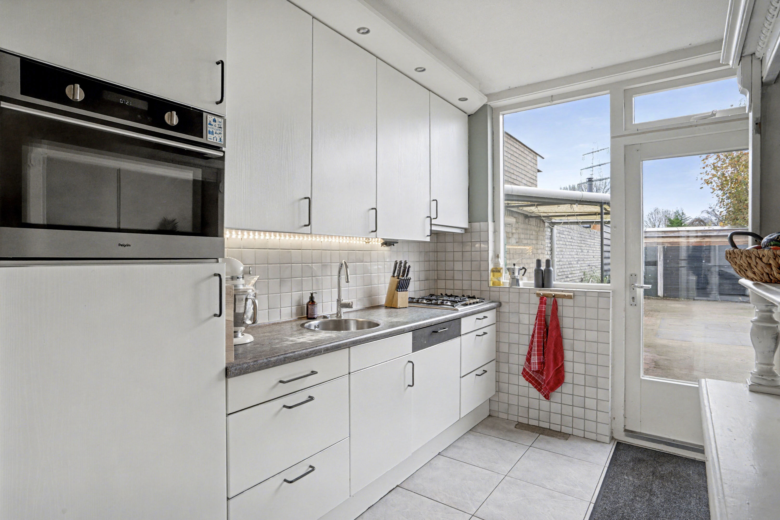 Ook de keuken is vanuit de hal bereikbaar. Deze is uitgerust met een fornuis, combi-oven/magnetron, koelkast en vaatwasser. Dankzij de vele kasten en lades is er volop opbergruimte. De inbouwspots zorgen bovendien voor prettig licht boven het werkblad. Via een deur in de keuken heb je direct toegang tot de tuin. Een groot pluspunt van deze woning is het ruime souterrain. Dit is via een trap in de hal bereikbaar. Je komt binnen in een praktische ruimte met aansluitingen voor de wasmachine, droger en een waterpunt. Vanuit hier heb je toegang tot twee bergingen, perfect als klusruimte, hobbykamer of voor wie het wat anders wilt: een thuisbioscoop voor jou of de kinderen!