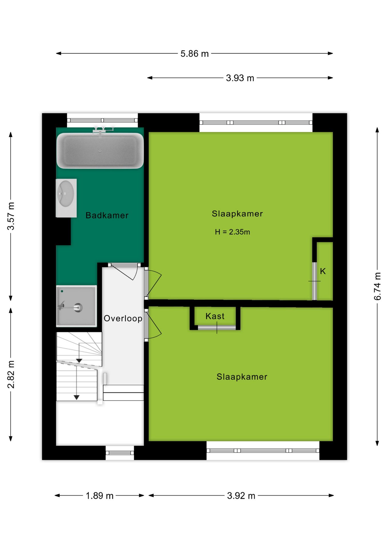 Op de tweede verdieping bevindt zich een derde slaapkamer, compleet met een dakraam en een dakkapel die zorgen voor extra ruimte en volop lichtinval.
