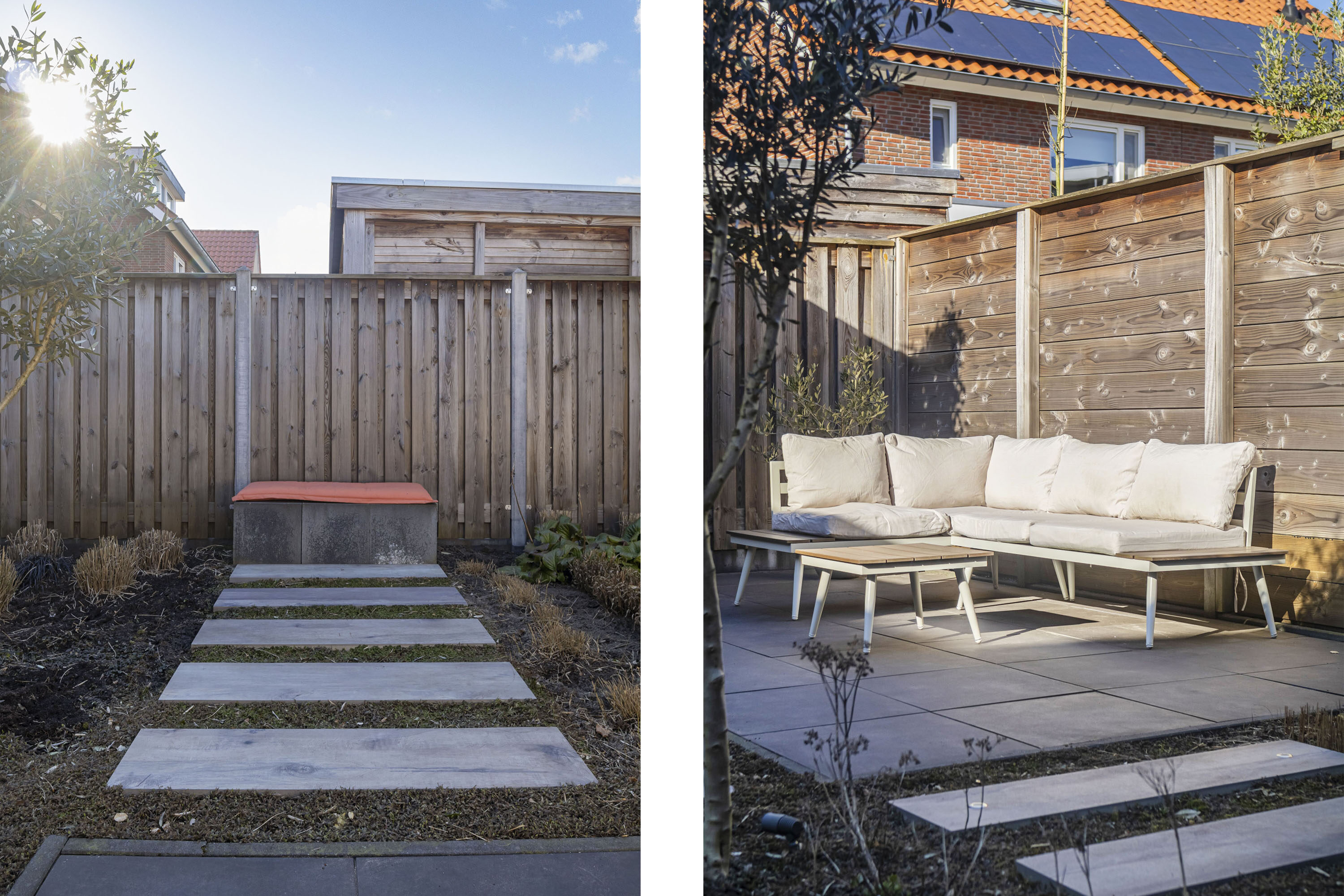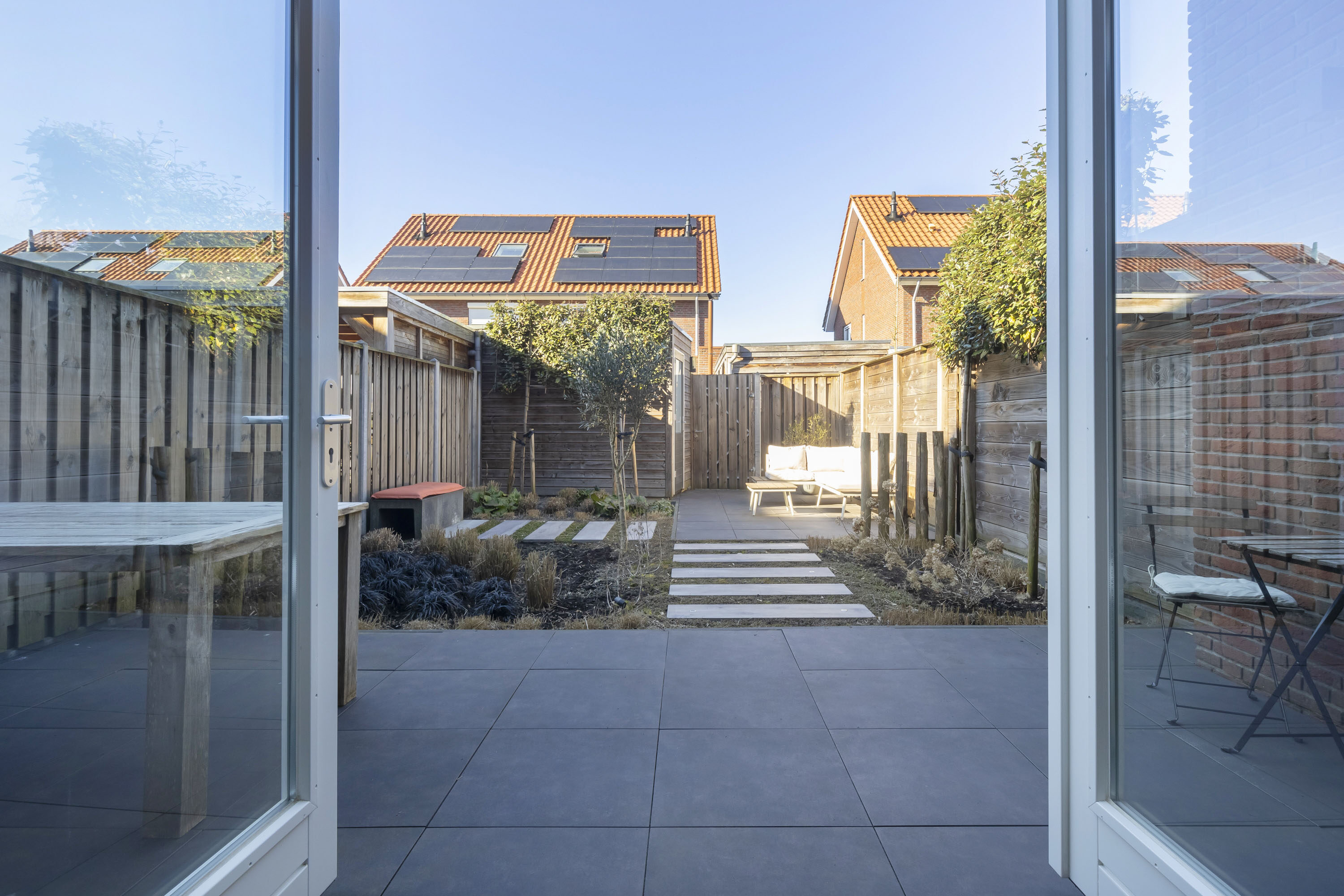 Je kunt de achtertuin betreden via de openslaande deuren in de woonkamer. Achterin de tuin staat een houten schuur die perfect is voor het stallen van fietsen of het opbergen van tuingereedschap. In de tuin zijn diverse zonnige zitplekken waar je optimaal van het mooie weer kunt genieten. Bovendien is de tuin ook toegankelijk via een achterom.