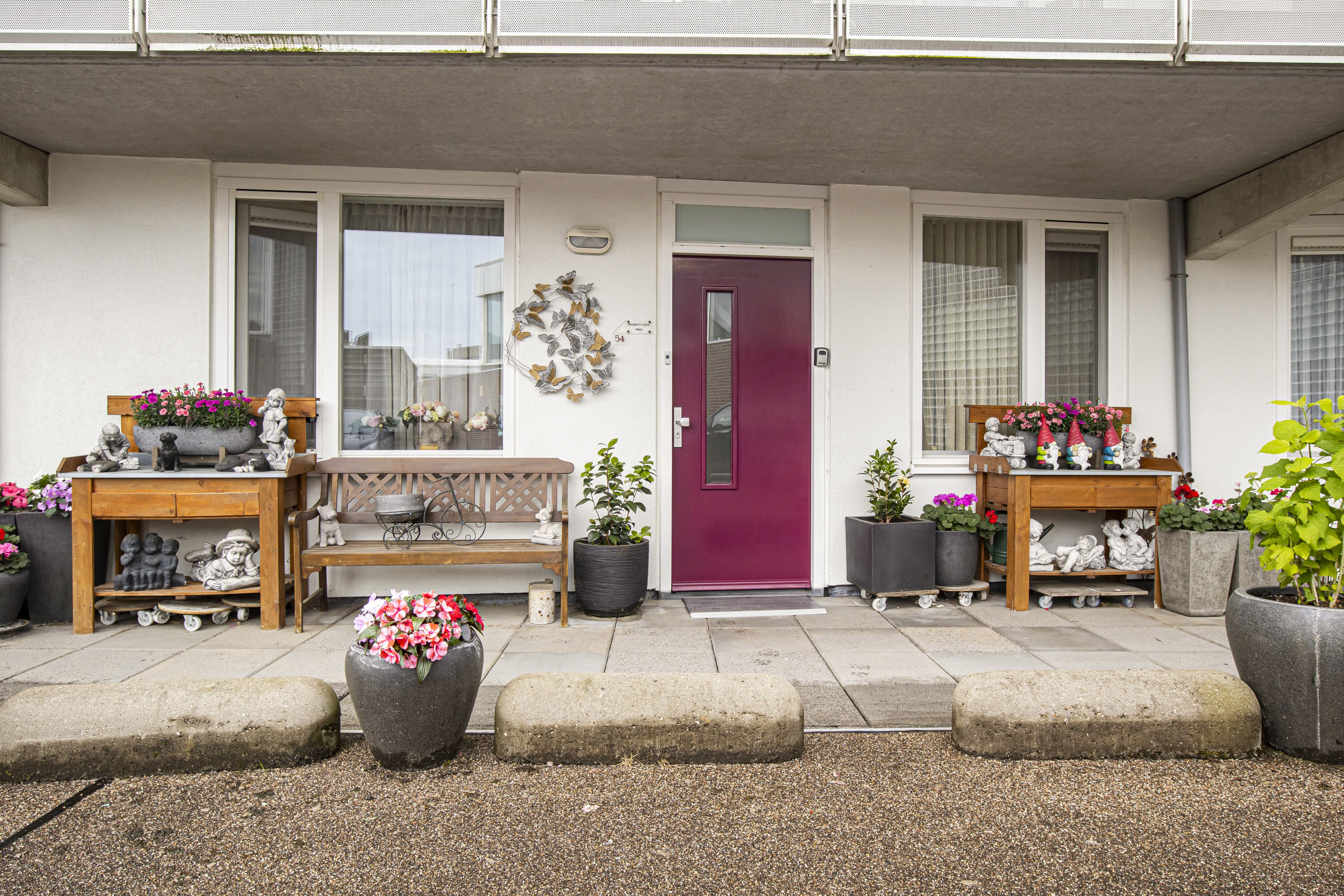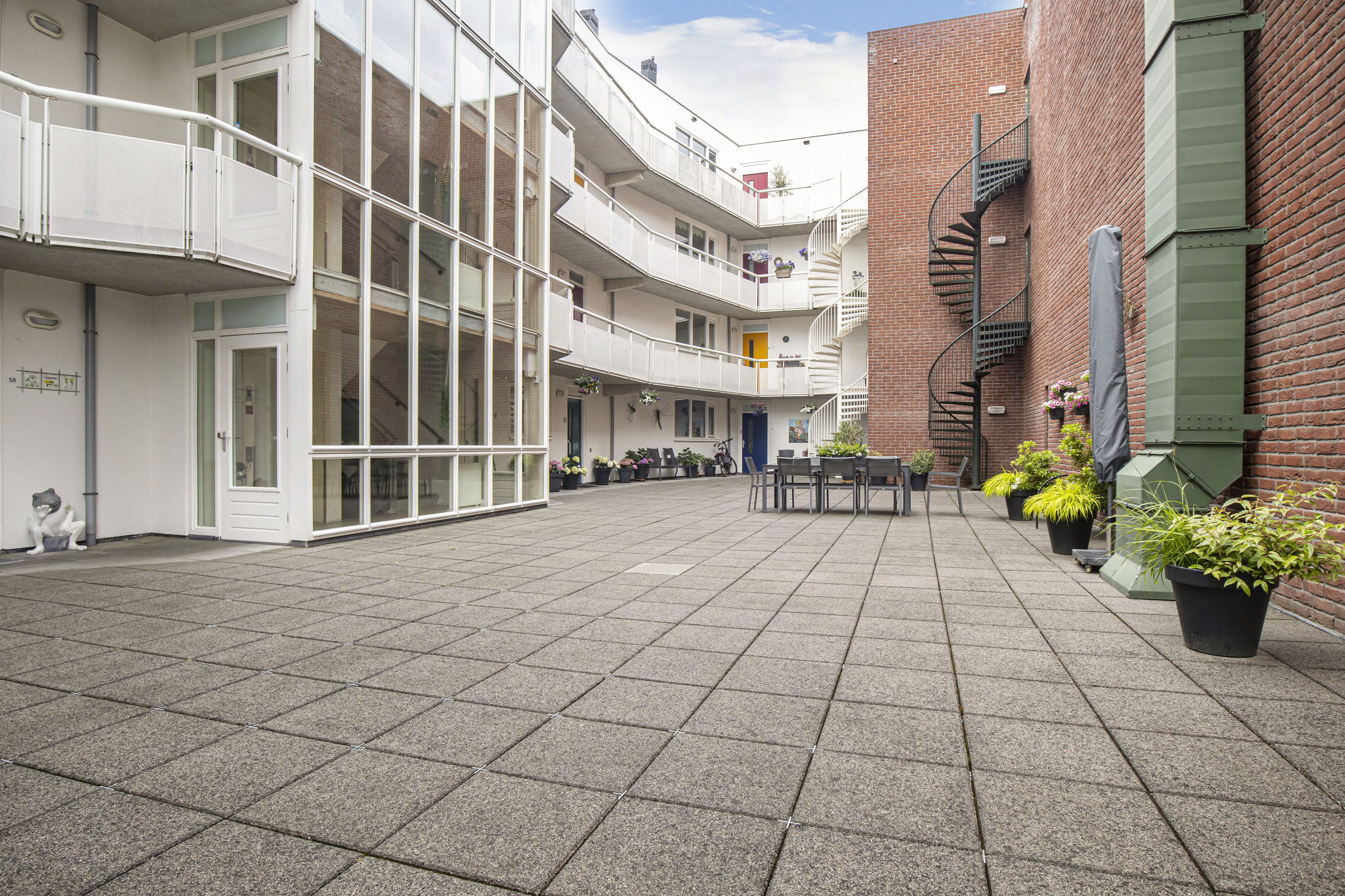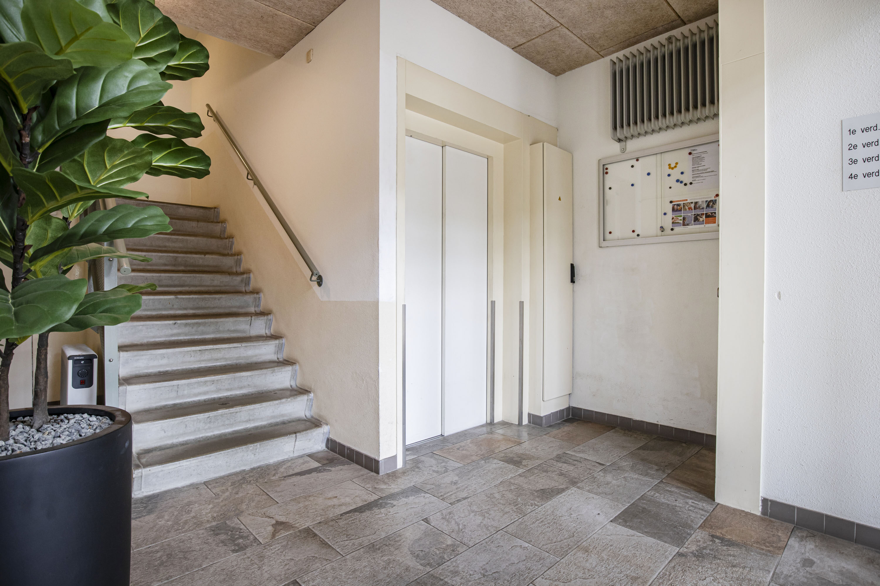 Het appartement is toegankelijk via een centrale entree die is beveiligd met een videofoonsysteem (bedienbaar vanuit de hal en woonkamer). In deze entree bevindt zich het trappenhuis en de liftinstallatie waarmee het appartement te bereiken is.