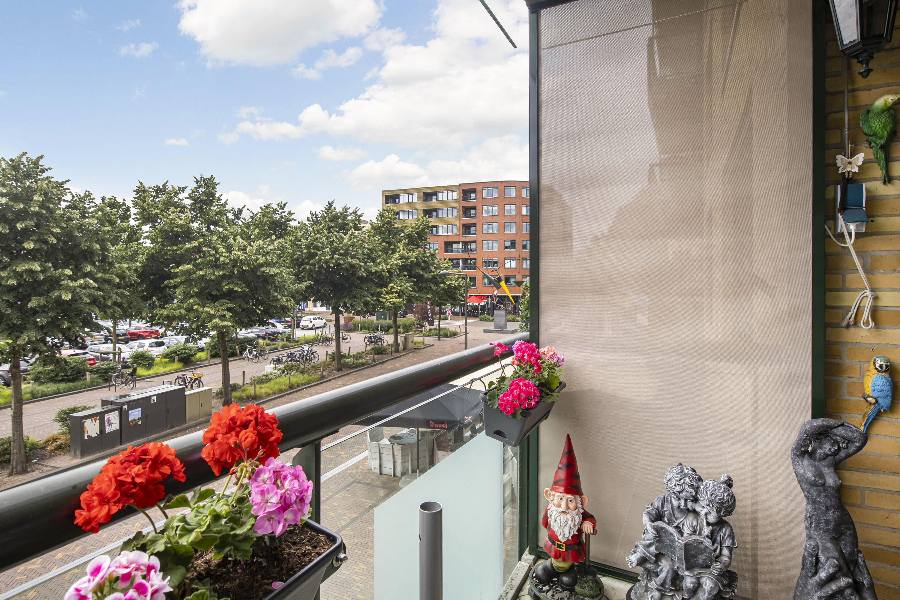 Het overdekte balkon is te bereiken vanuit de woonkamer, een fijne plek om te relaxen na een lange werkdag, uitkijkend op het gezellige centrum van Ede. Op het afgesloten parkeerdek bevindt zich de eigen parkeerplaats en de berging (6.1 m²) welke is voorzien van elektra.