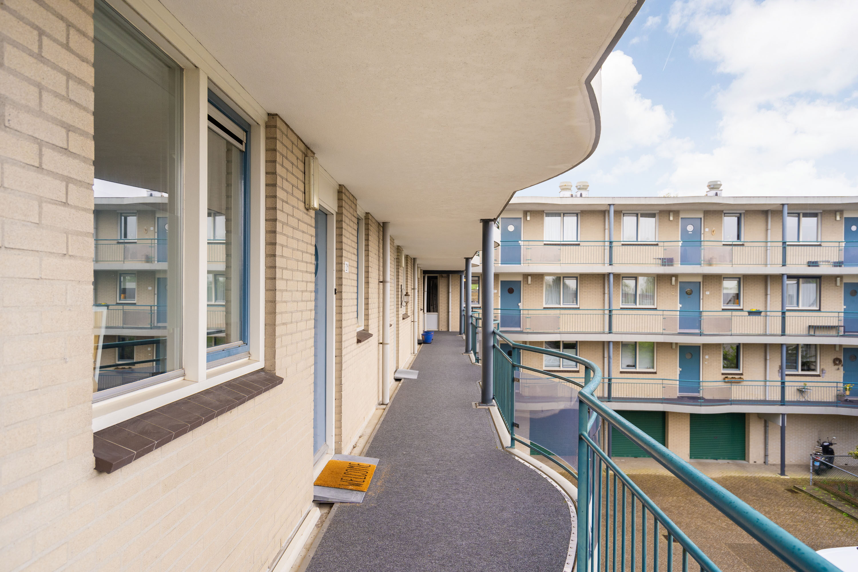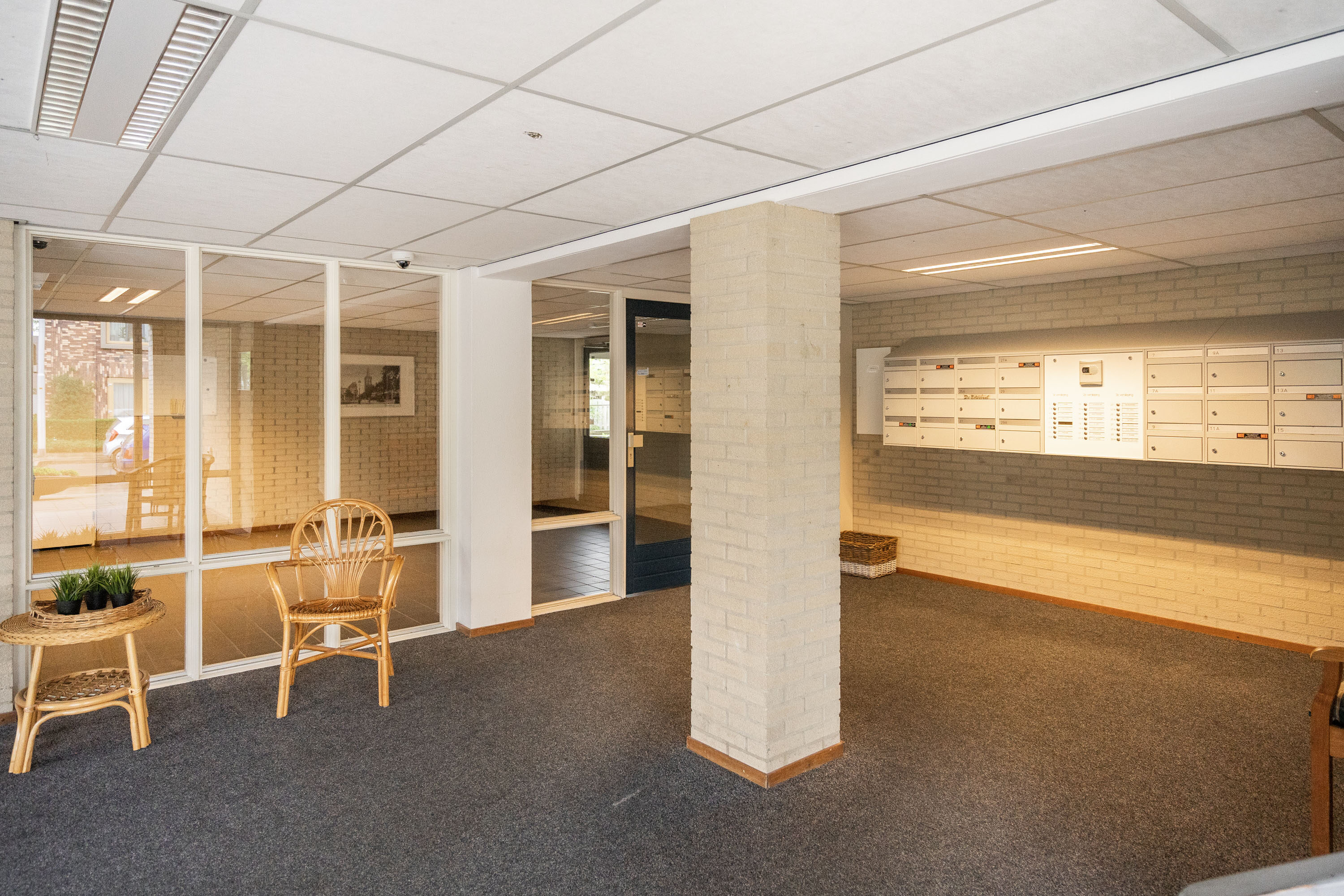 De toegang tot het appartementencomplex verloopt via een centrale entree voorzien van een bellentableau en postvakken. Het gebouw is uitgerust met een lift.