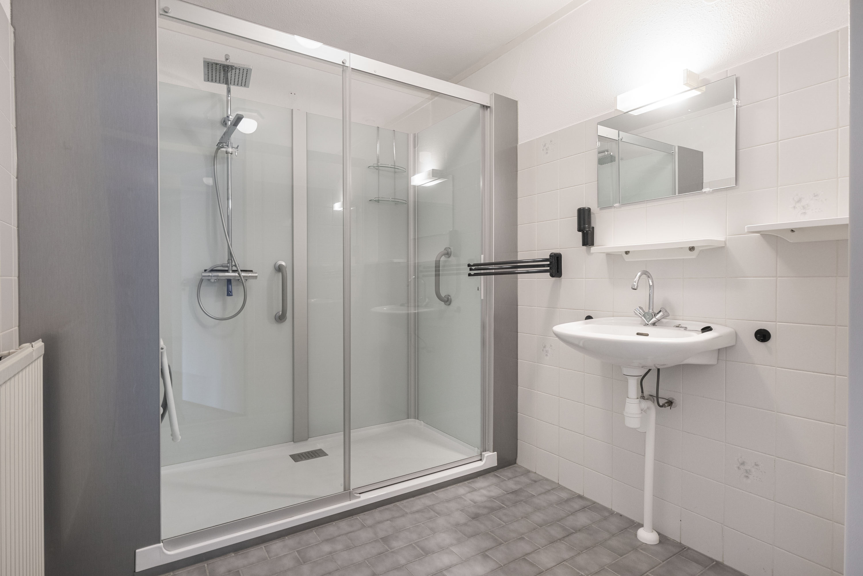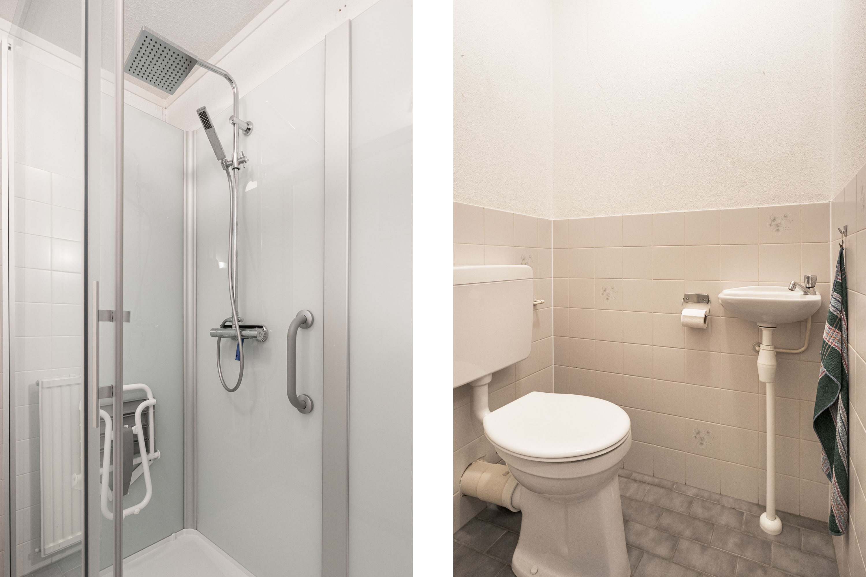 De twee slaapkamers van circa 19 m² en 15 m² zijn beide voorzien van daglicht en natuurlijke ventilatie. De grootste slaapkamer beschikt over een vaste kastenwand. De badkamer is ingericht met een ruime inloopdouche en wastafel, en er is een separaat toilet aanwezig. In de tweede berging bevindt zich de cv-ketel.