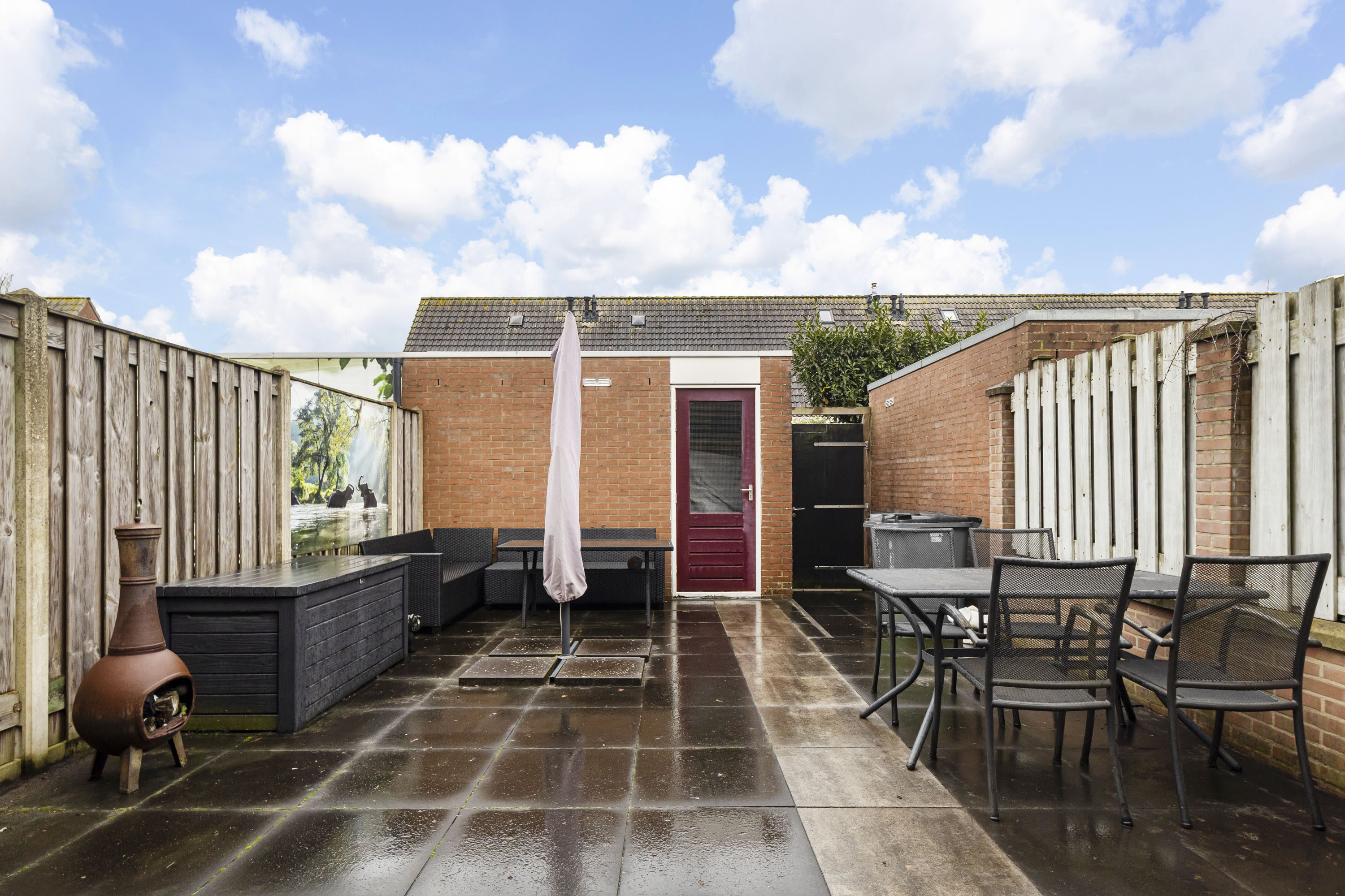 De ruime achtertuin ligt op het zonnige zuiden en is fraai aangelegd. Er is volop ruimte om meerdere zitplekken te creëren. Dankzij het zonnescherm over de volledige breedte van de woning kun je hier zowel van zon als schaduw genieten.