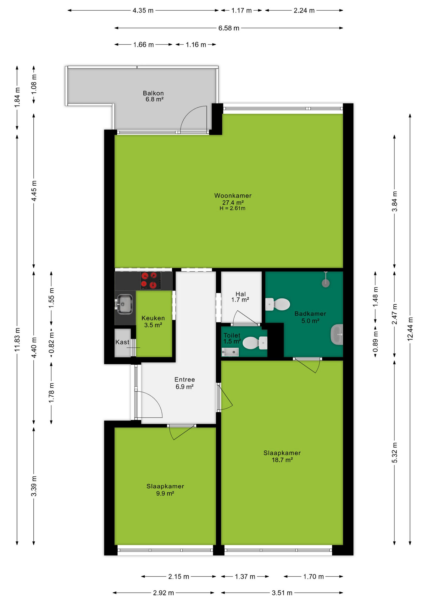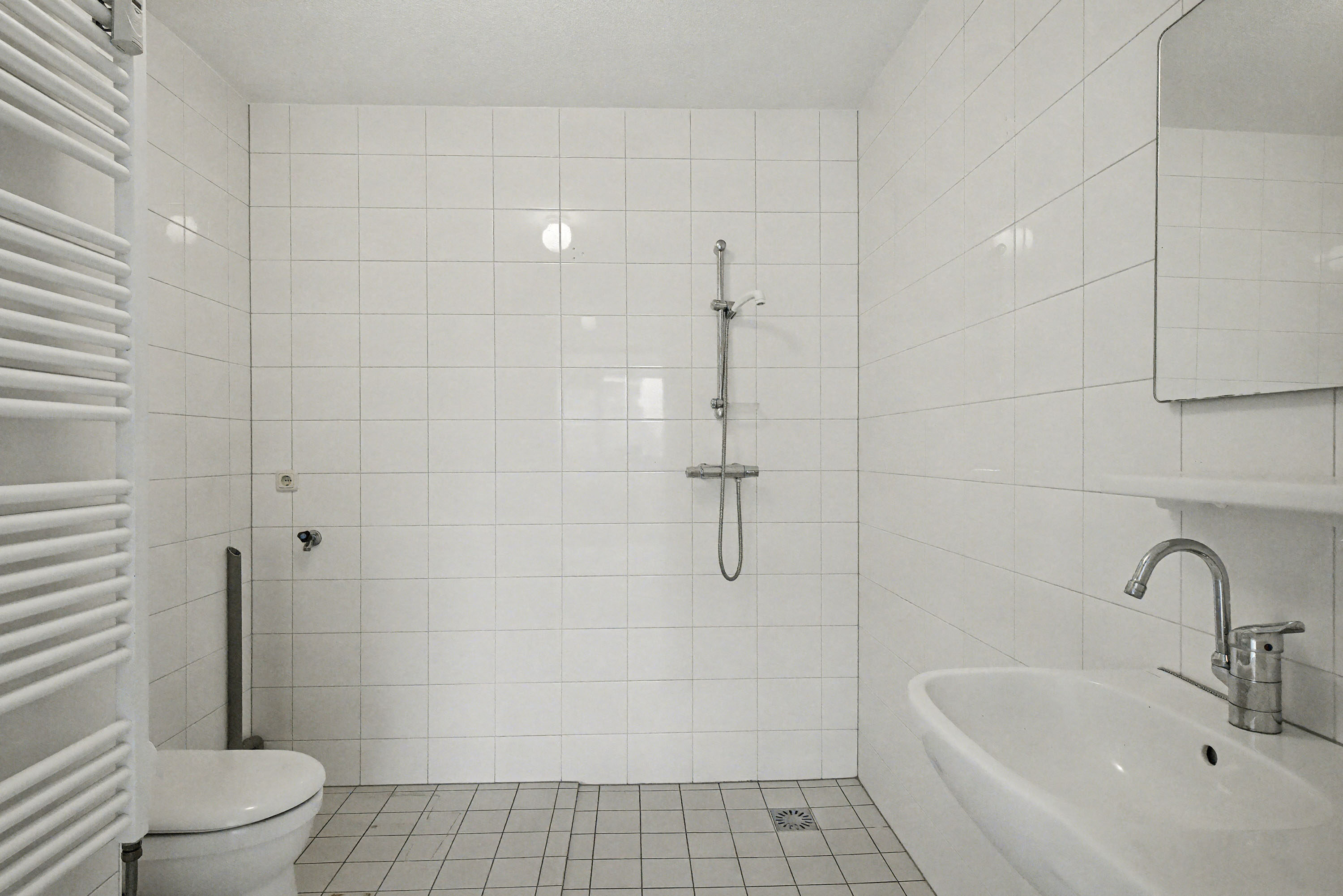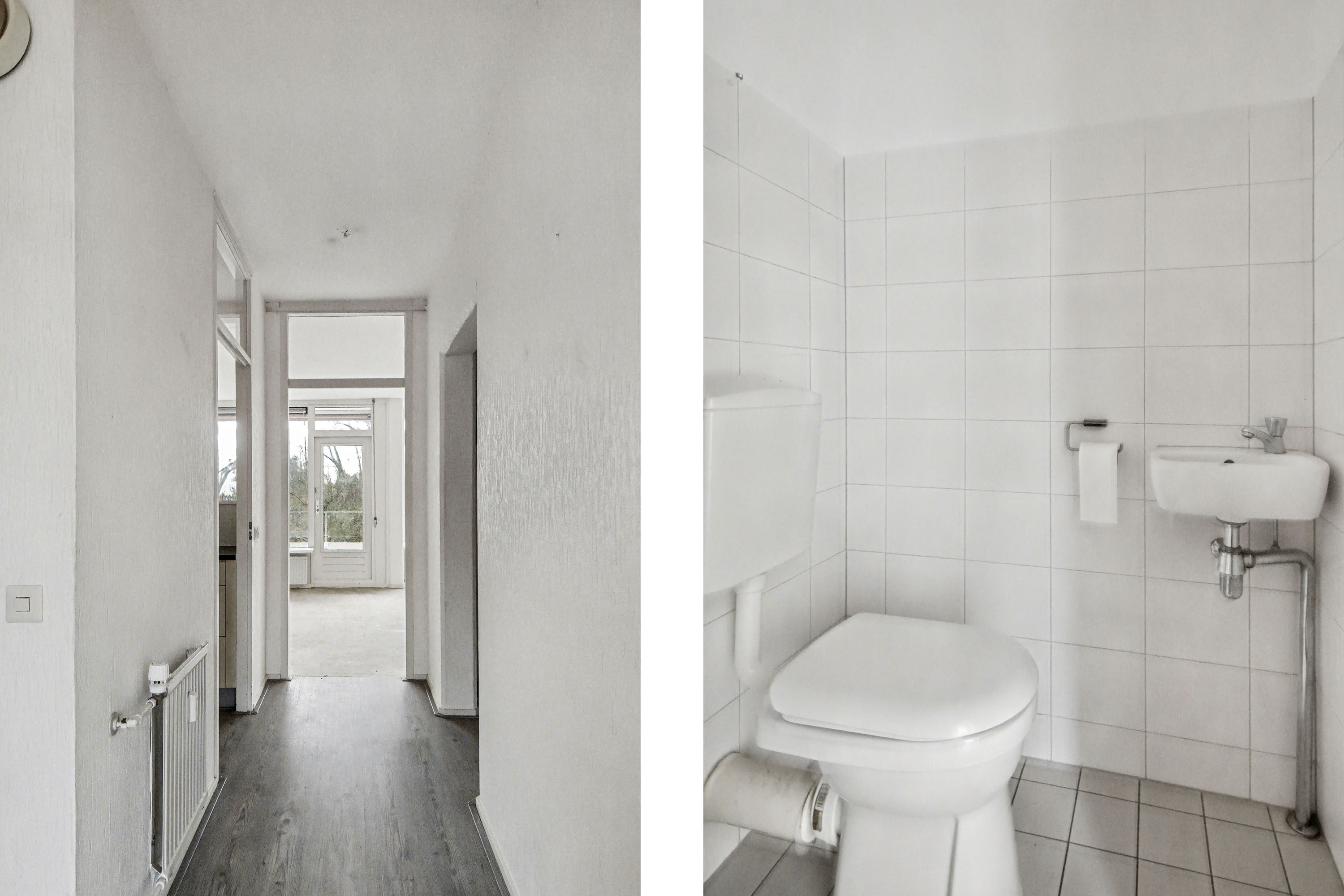 Bij binnenkomst stap je de hal in, die toegang biedt tot slaapkamer, woonkamer en toilet. De afwerking valt direct op: lichte wanden en plafonds. De woonkamer met halfopen keuken is circa 30 m² groot en geniet van veel licht dankzij de grote ramen. Er is volop ruimte voor een zit- en eetgedeelte, en via de woonkamer bereik je het overdekte balkon, waar je heerlijk van de zon kunt genieten. De keuken in L-opstelling is eenvoudig ingericht, beschikt over een inductiekookplaat en beschikt over onder- en bovenkasten. Aan de andere zijde van het appartement tref je een ruime slaapkamer van circa 19m² met een fris wit betegelde badkamer met douchehoek, wastafel en aansluiting was apparatuur. In de hal bevindt zich een separaat toilet. De berging in de onderbouw leent zich uitstekend voor extra opbergruimte.