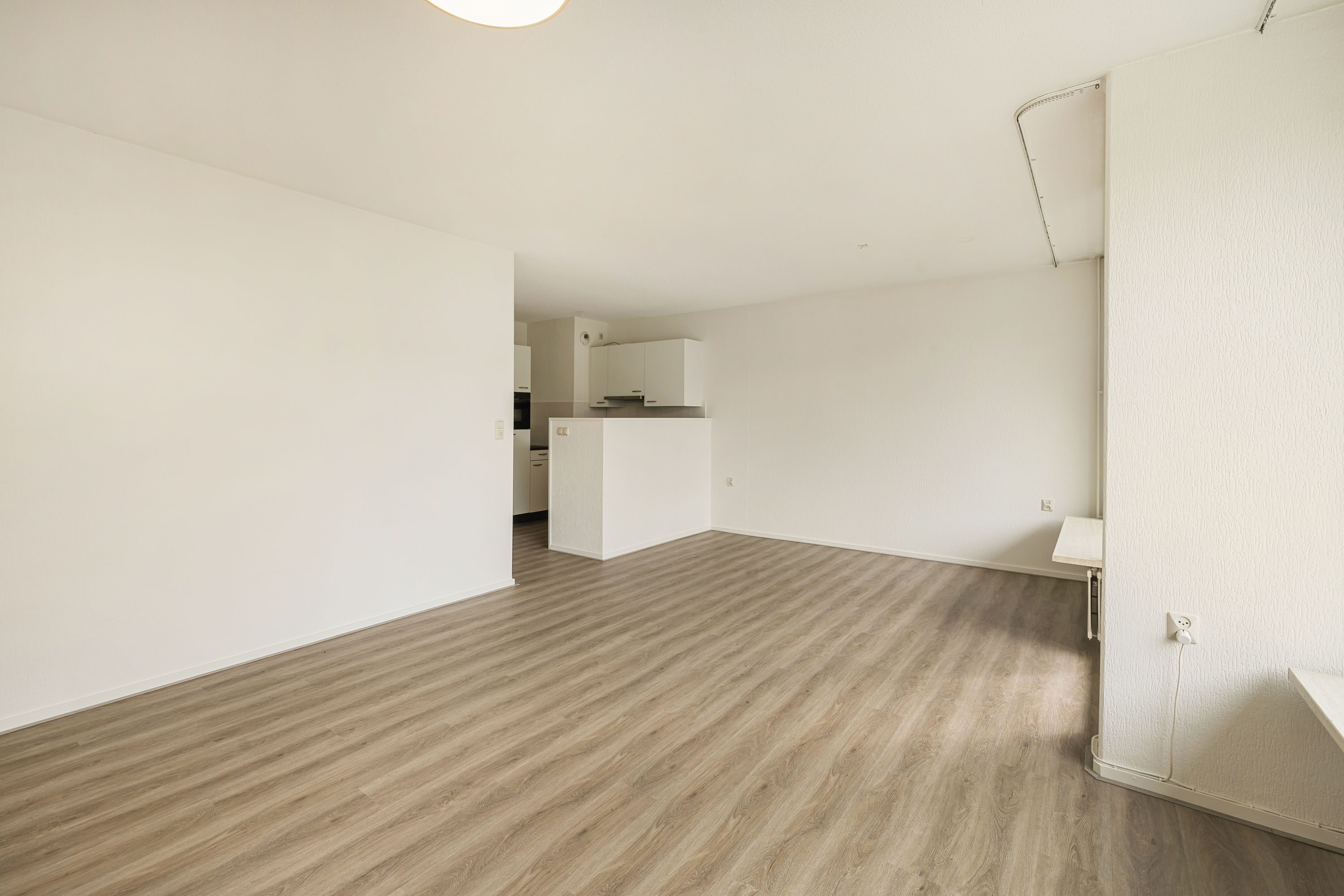 Bij binnenkomst stap je de hal in, die toegang biedt tot de woonkamer en beide slaapkamers. De afwerking valt direct op: lichte wanden en plafonds, en door het hele appartement een nette vloer in een mooie, neutrale tint. De woonkamer met halfopen keuken is circa 27 m² groot en geniet van veel licht dankzij de grote ramen. Er is volop ruimte voor een zit- en eetgedeelte, en via de woonkamer bereik je het overdekte balkon, waar je heerlijk van de middagzon kunt genieten. De keuken in U-opstelling beschikt over onder- en bovenkasten en diverse inbouwapparatuur. Aan de andere zijde ligt een ruime slaapkamer van circa 19 m² met een badkamer van circa 5 m², voorzien van douche en twee wastafels. Deze badkamer is en-suite én tevens via de tussenhal bereikbaar. In de tussenhal bevindt zich ook een separaat toilet. De tweede slaapkamer leent zich uitstekend als werk-, hobby- of logeerkamer.