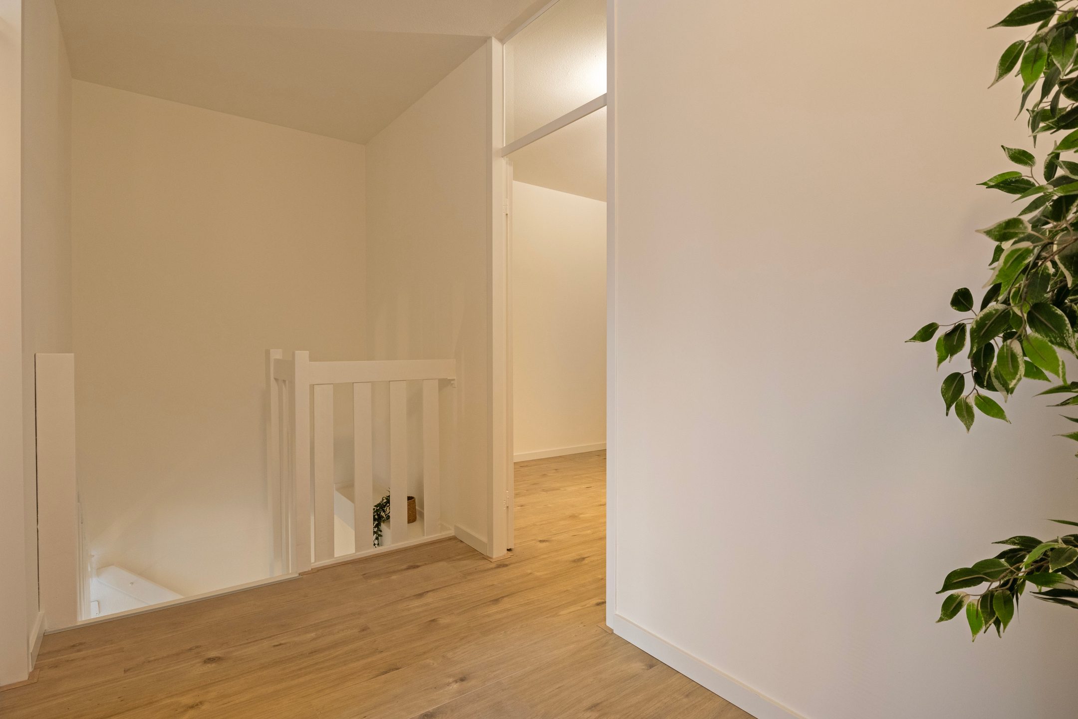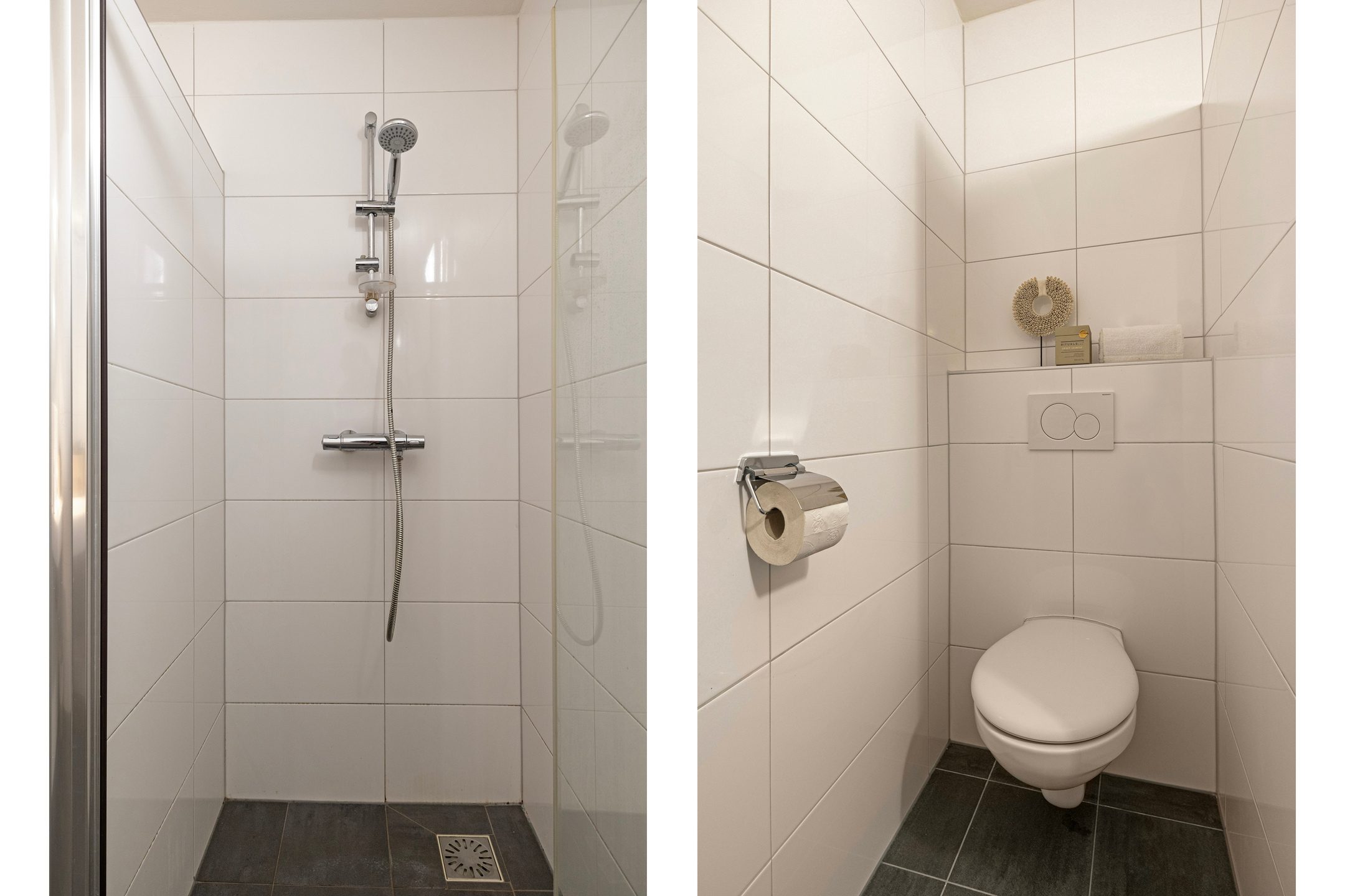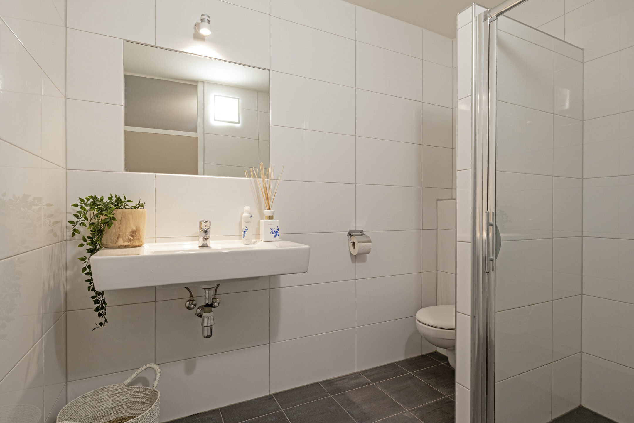 De overloop biedt extra mogelijkheden, zoals ruimte voor een kastenwand of thuiswerkplek. De badkamer is volledig licht betegeld en voorzien van een luxe antracietgrijze tegelvloer. Met een inloopdouche, tweede toilet en wastafel is dit een moderne, praktische ruimte. Separaat is er een wasmachineruimte, ideaal om al je witgoed netjes uit het zicht te plaatsen.