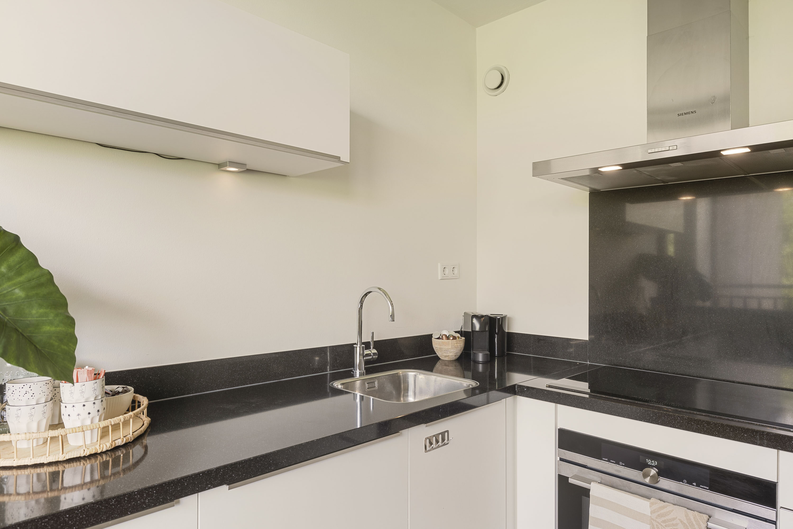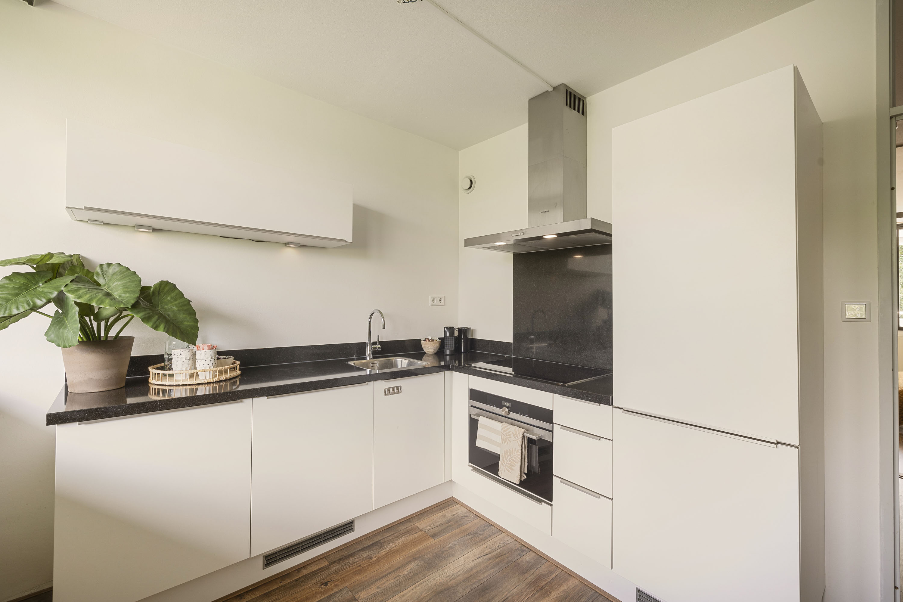 De keuken is voorzien van diverse inbouwapparatuur, waaronder een vaatwasser, koelkast, vriezer, combi-oven en een inductiekookplaat – ideaal voor wie graag kookt.