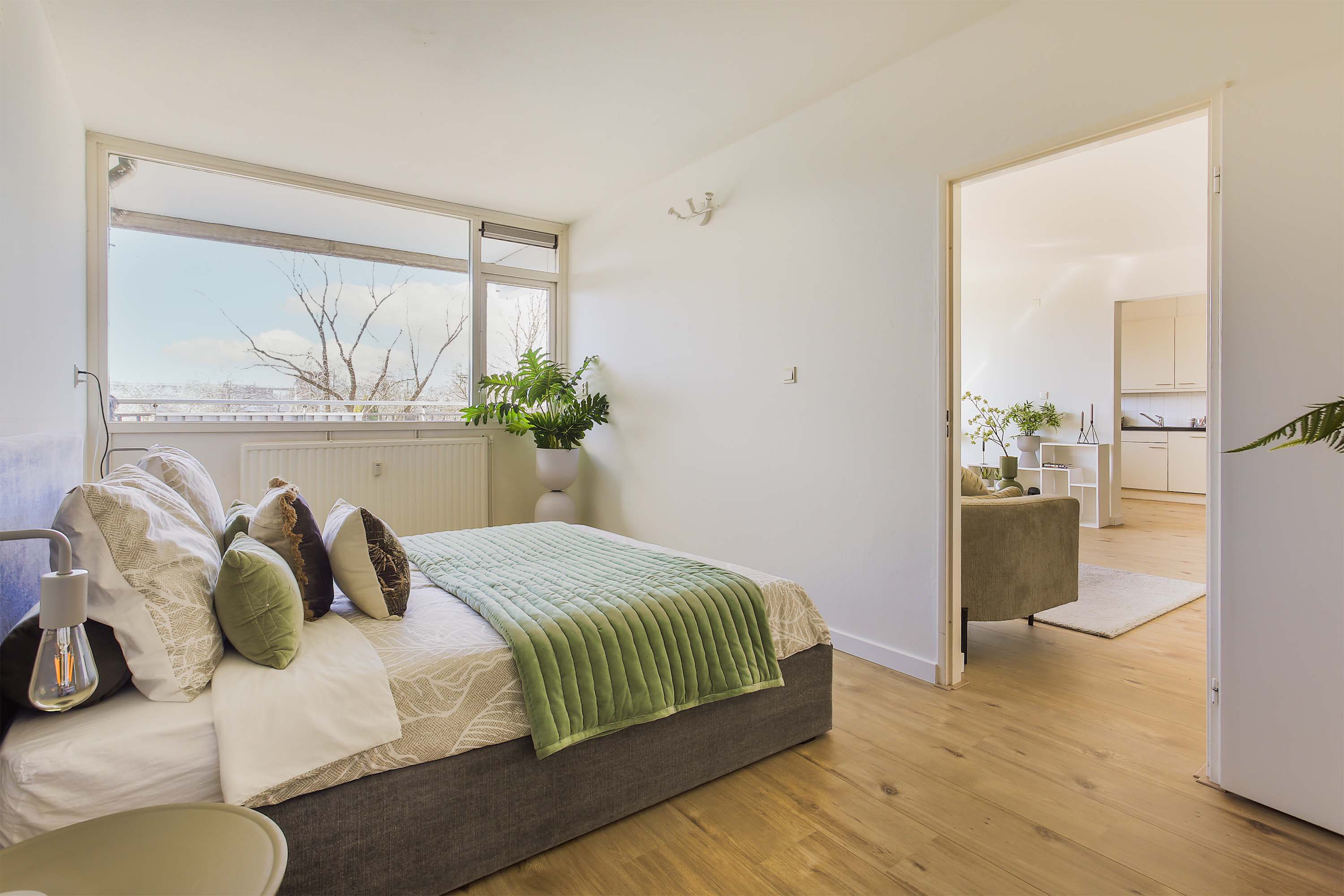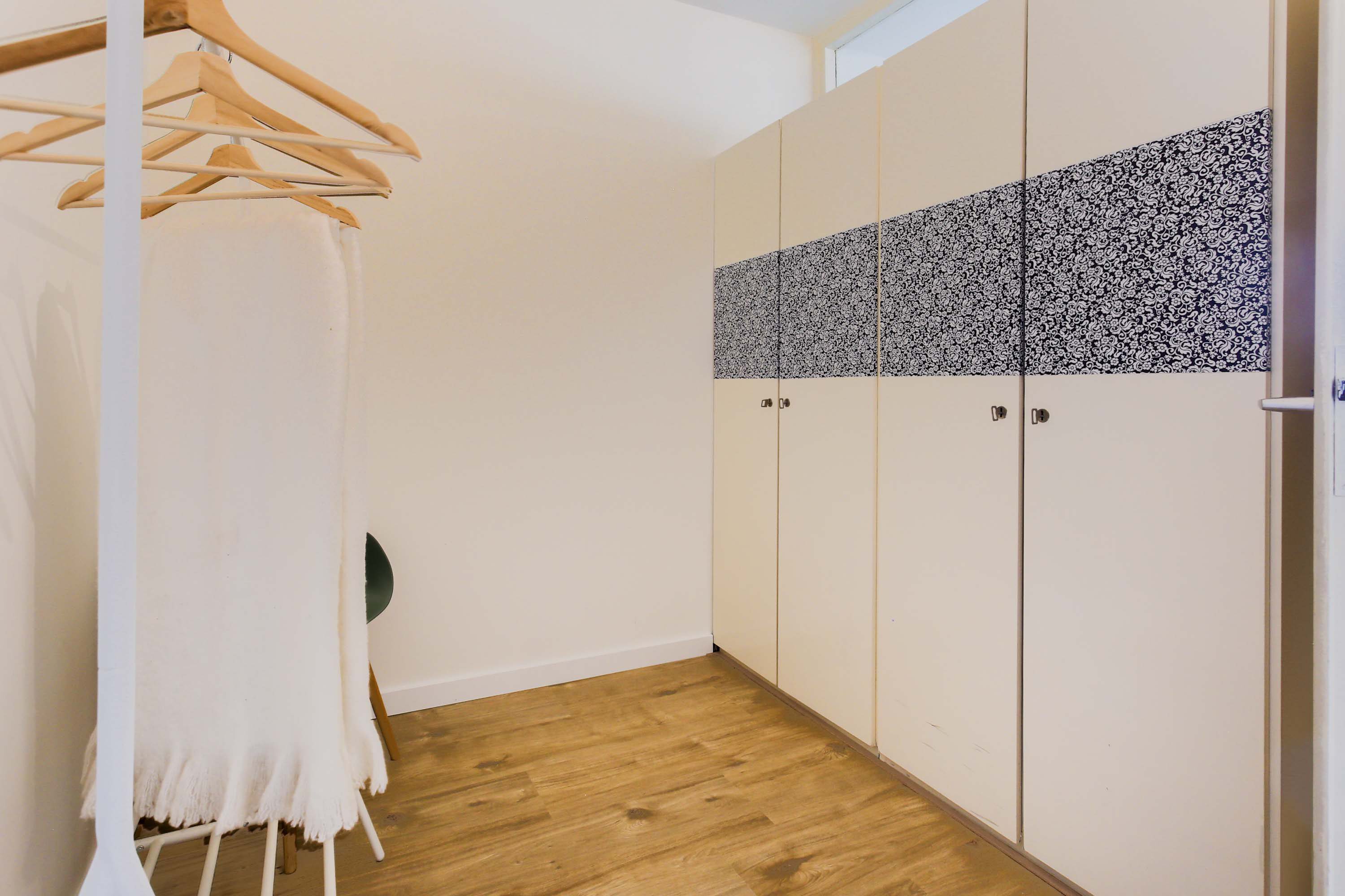 Dit appartement beschikt over een ruime slaapkamer met riante walk-in closet (samen ca. 22m2). De slaapkamer grenst aan de balkonzijde en heeft grote ramen en een mooi uitzicht.
