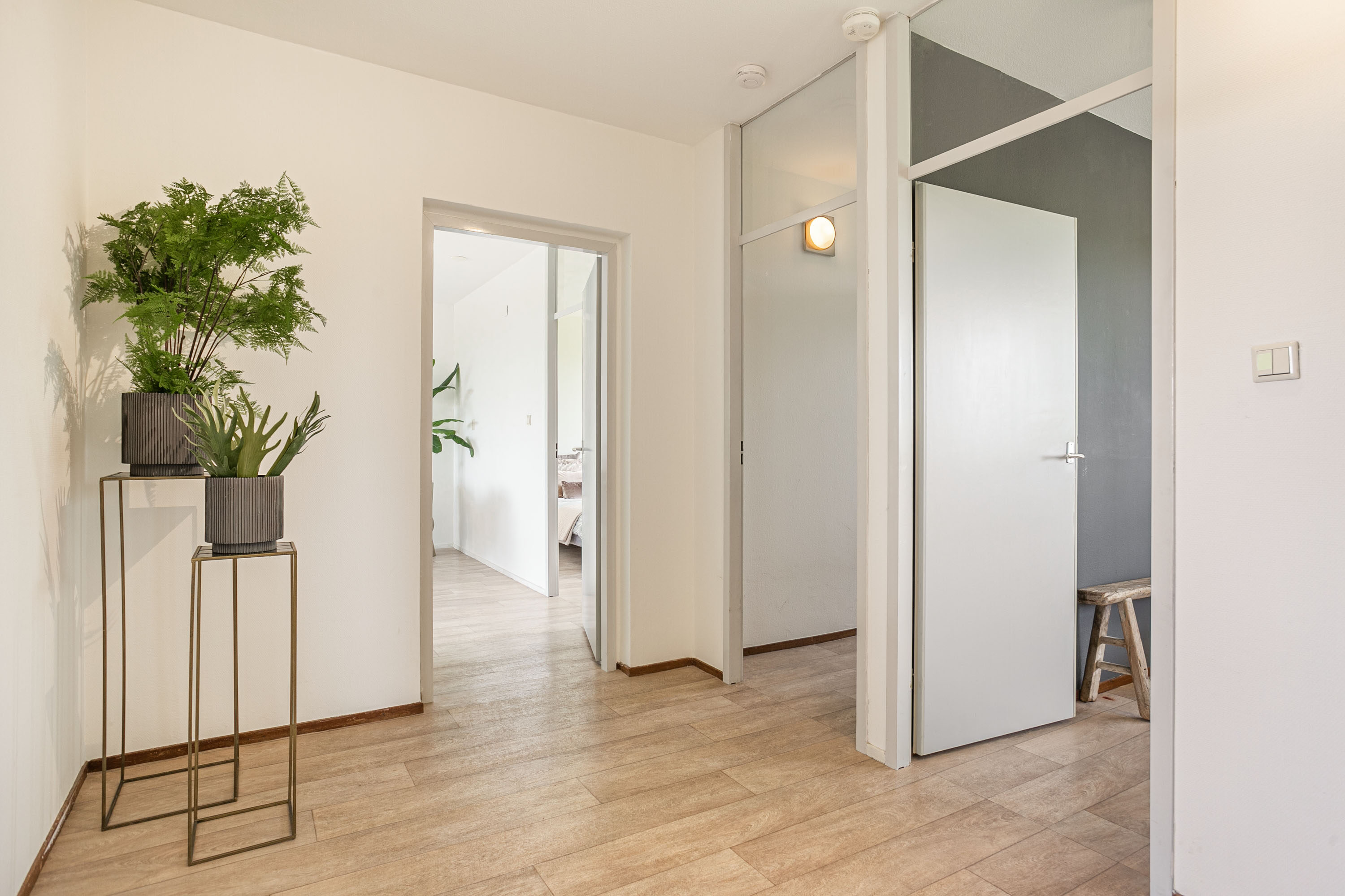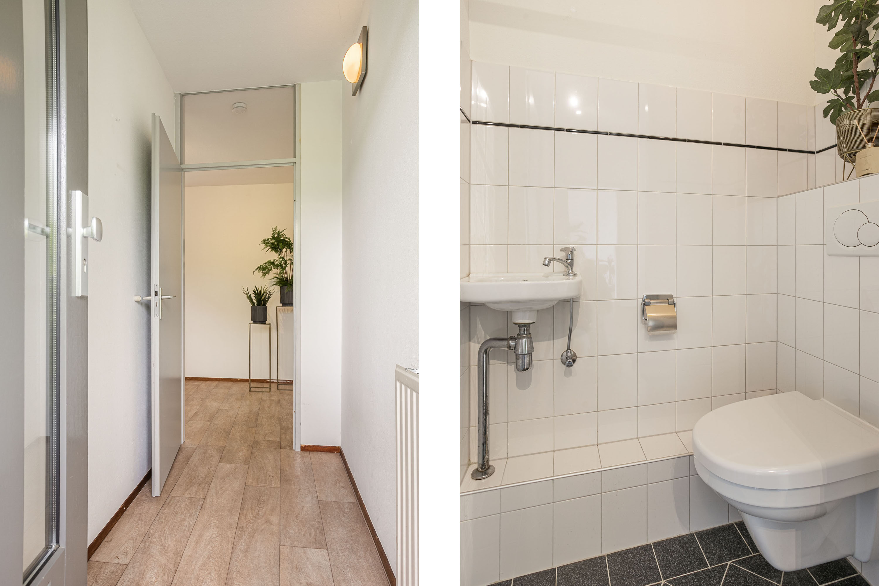 Vanuit de hal zijn de gesloten keuken, badkamer, berging en het separate toilet bereikbaar.