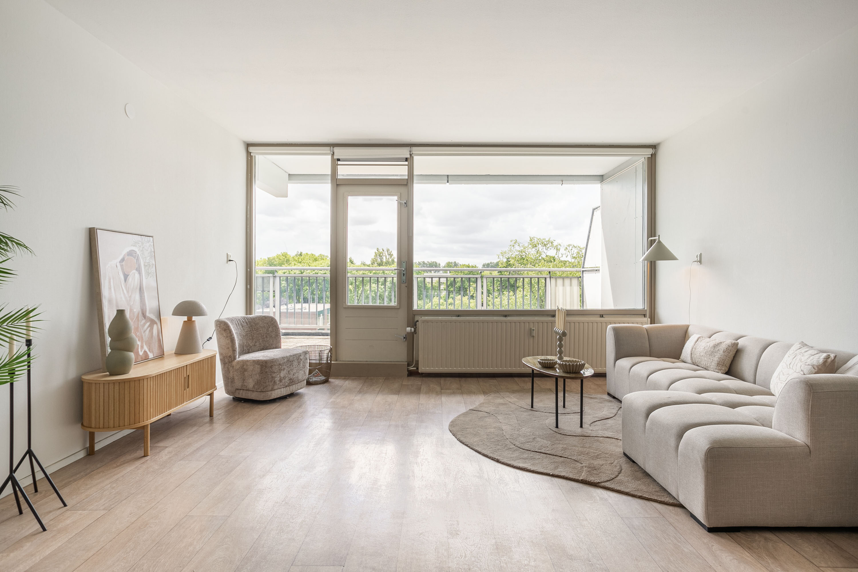 Bij binnenkomst kom je in de entree met een doorloop naar de hal, die toegang biedt tot meerdere vertrekken. De woonkamer van 29,3 m² is ruim en licht, dankzij de grote raampartijen die zorgen voor een prettige natuurlijke lichtinval. Vanuit de woonkamer heb je direct toegang tot het royale balkon van 25 m², gelegen op het zuidwesten. Hier kun je in alle rust genieten van het prachtige uitzicht en ontspannen in de zon.