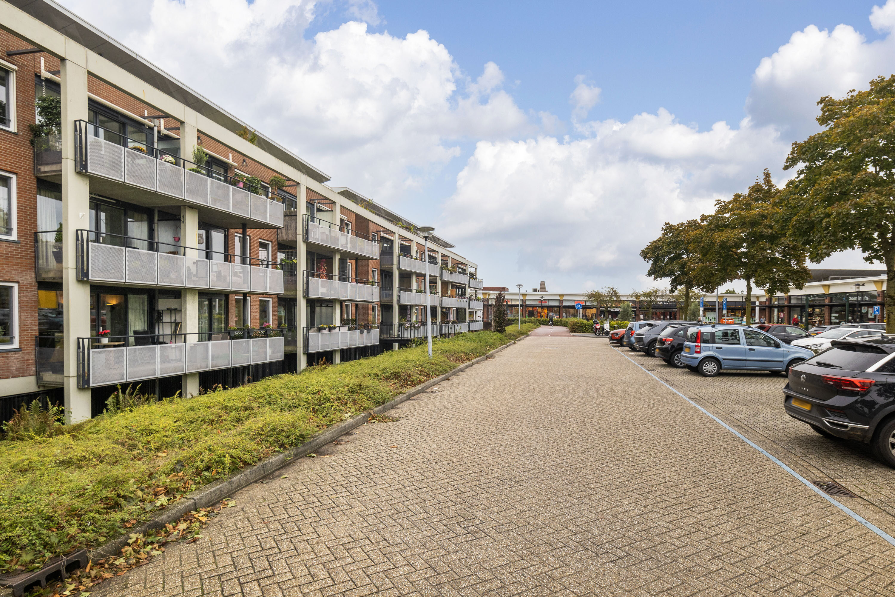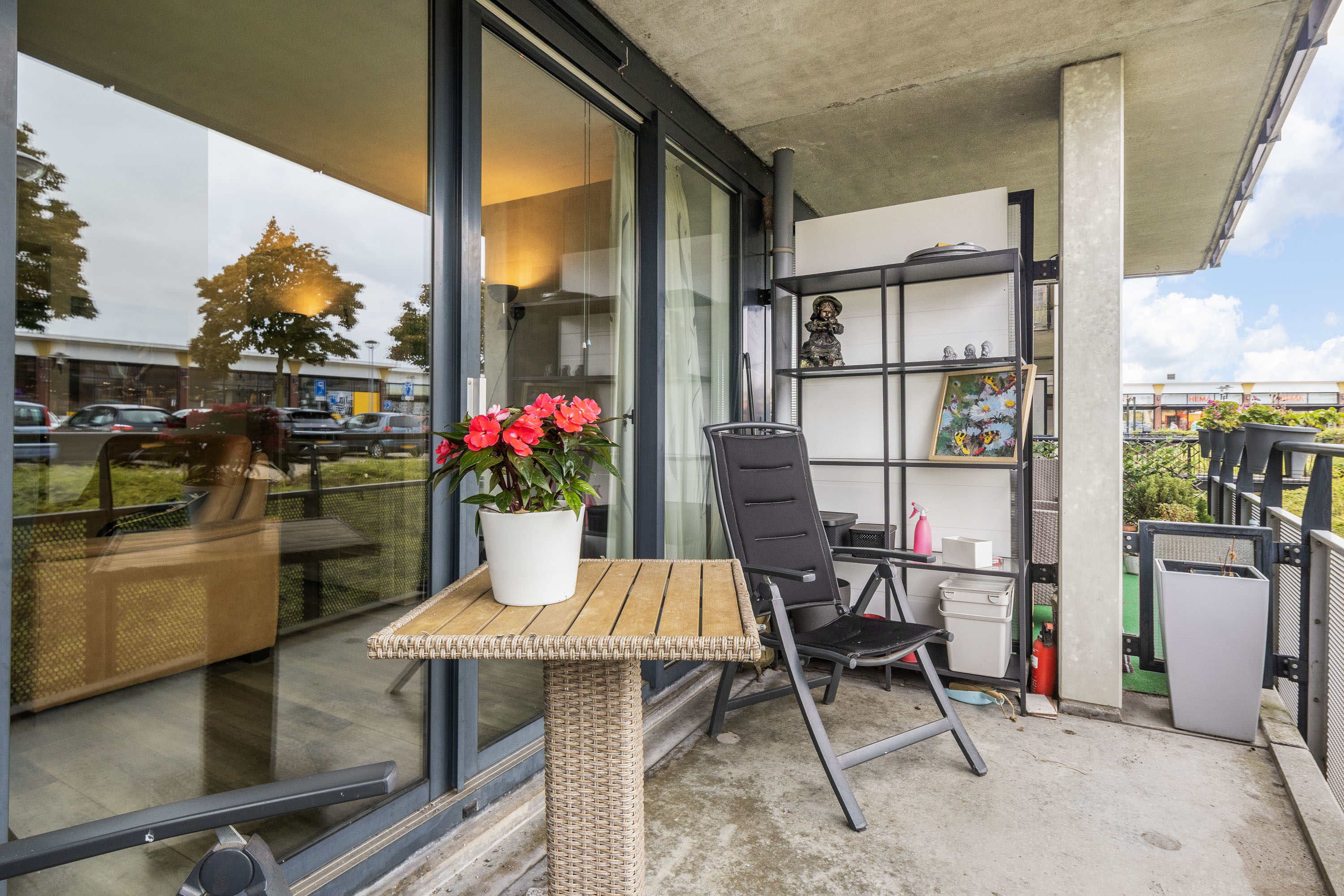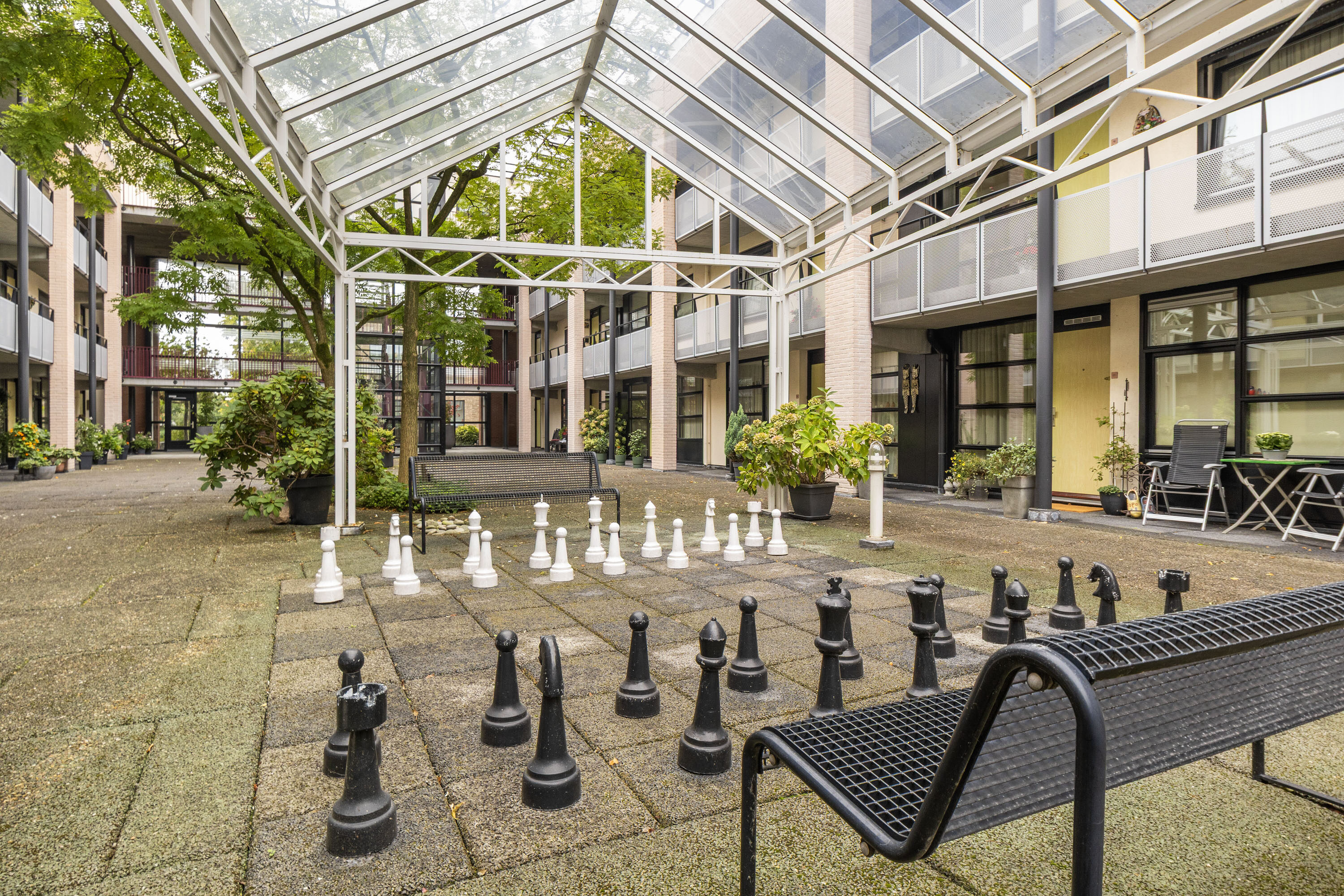 Het balkon op het oosten grenst direct aan de woonkamer en biedt uitzicht over het winkelcentrum. Hier kun je ’s ochtends genieten van de zon en de levendige omgeving. Daarnaast is er een gezellige binnenplaats bij de voordeur.