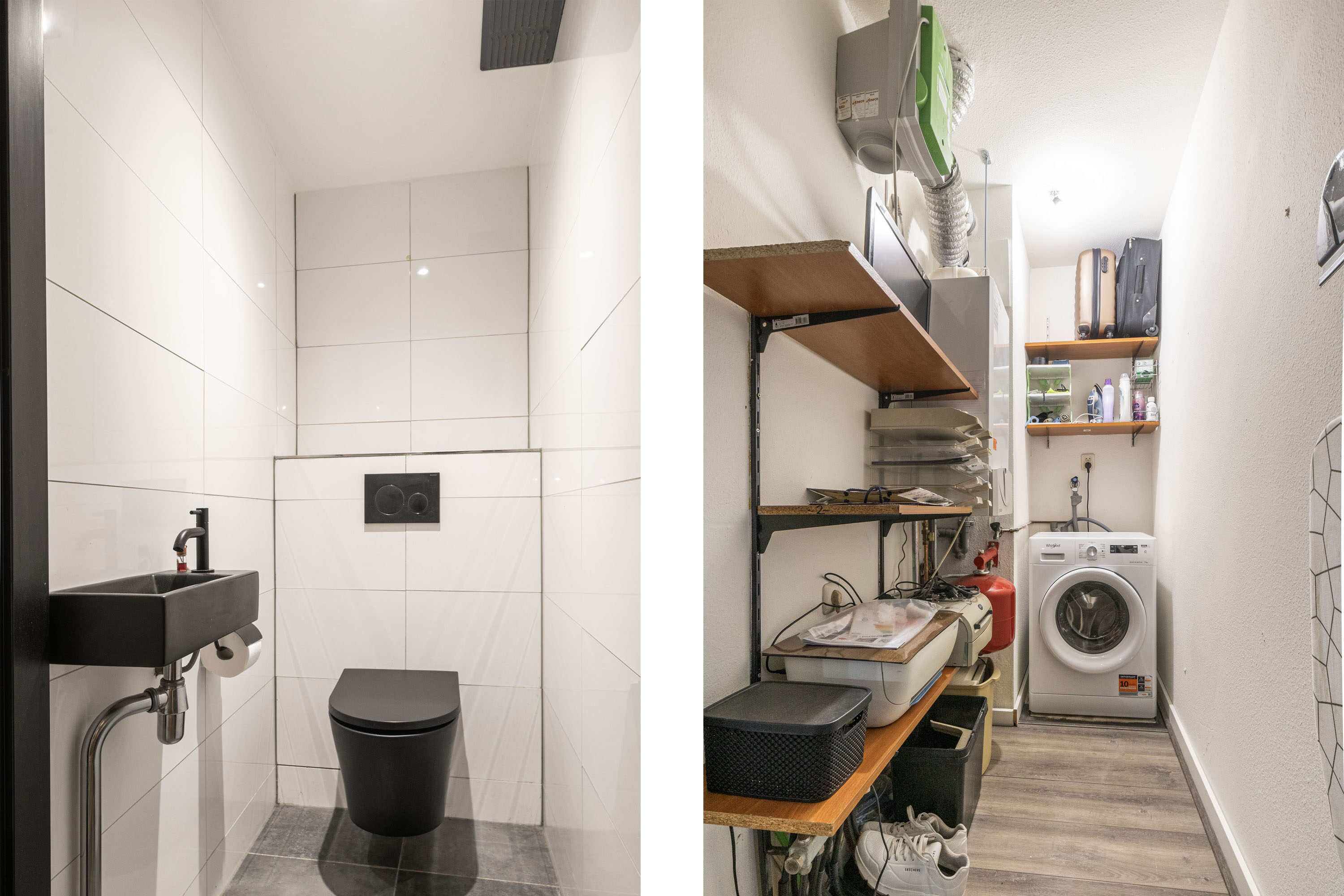 Verder vind je in de hal de berging met wasmachineaansluiting, cv-ketel en meterkast, evenals een apart toilet met fonteintje.