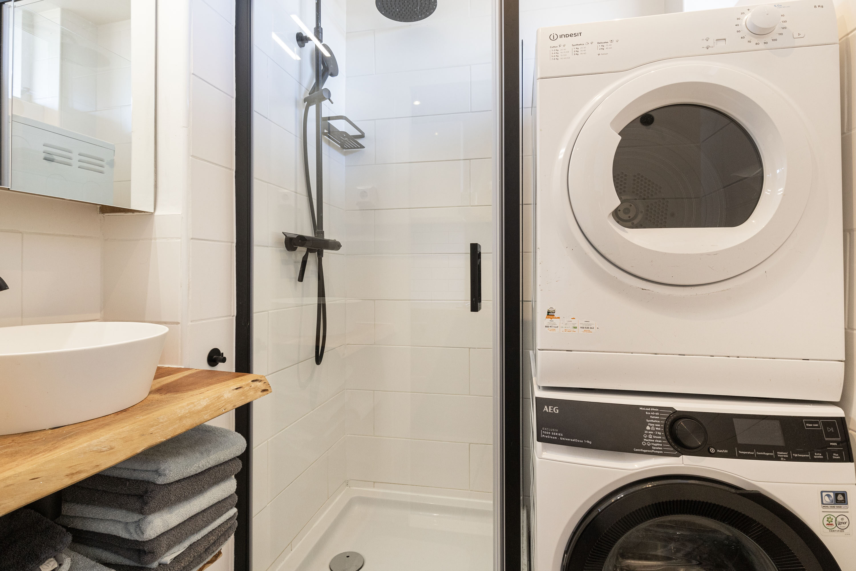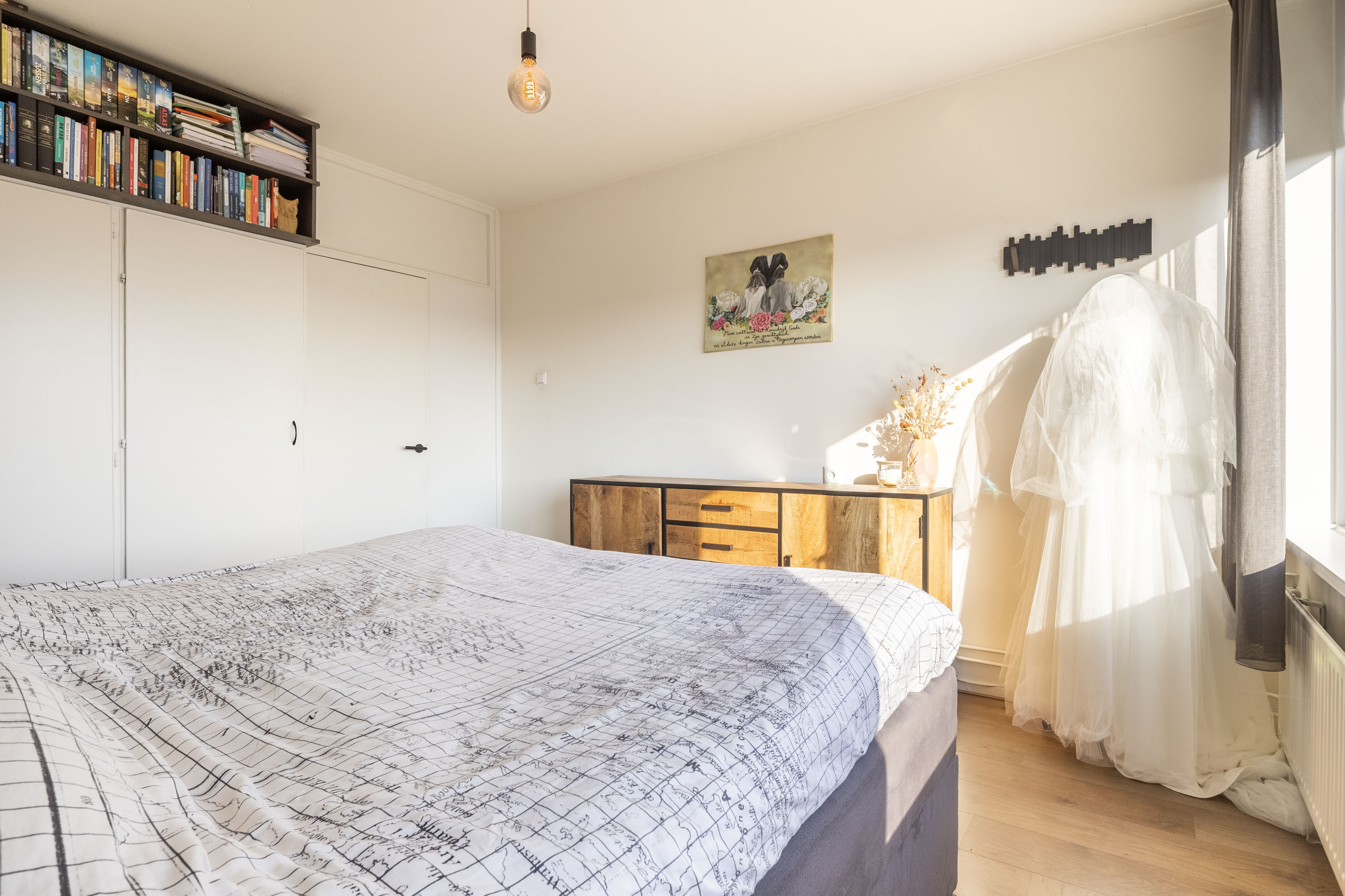De entree is uitgerust met een meterkast, een bergruimte en een apart toilet. Vanuit de entree heb je toegang tot de eerste slaapkamer, de woonkamer en de keuken. Beide slaapkamers profiteren van veel lichtinval vanuit het oosten, en de eerste slaapkamer beschikt over een balkon. De woonkamer is voorzien van een bruine laminaatvloer en ontvangt licht vanuit het westen. Daarnaast biedt de woonkamer toegang tot de tweede slaapkamer. De keuken, die in 2020 is vernieuwd, is uitgerust met een gasfornuis met afzuigkap, een oven, een vaatwasser en een aparte koelkast. Tevens heeft de keuken een balkon aan de westzijde. Vanuit de keuken bereik je de badkamer, die ook in 2021 is gerenoveerd en is voorzien van een douche, een wastafel en een wasmachineaansluiting.