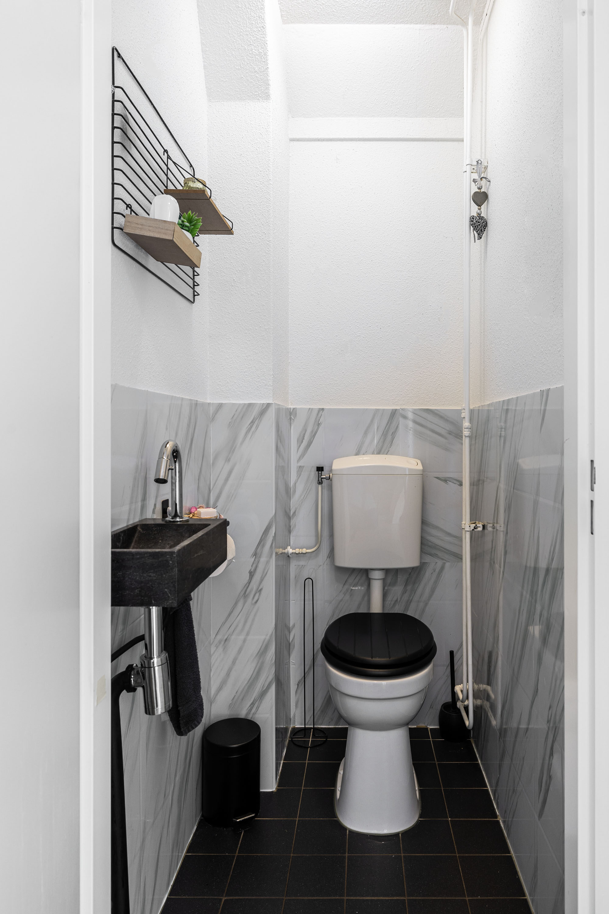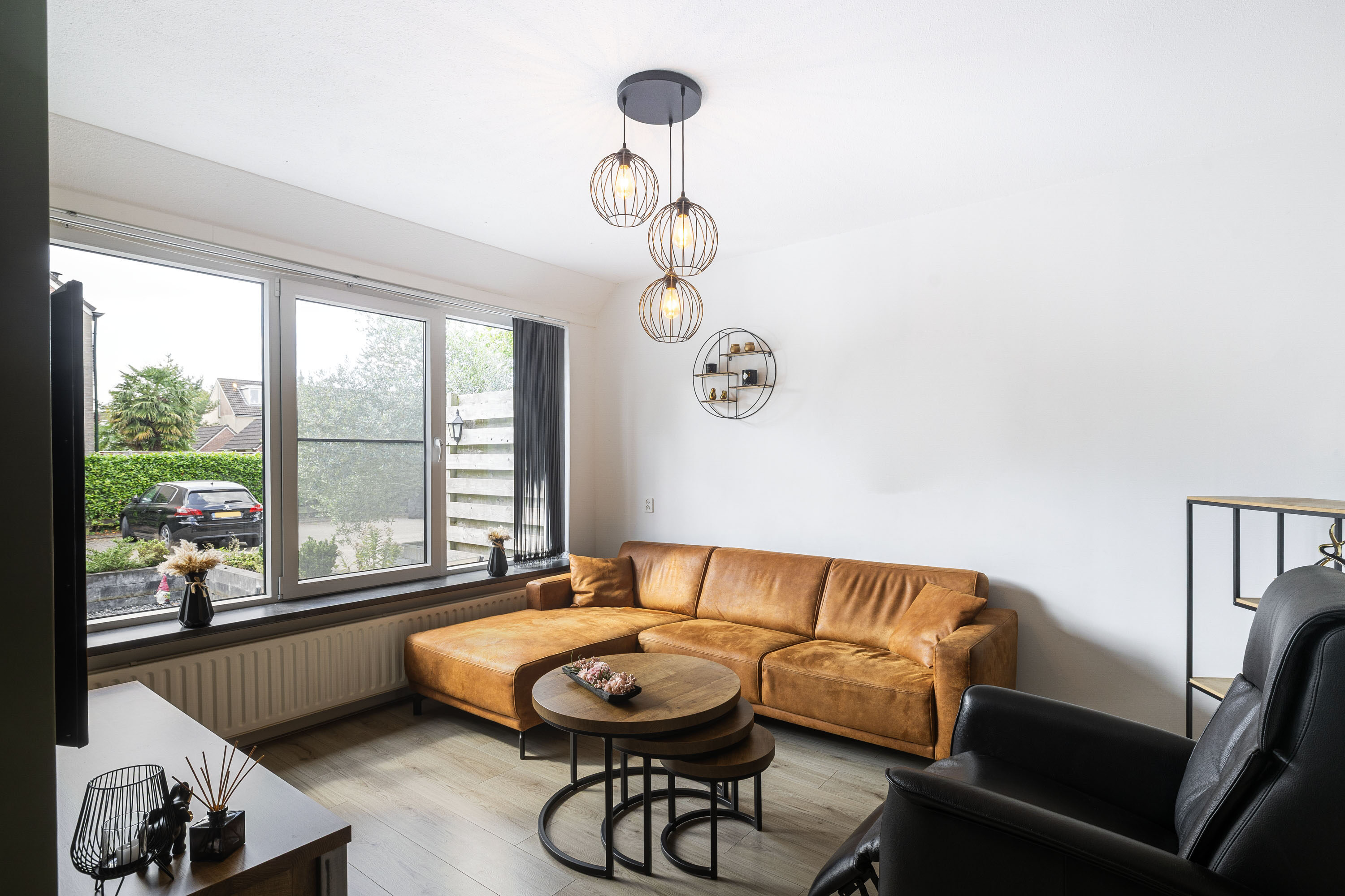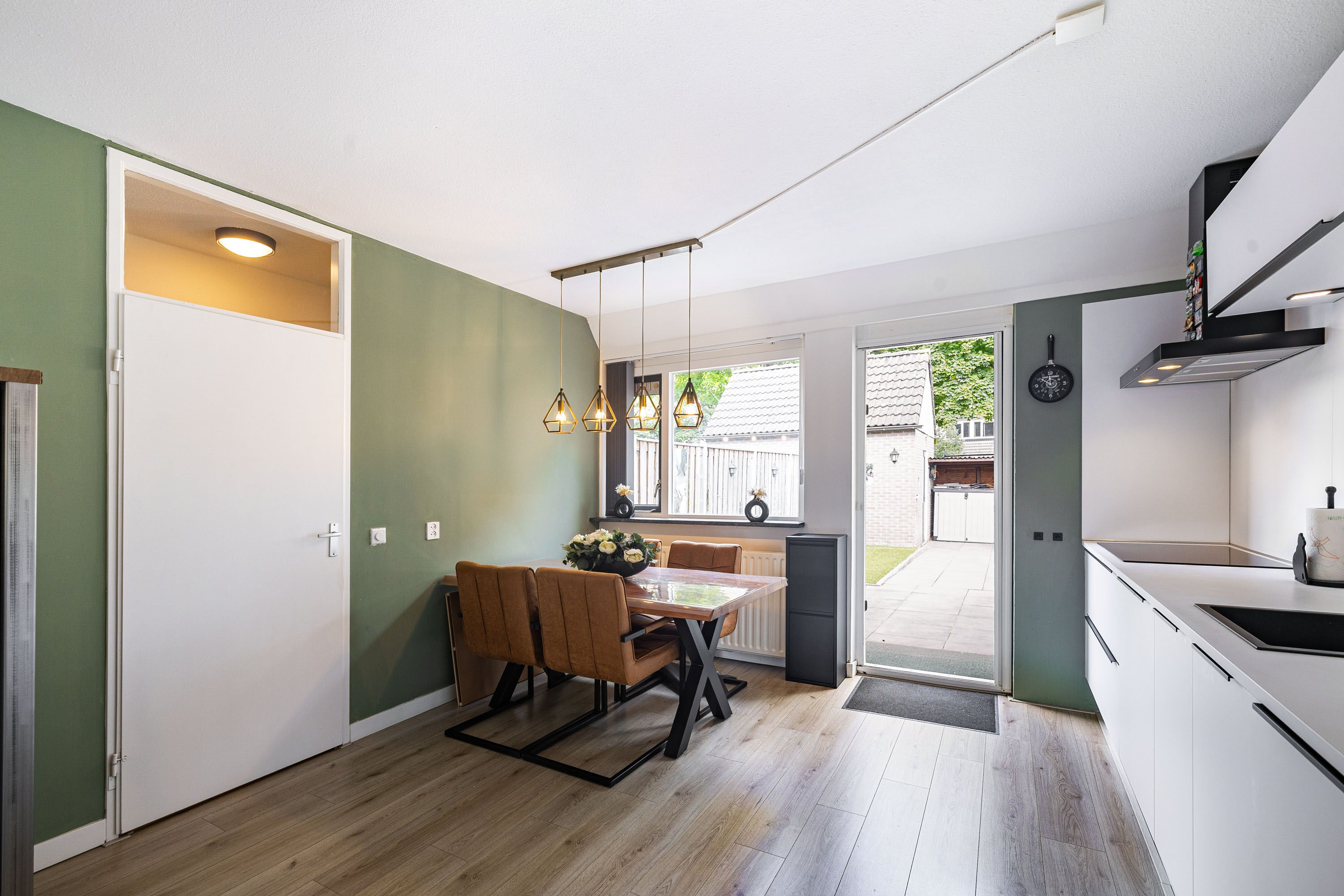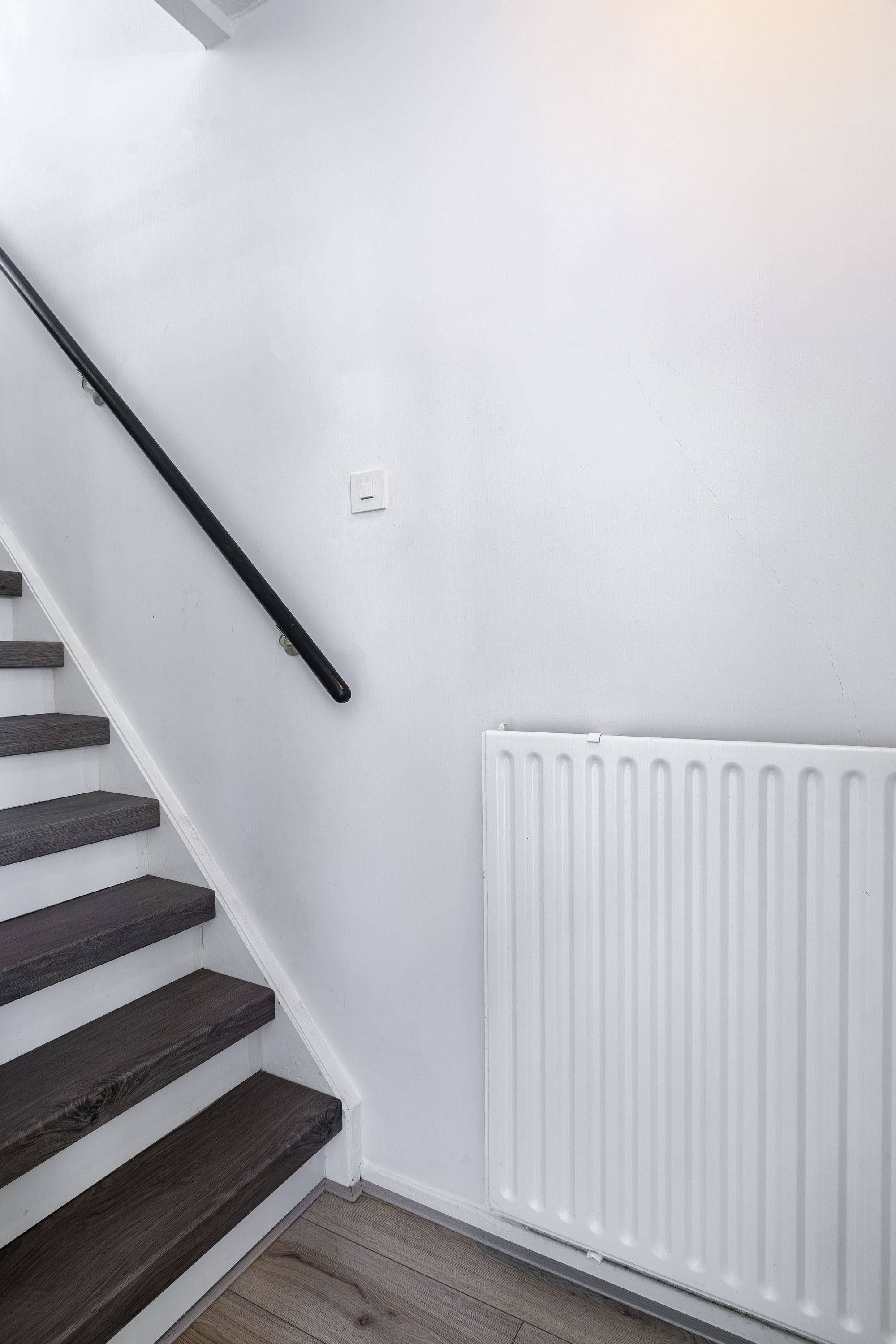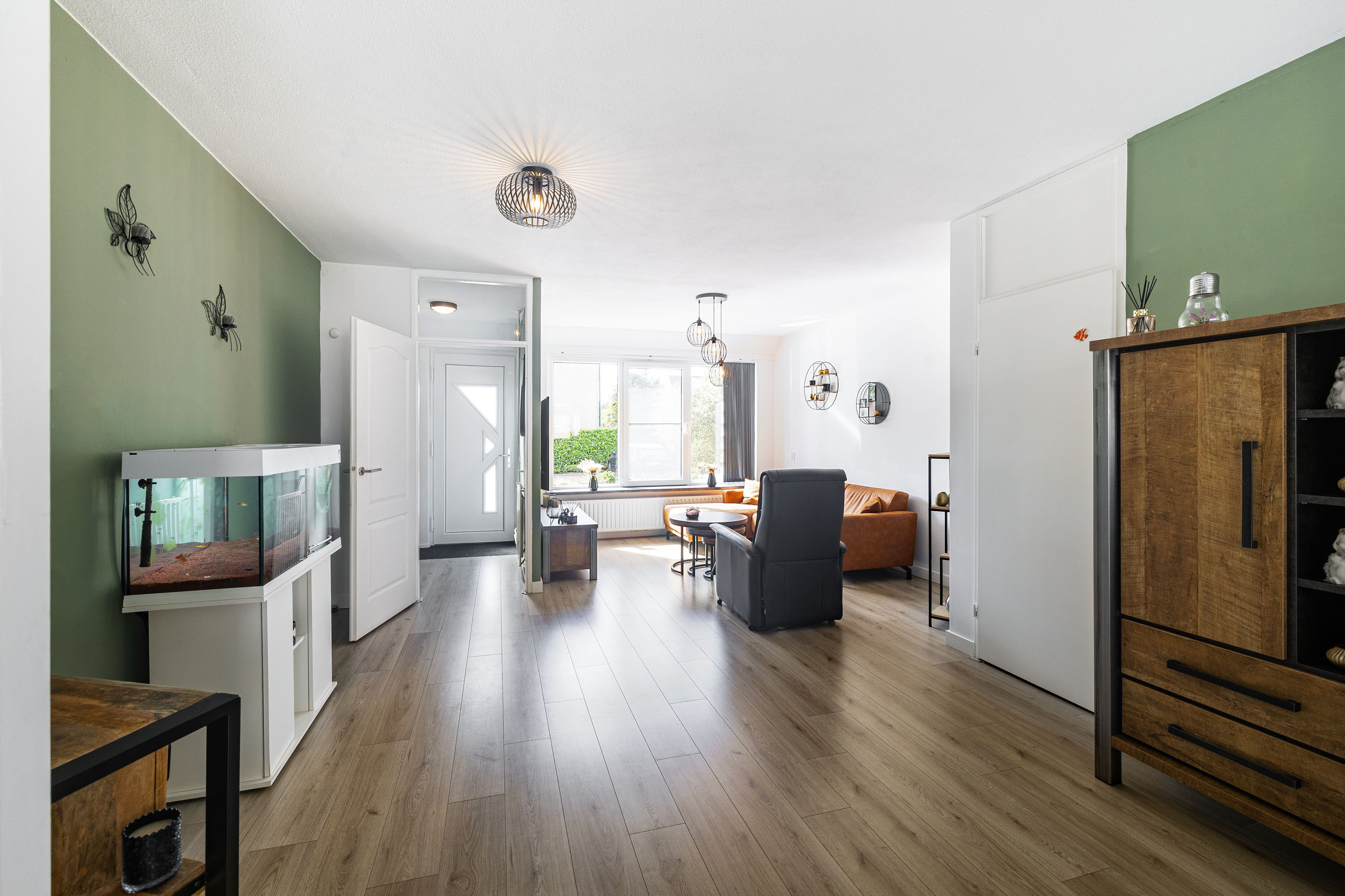 Hal/entree met meterkast en toegang tot de woonkamer. De woonkamer is licht en ruim dankzij de grote raampartijen en beschikt over een praktische trapkast. De moderne keuken (2022) is eigentijds ingericht en biedt alle ruimte en comfort. Via de keuken bereik je de tussenhal met trapopgang en het toilet met fonteintje. De keuken is uitgerust met onder andere een koelkast met vriesvak, combi oven, vaatwasser, inductie kookplaat en afzuigkap.