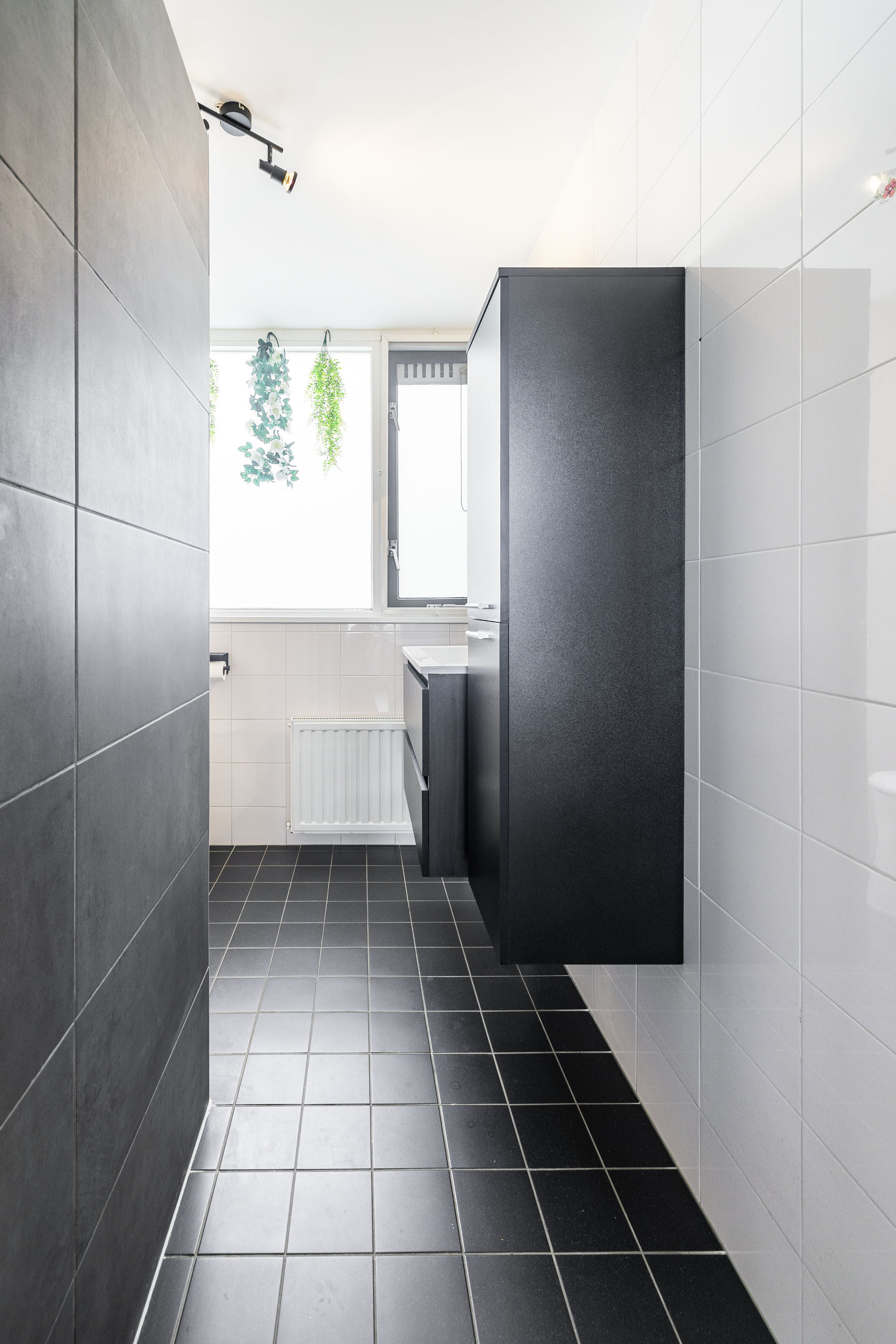 De overloop geeft toegang tot drie slaapkamers en de badkamer. De badkamer is neutraal uitgevoerd en voorzien van: