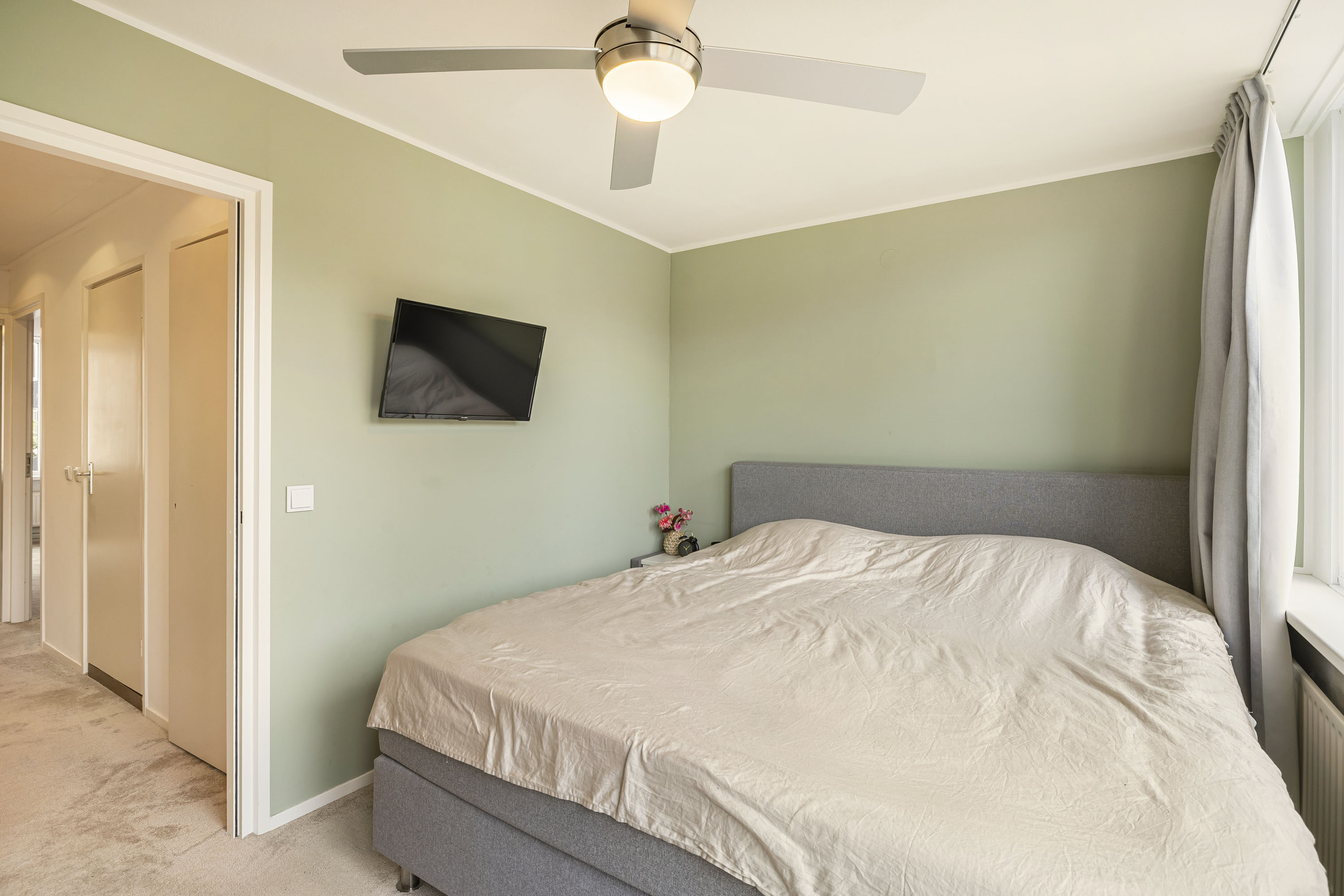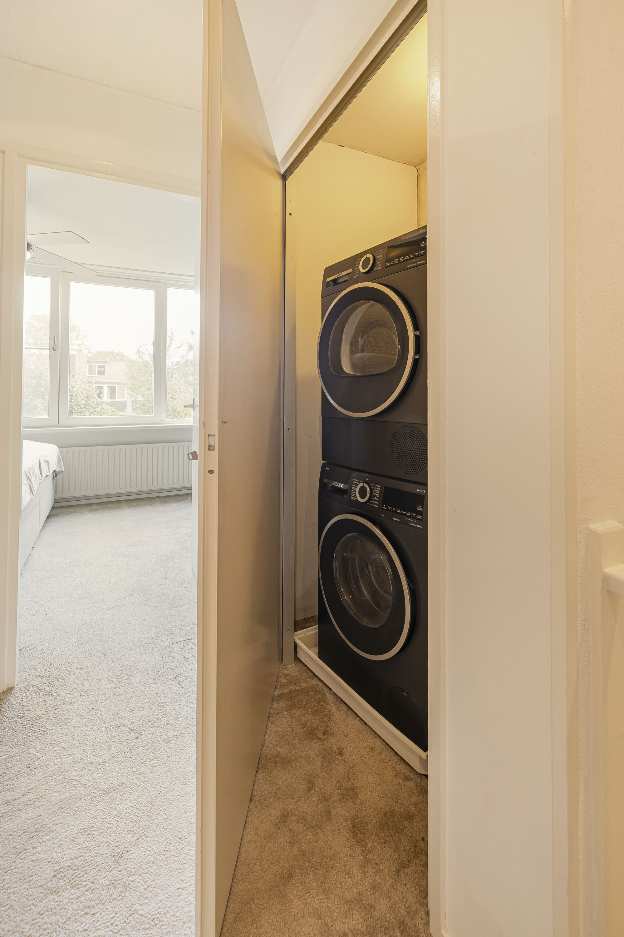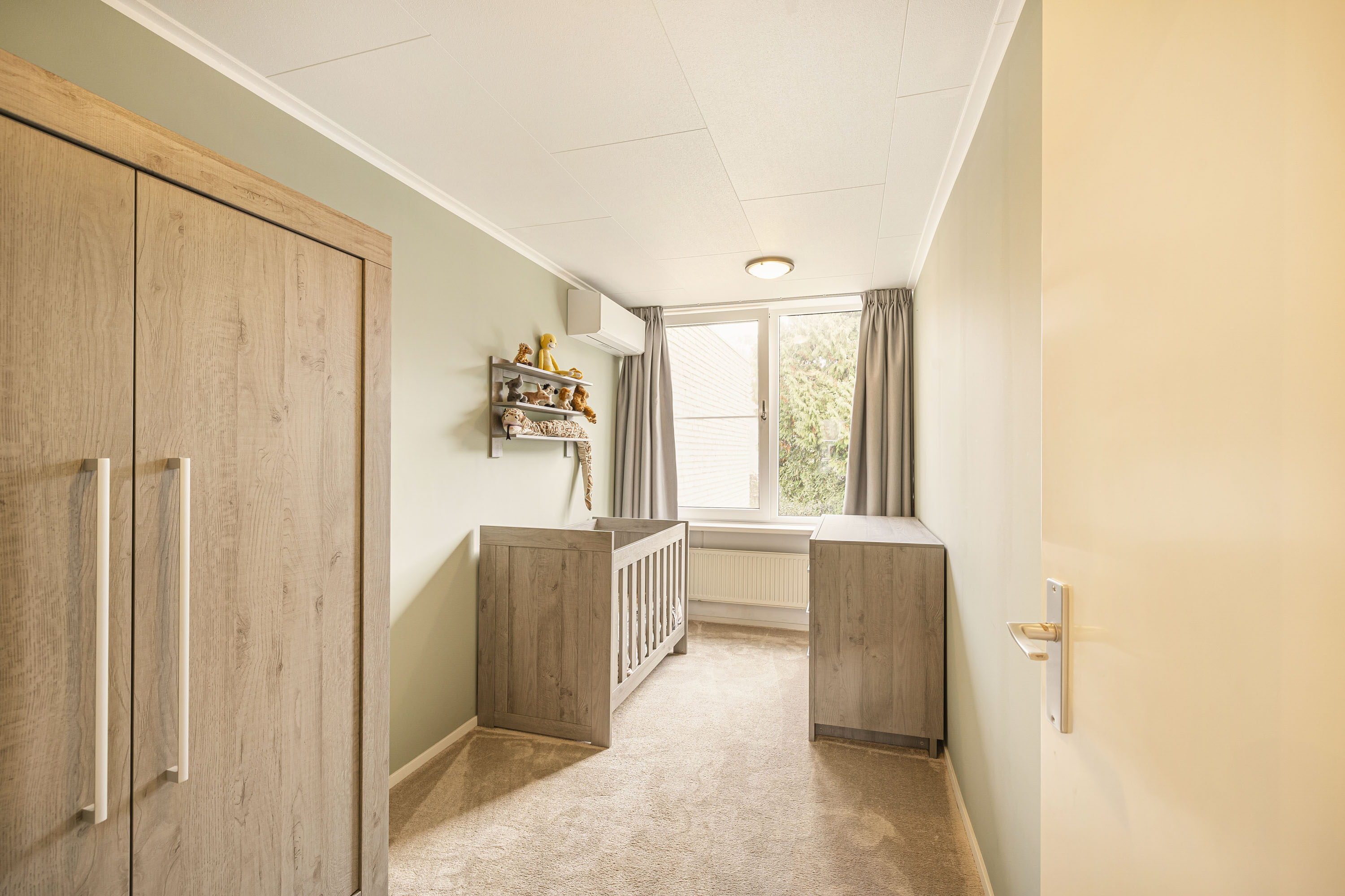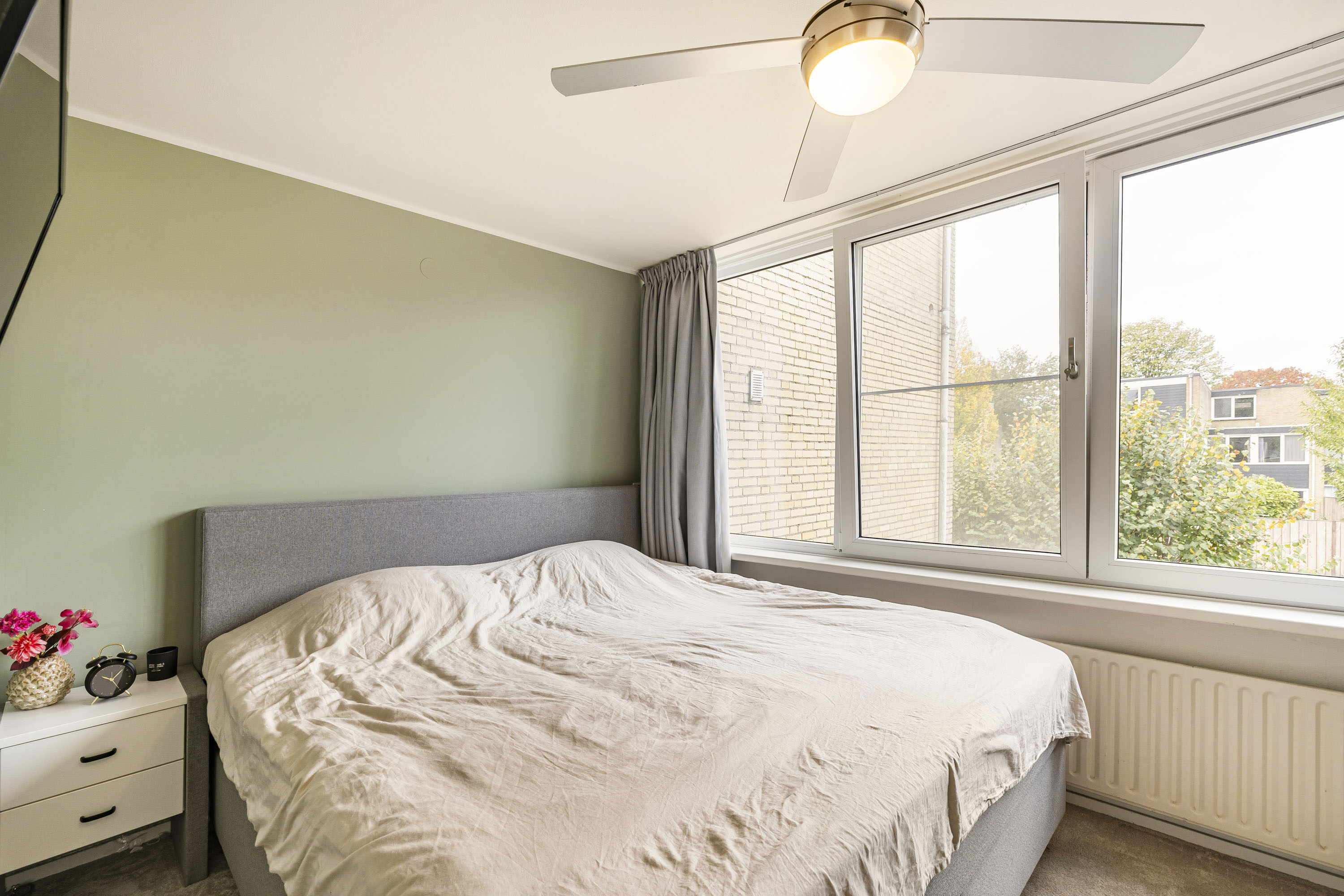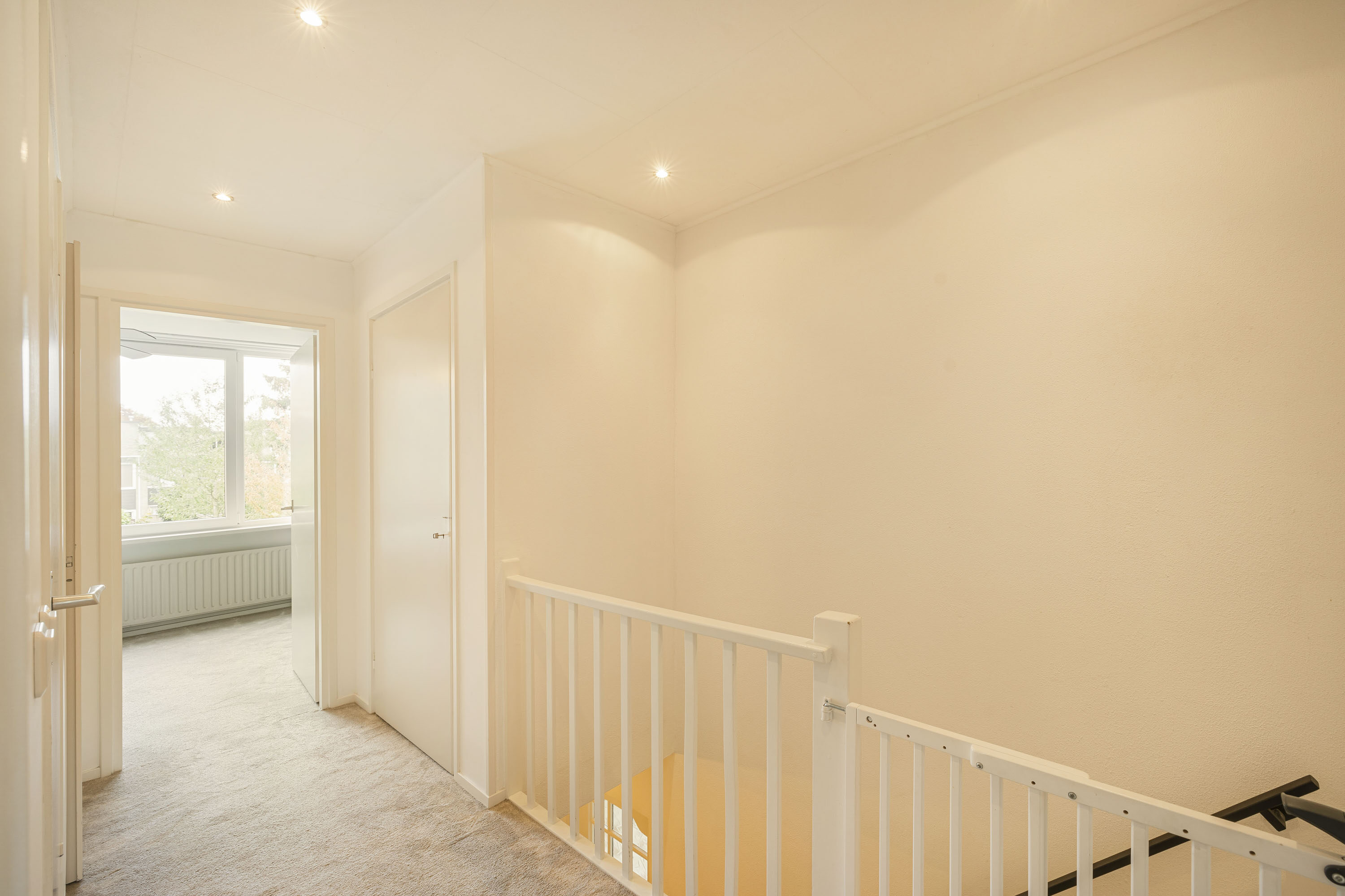 De overloop biedt toegang tot drie slaapkamers, de badkamer, een kast met aansluitingen voor wasmachine en droger, en een aparte kast met de C.V.-installatie (Bosch 30 HRC uit 2007). De ouderslaapkamer bevindt zich aan de voorzijde en beslaat de volledige breedte van de woning. Aan de achterzijde zijn nog twee slaapkamers gesitueerd.