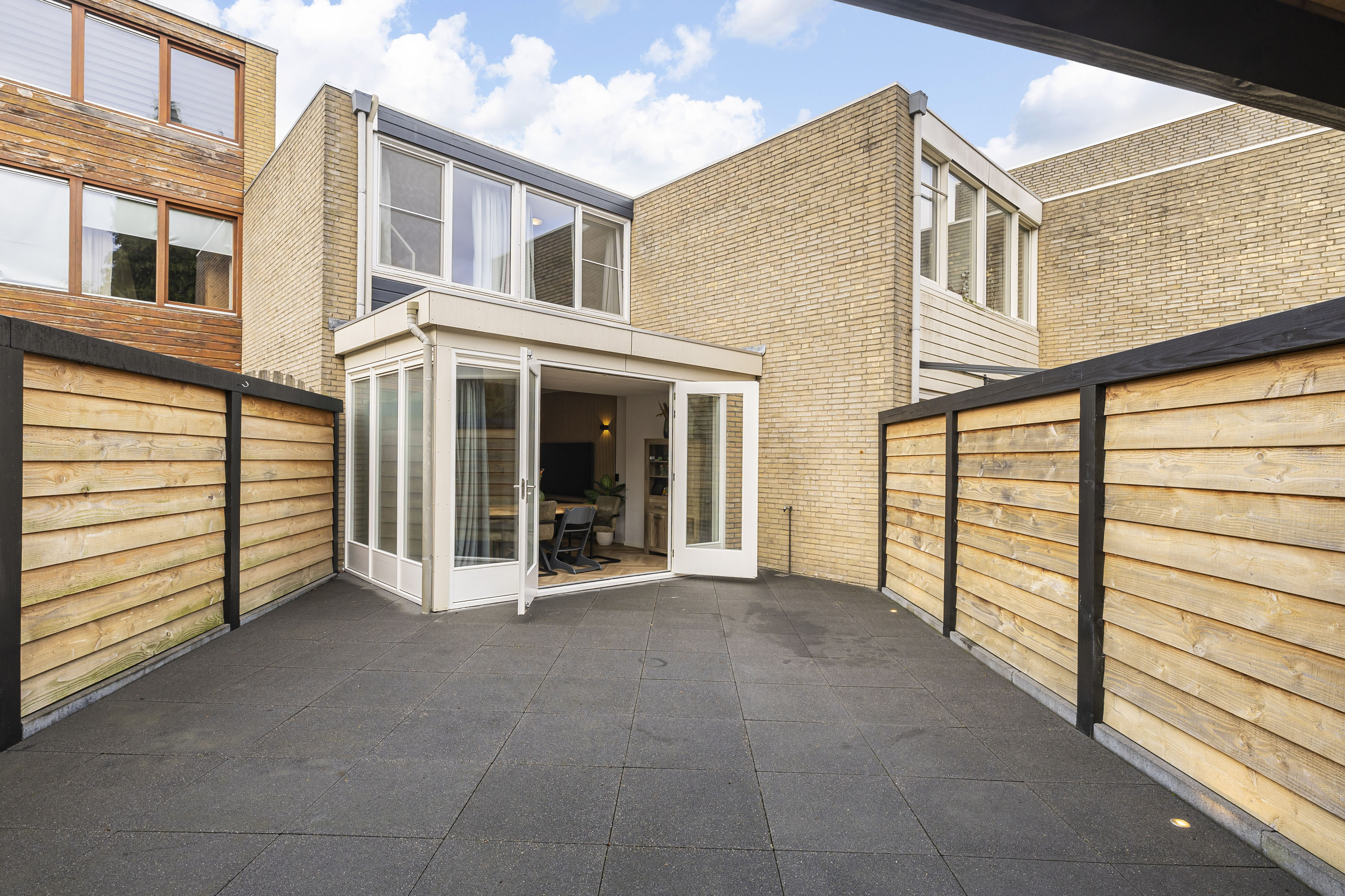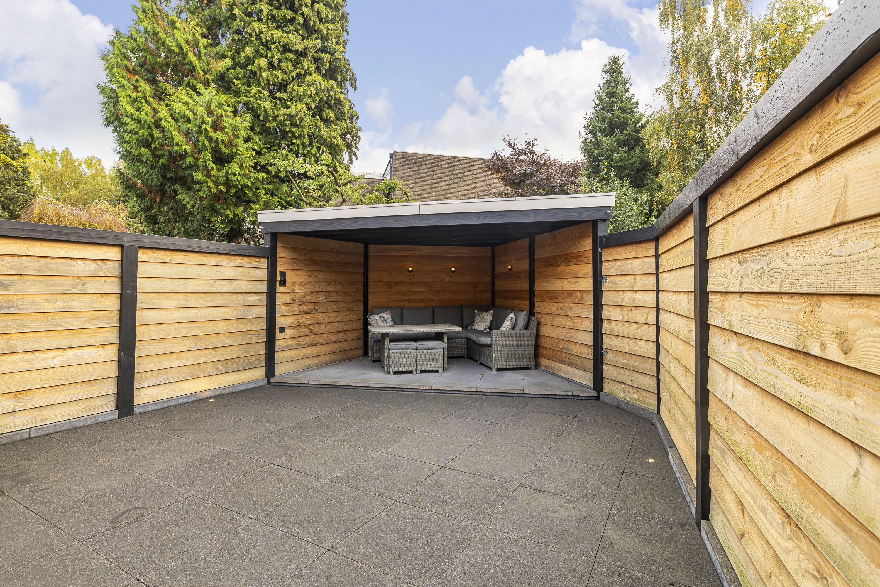 De achterzijde van de woning is uitgebouwd en grenst aan een tuin op het oosten met gezellige veranda. Er is een mogelijkheid om de woning via een achterom te bereiken (deze is niet vastgelegd middels een erfdienstbaarheid). Aan de voorzijde van de woning is een royale carport aanwezig. Hier parkeer je op eigen terrein je auto en is er ruimte voor bijvoorbeeld een bakfiets. Het dak van de carport lekt bij regen en dient hersteld of vervangen te worden.