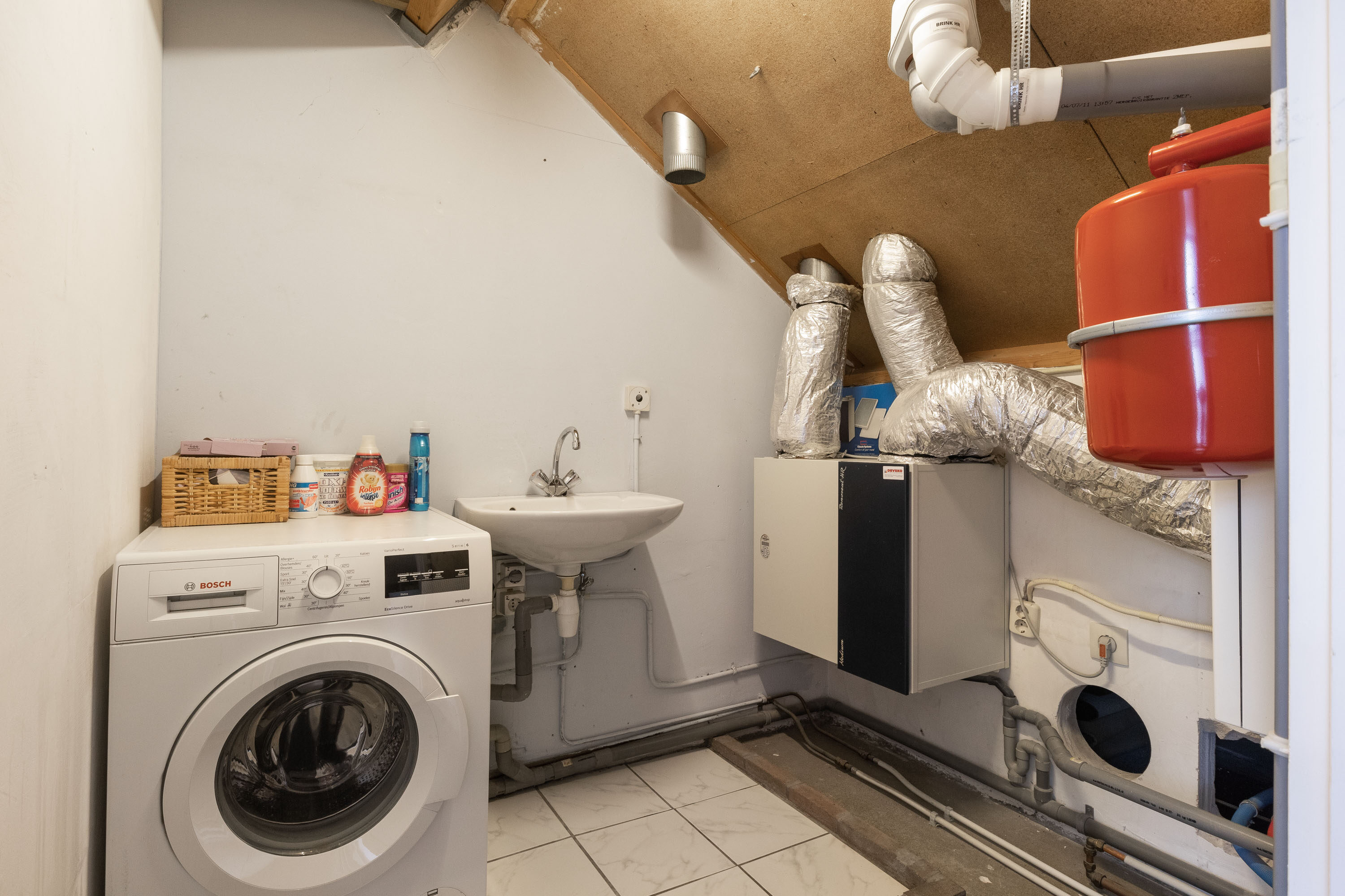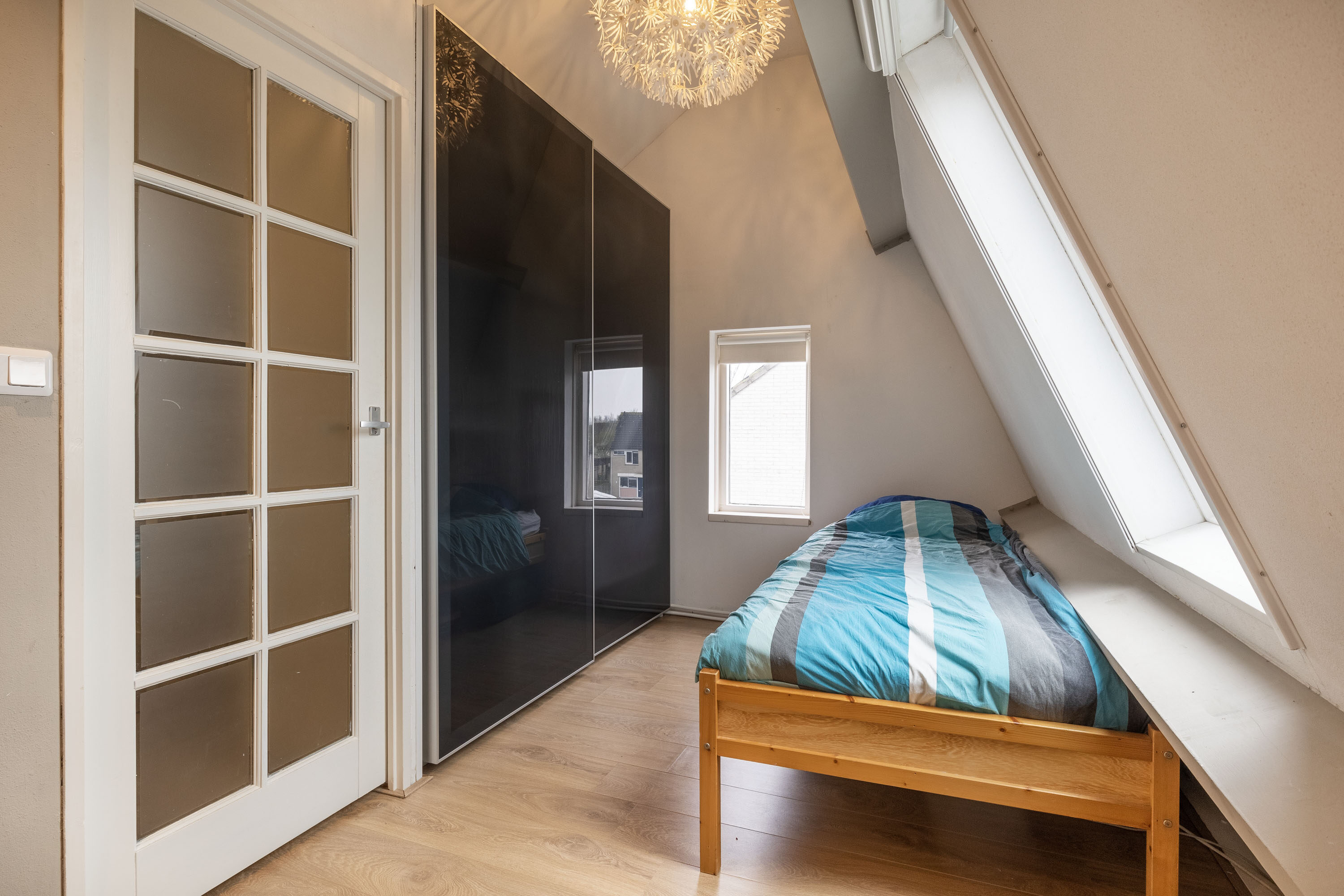 Op de overloop vind je toegang tot handige bergruimte achter de schuine kanten, ideaal voor het opbergen van seizoensspullen of andere items. Er is een vierde slaapkamer, die perfect kan dienen als extra slaapruimte, hobbykamer of thuiskantoor. Daarnaast is er een aparte berging waar de cv-installatie en de aansluiting voor de wasmachine zich bevinden.