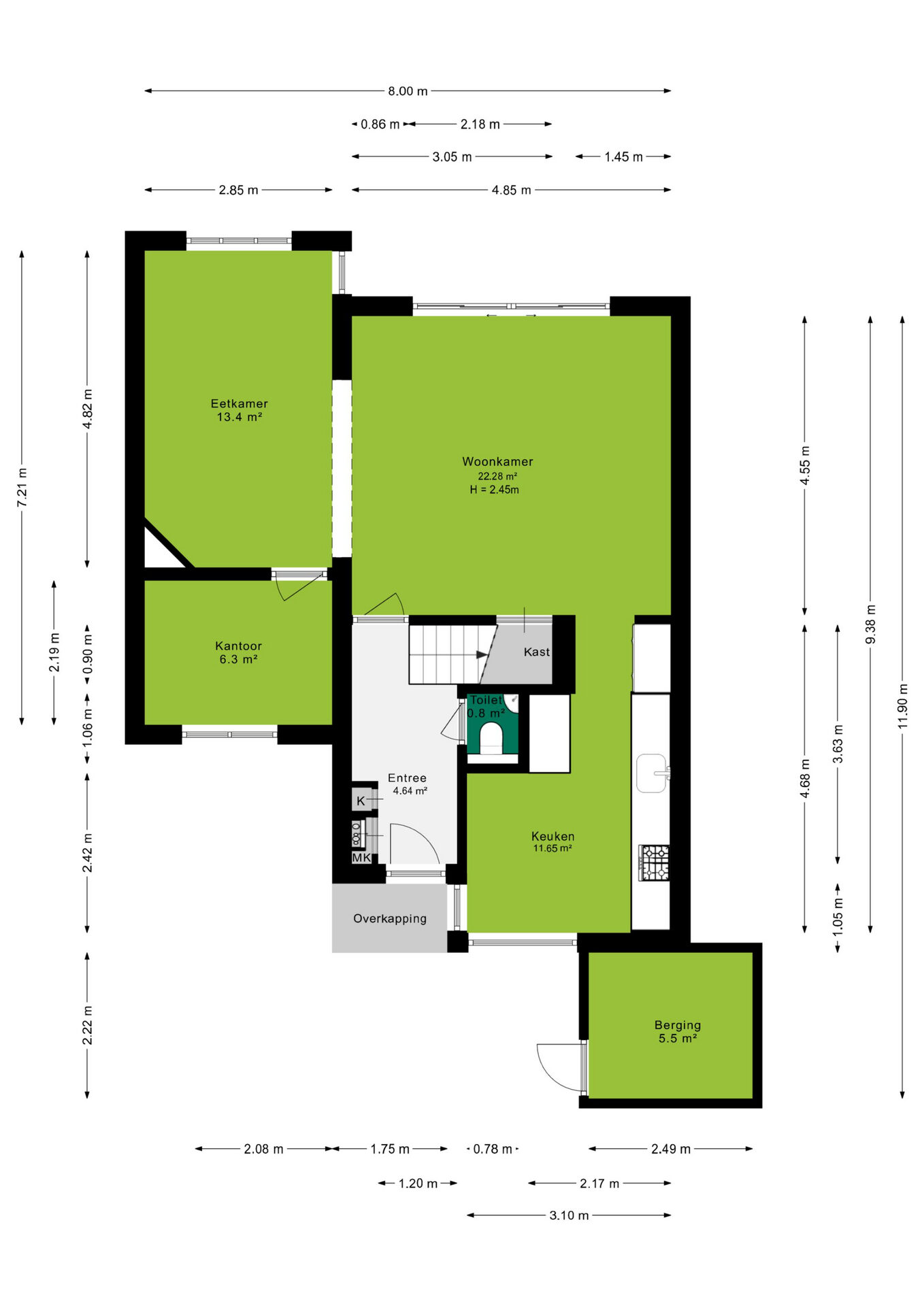Met 17 zonnepanelen en een energielabel A ben je helemaal klaar voor een duurzame toekomst. Het groene dak op het platte dak zorgt niet alleen voor extra isolatie, maar ook voor een prachtige uitstraling. Dankzij de vele ramen is er veel natuurlijke daglicht in het huis, waardoor elke kamer warm en ruim aanvoelt. Mis deze kans niet om jouw droomhuis te bemachtigen!